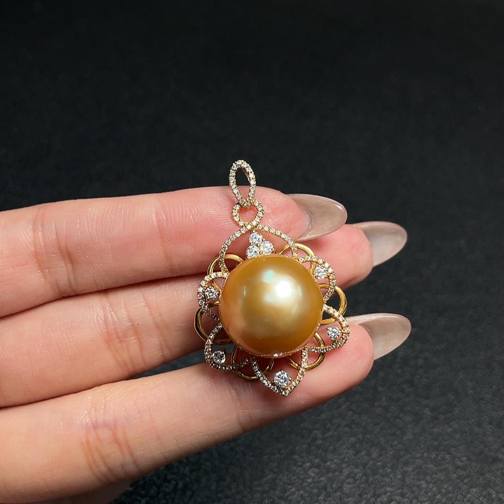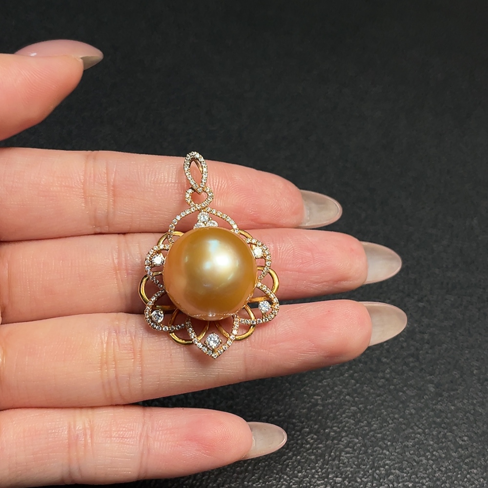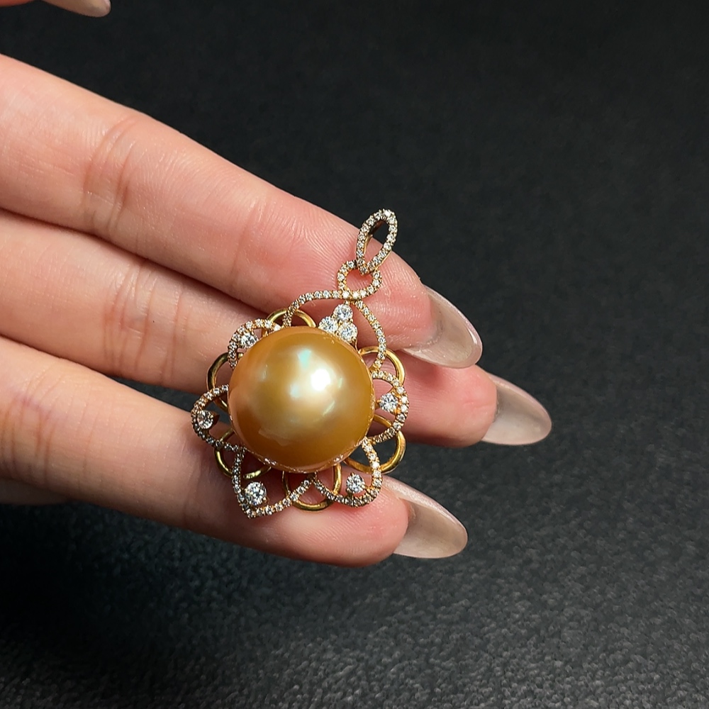 Seawater Pearl Pendant 18k Gold Black Parts Uncertain Non-Diamond Total Weight Approx. 10.32g Size About 16.5mm