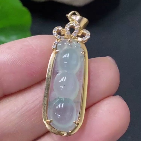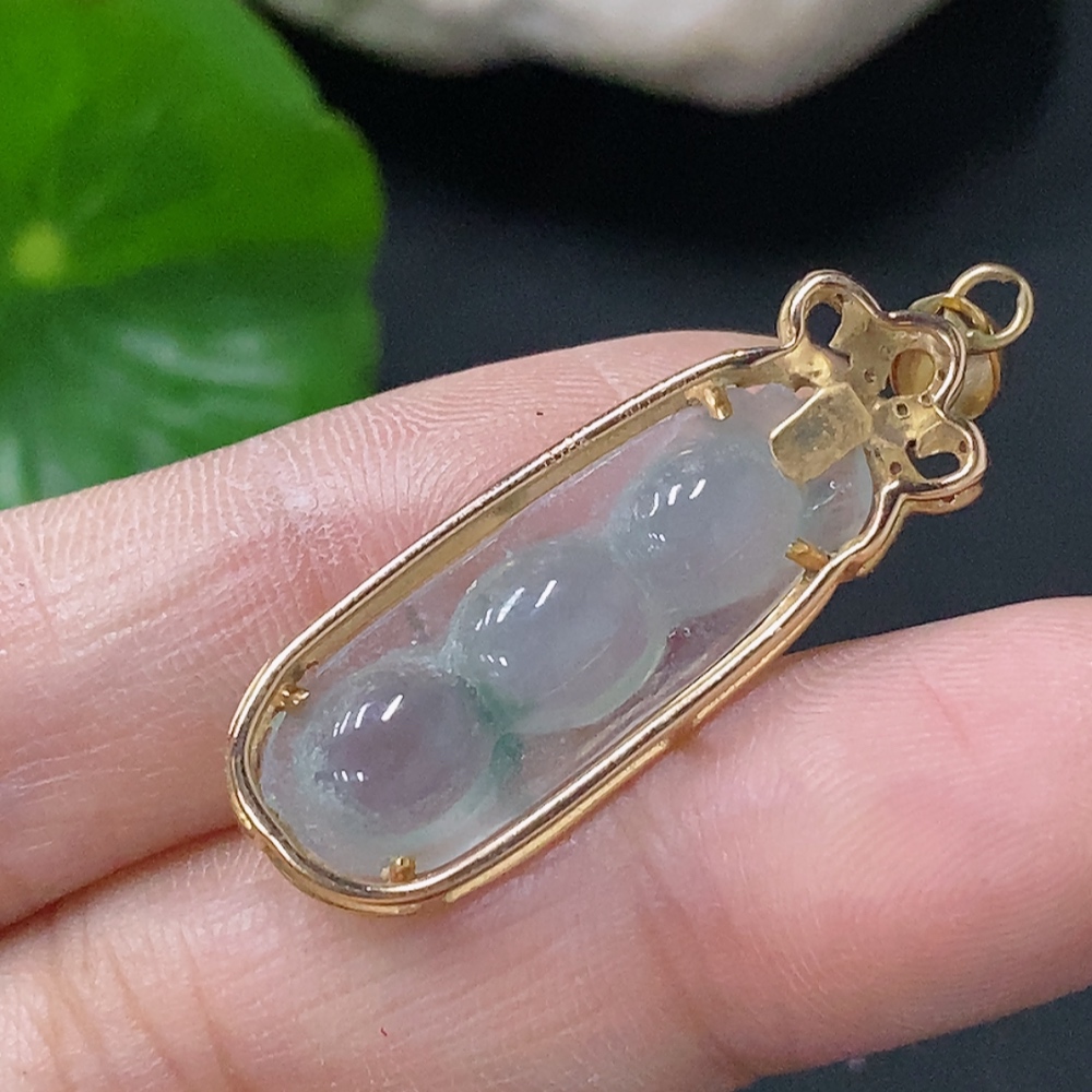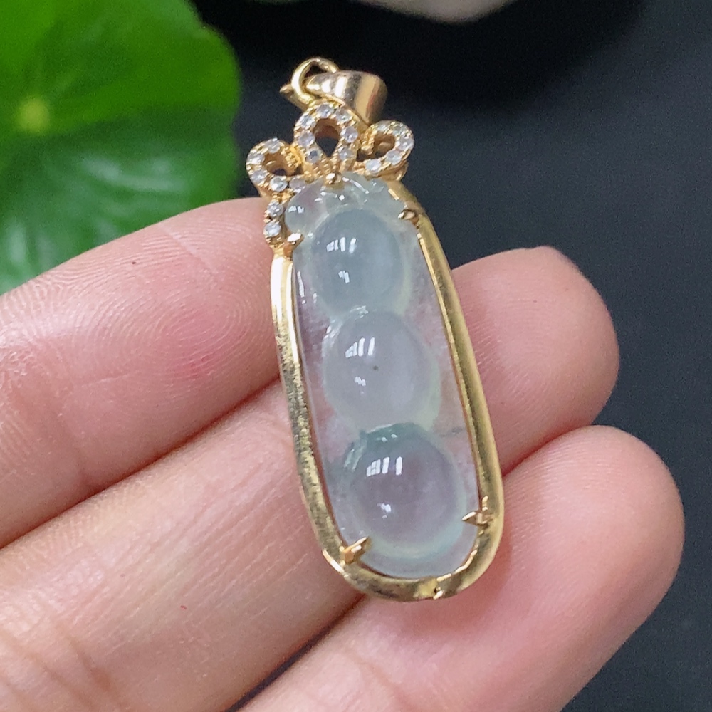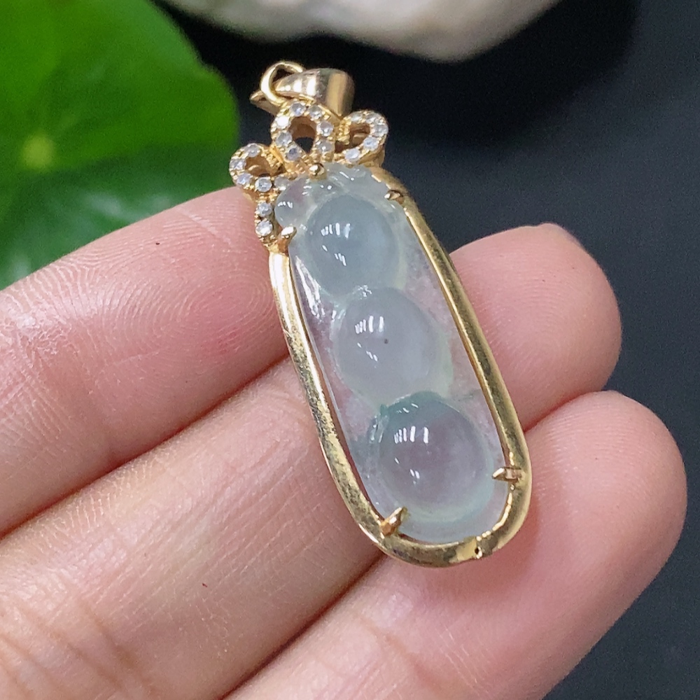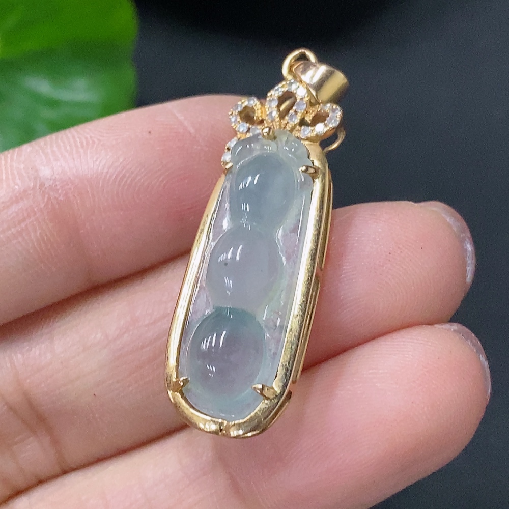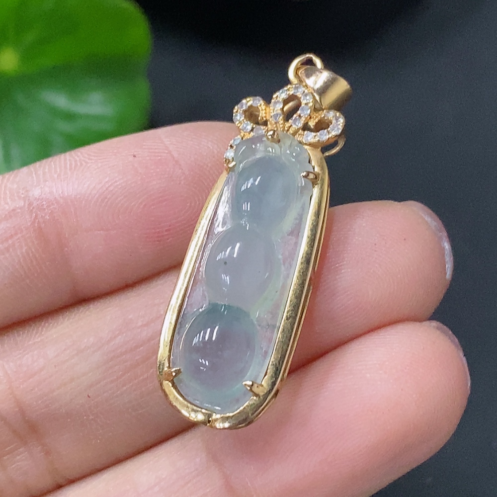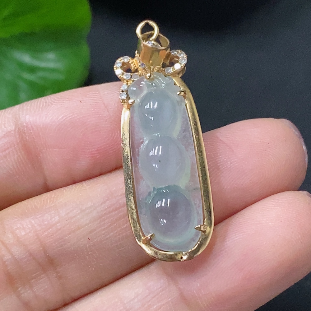 Jadeite Inlaid Lucky Bean Pendant No Stamp 18k Gold Tested Diamond Accented Total Weight Approx. 3.49g