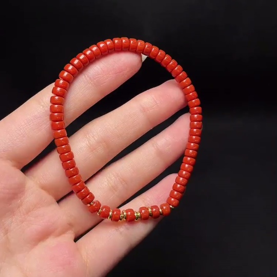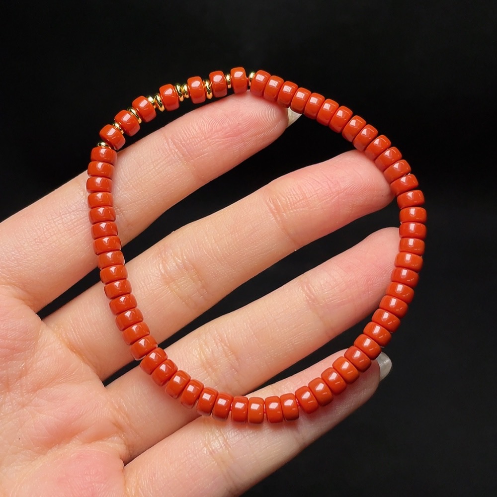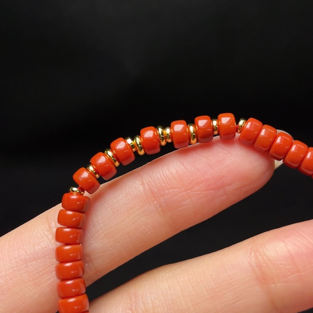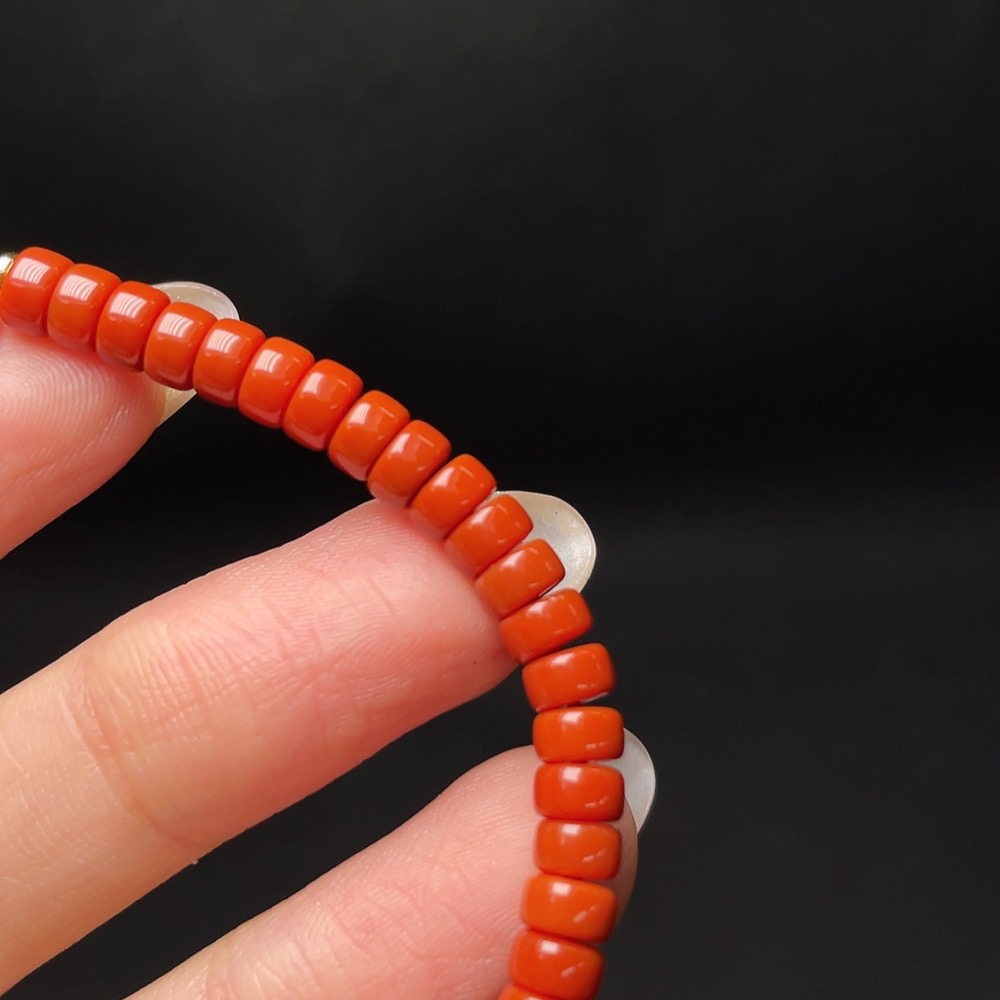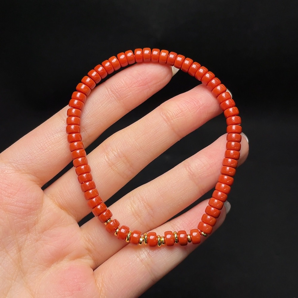 Red Agate Bracelet with Visible Organic Matter, Non-Gold, Total Weight Approximately 8.5g, Size About 4.8mm