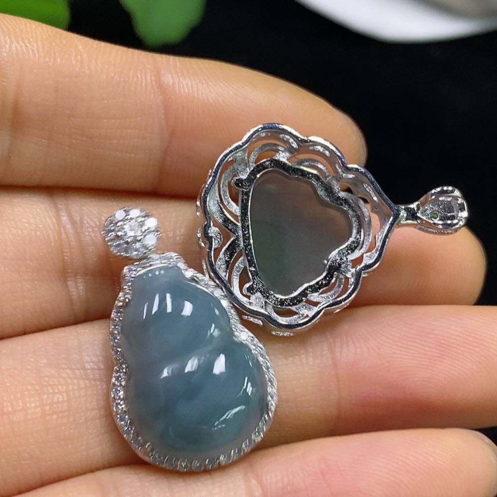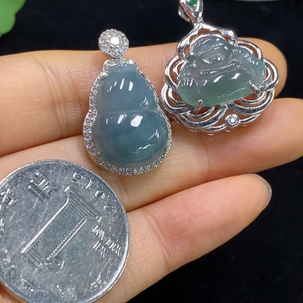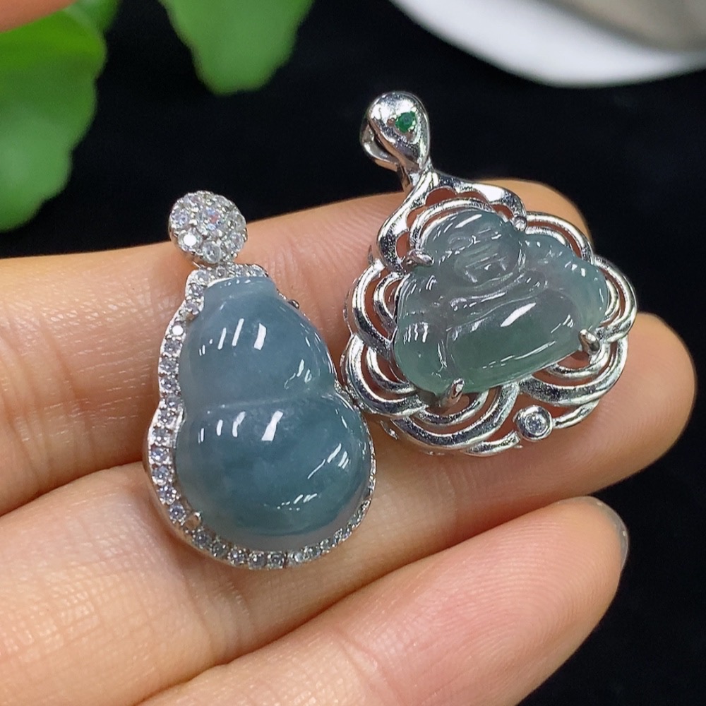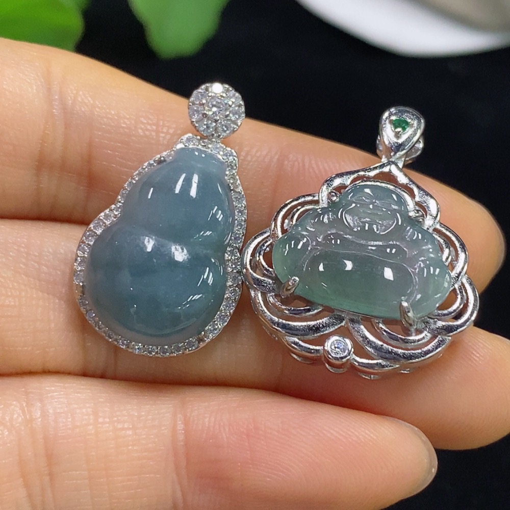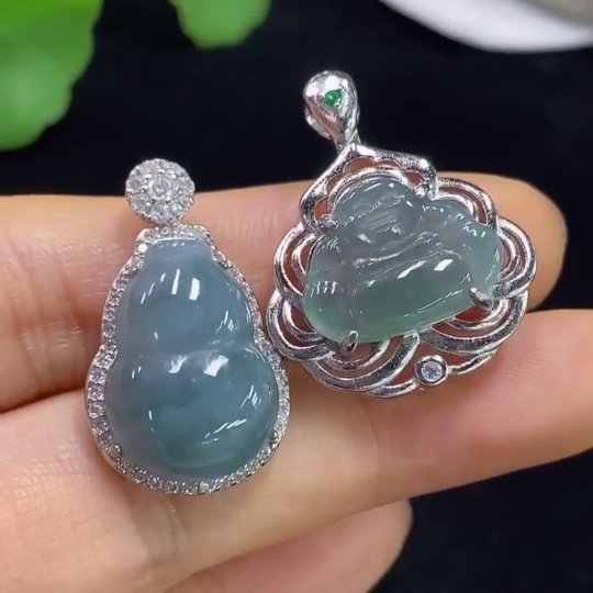 Jadeite Gourd/Buddha Inlaid Pendant Non-Gold