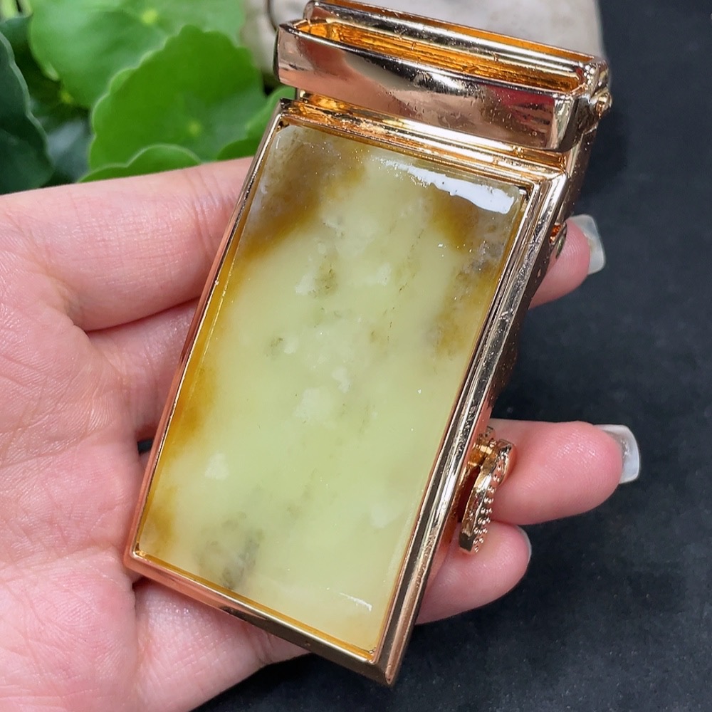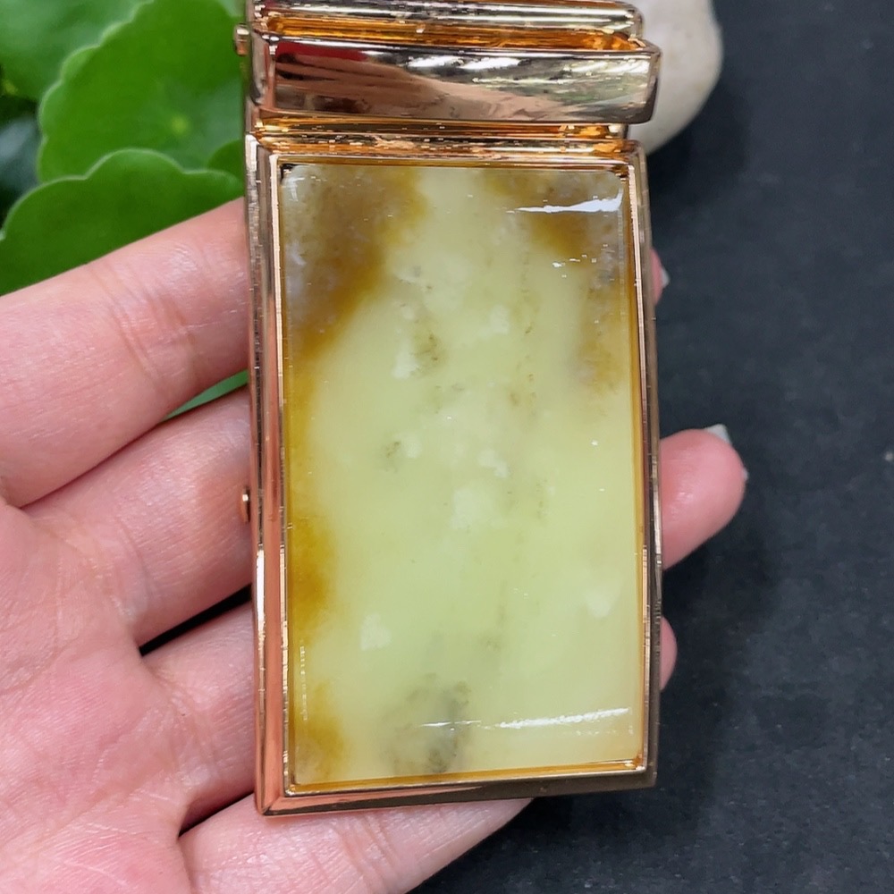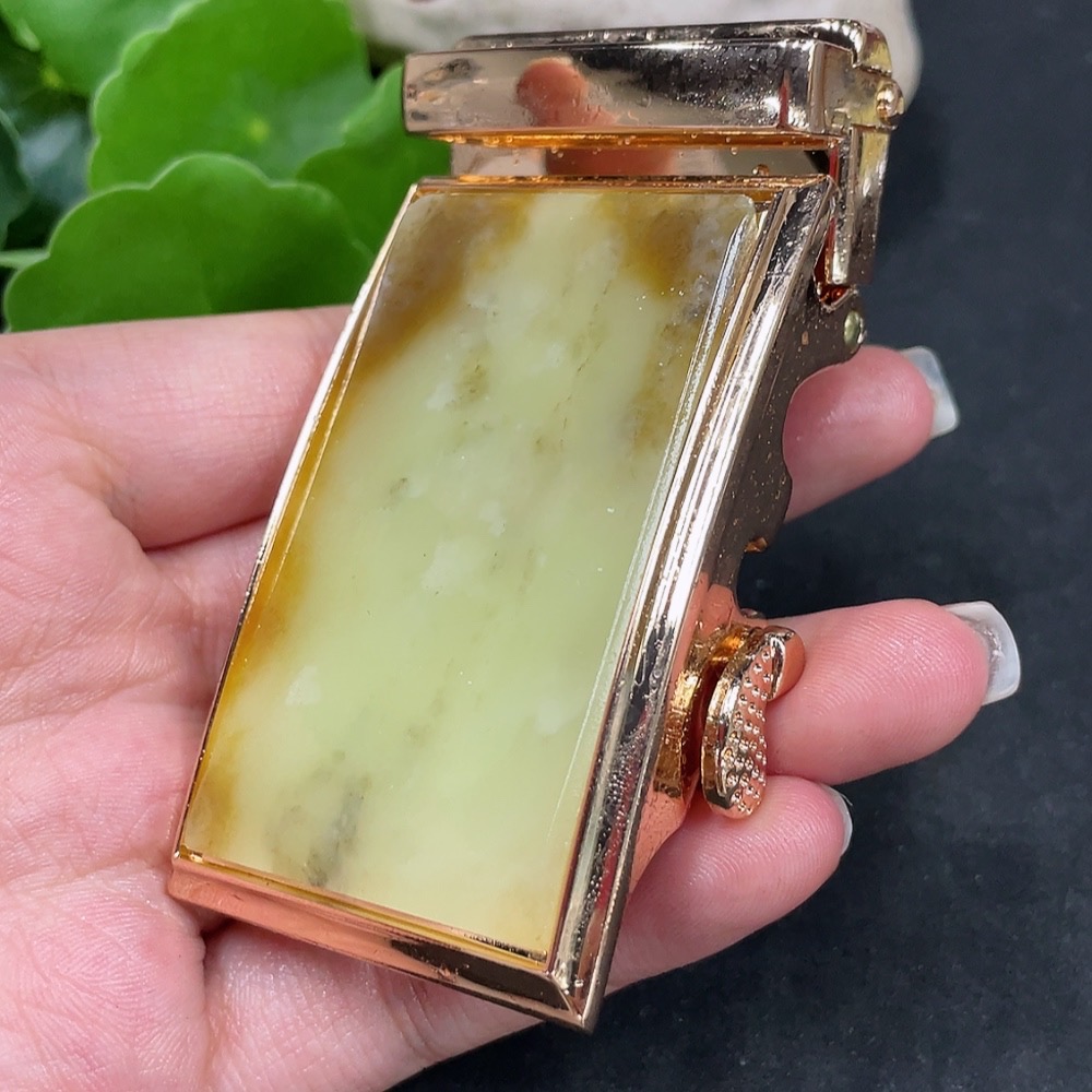 Hetian Jade Inlaid Belt Buckle Non-Gold Total Weight Approx. 111.3g