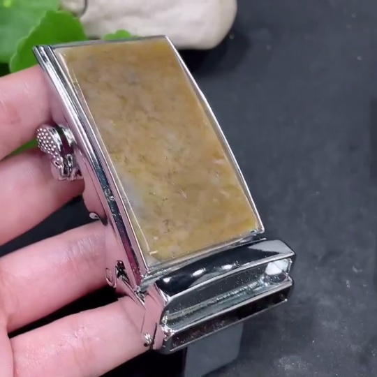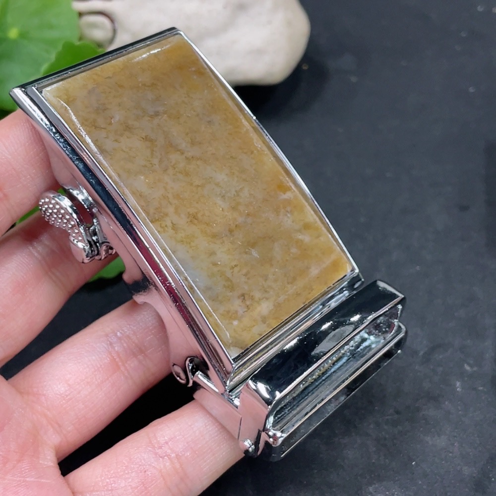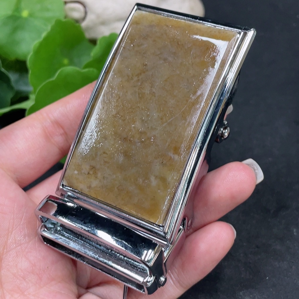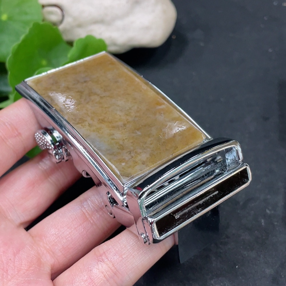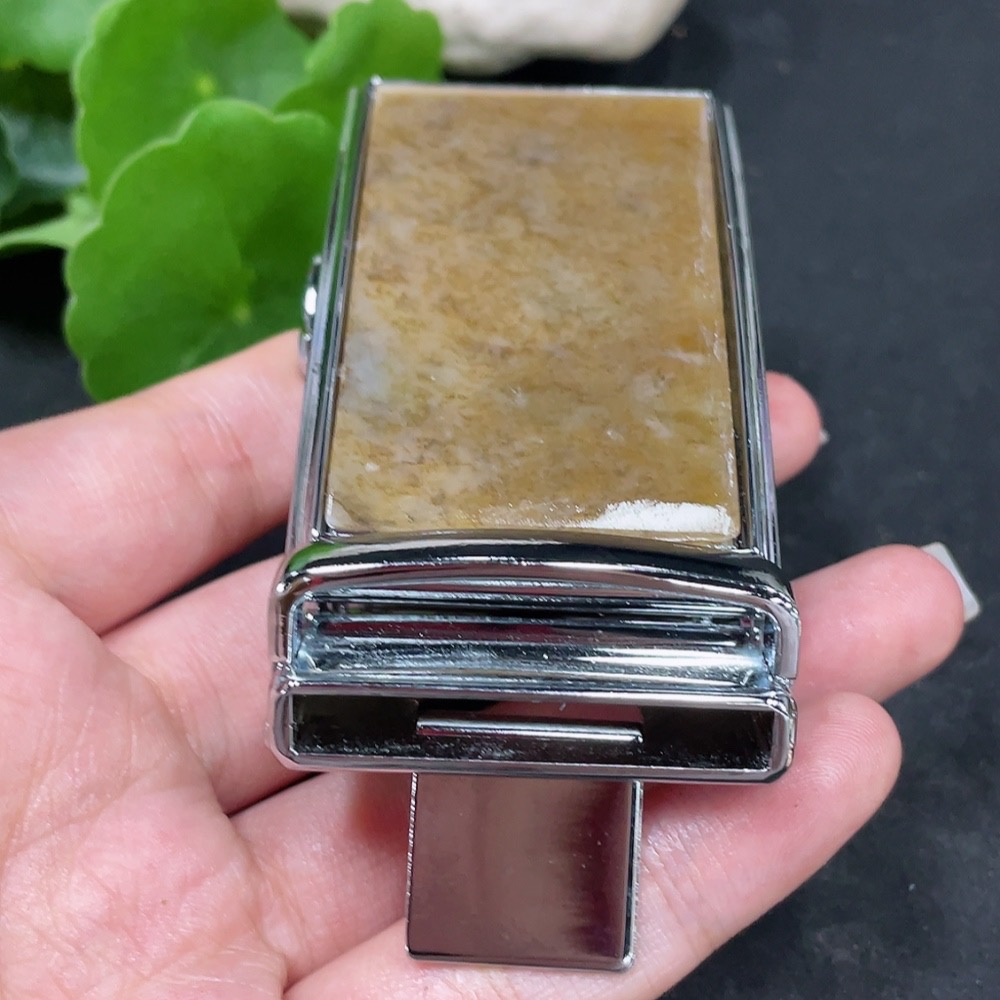 Hetian Jade Inlaid Belt Buckle Non-Gold Total Weight Approx. 110.4g