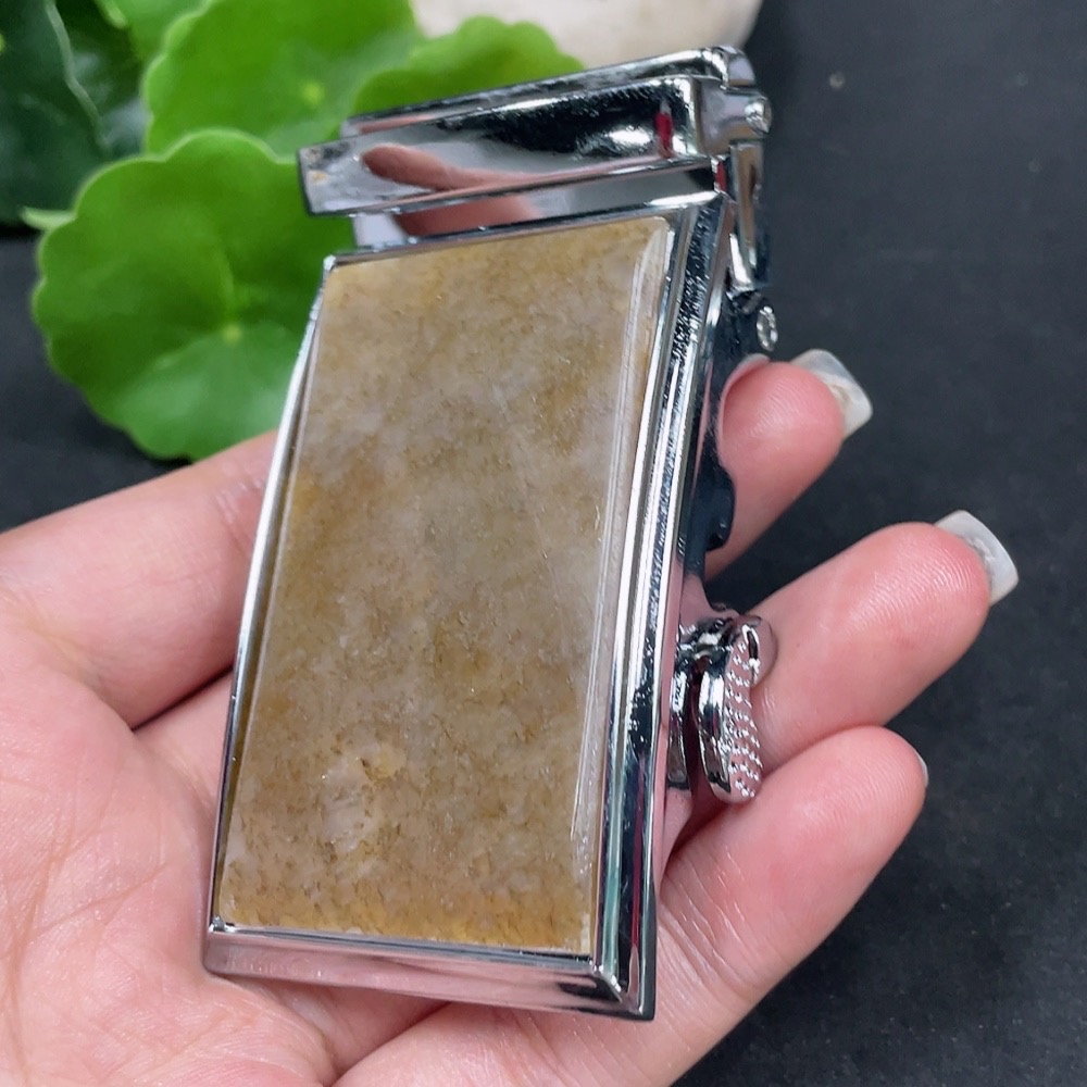 Hetian Jade Inlaid Belt Buckle Non-Gold Total Weight Approx. 107.9g
