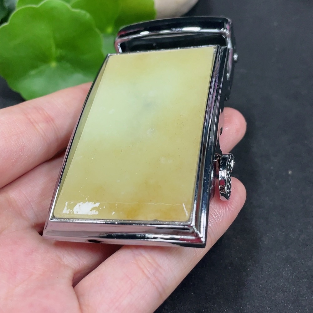 Hetian Jade Inlaid Belt Buckle Non-Gold Total Weight Approx. 106.6g