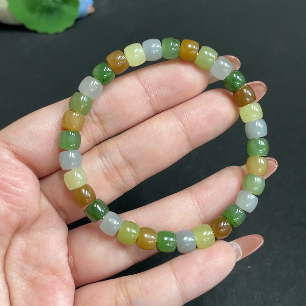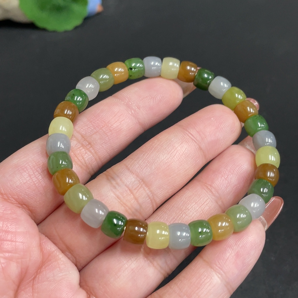 Hetian Jade Bracelet, Approx. 6.7 mm Beads, Total Weight Approx. 17.9g