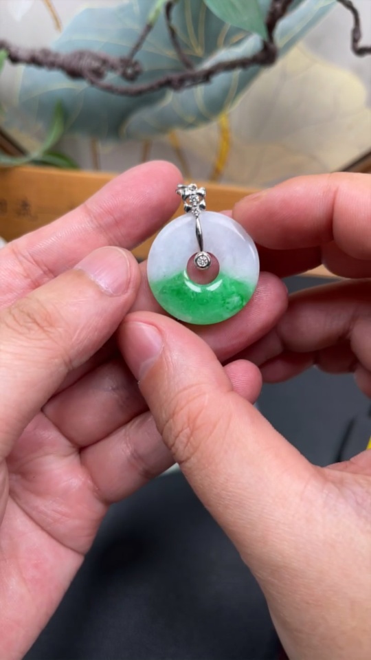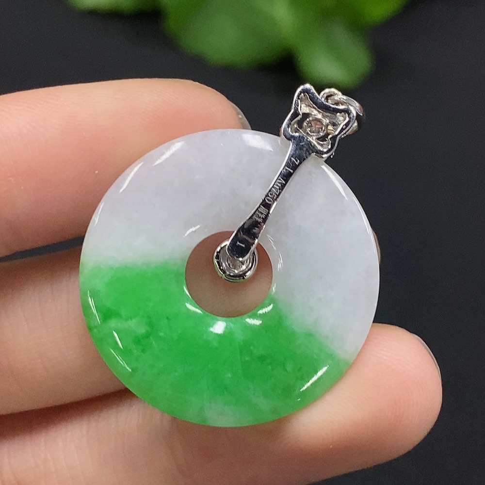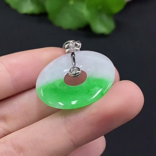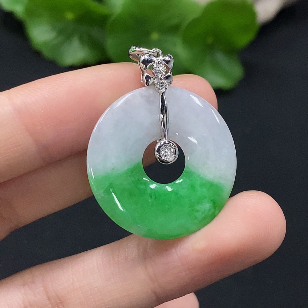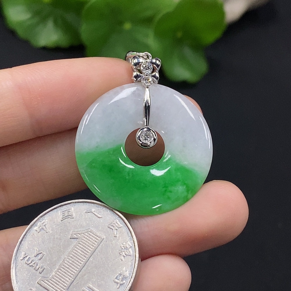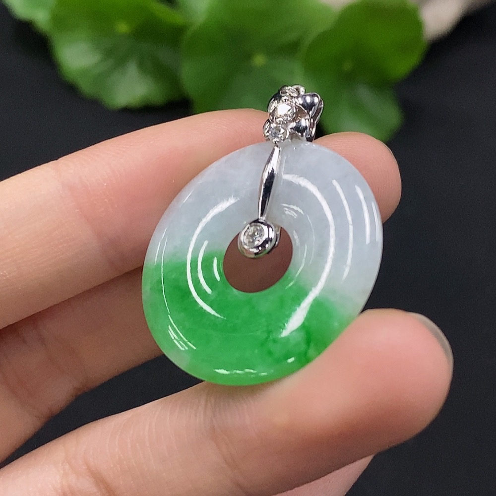 Jadeite Donut Pendant with 18K Gold and Diamond Accents, Total Weight Approx. 5.03g