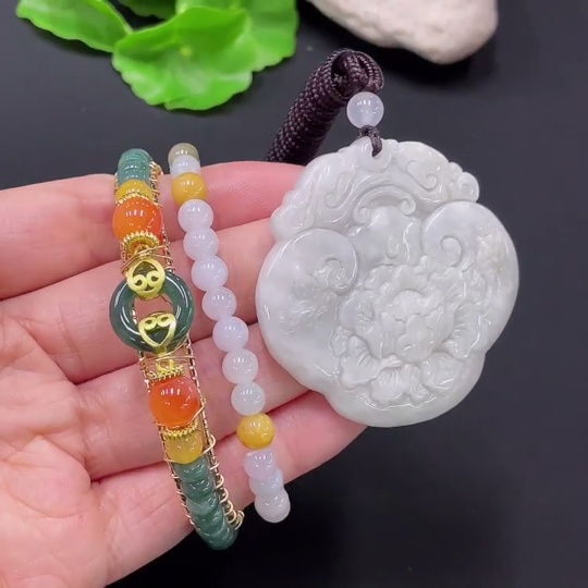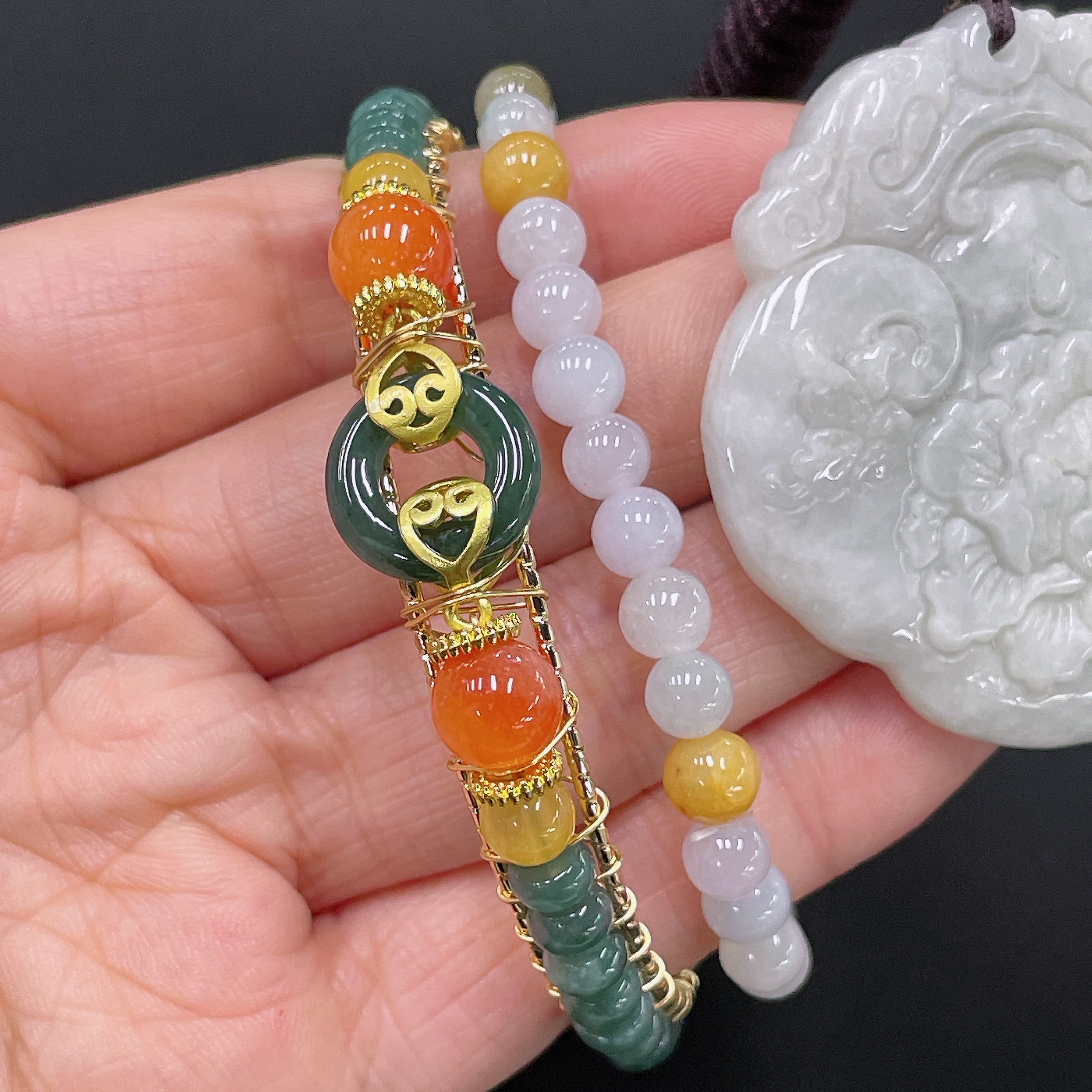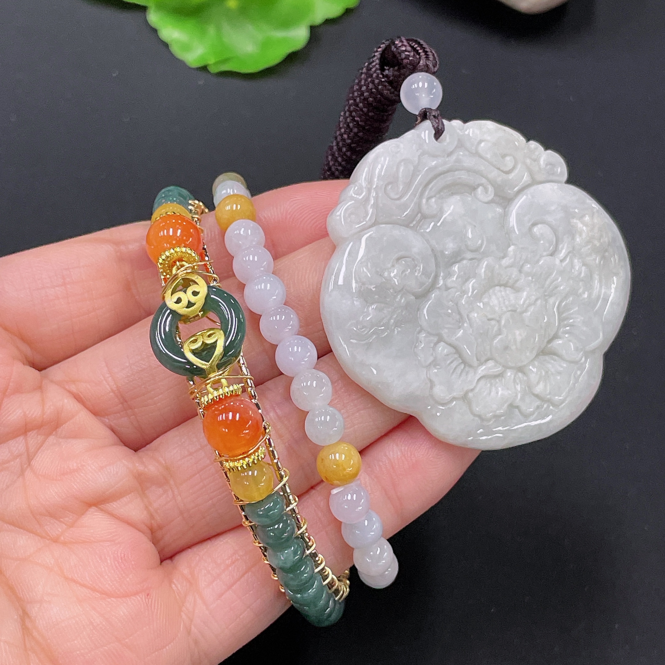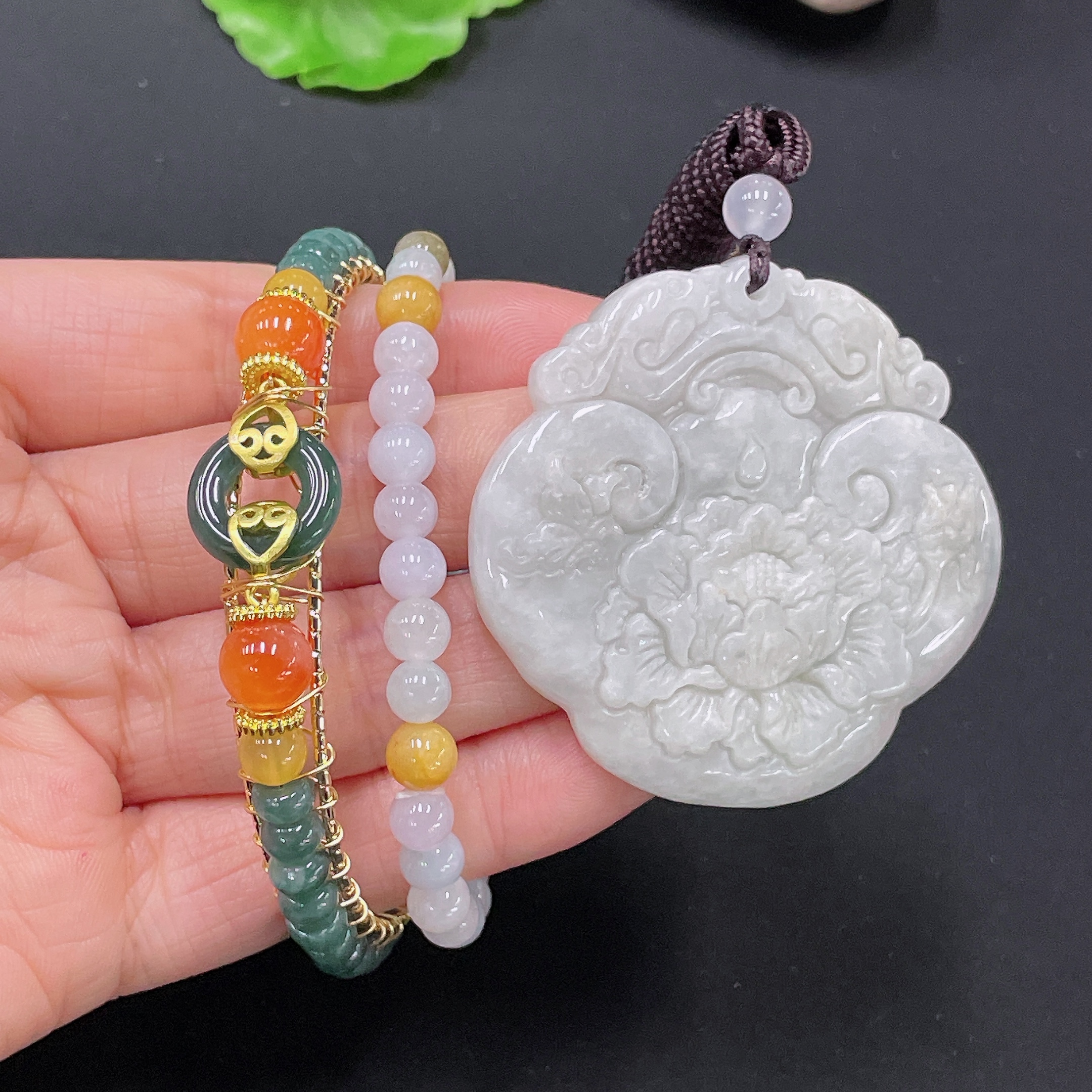 Jadeite Bracelet + Pendant Sell as a Lot Non-A Bead Non-Gold