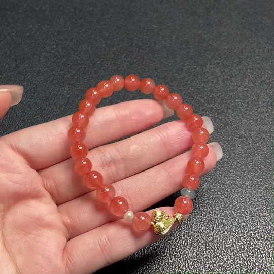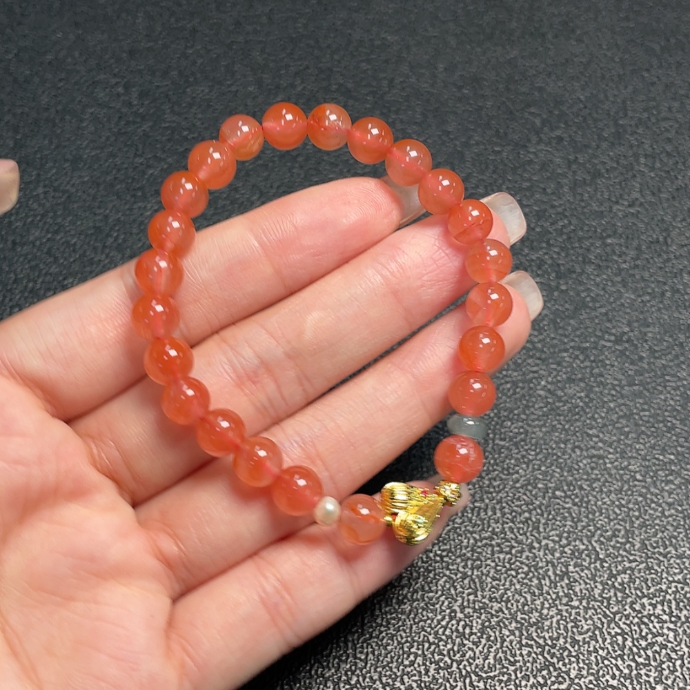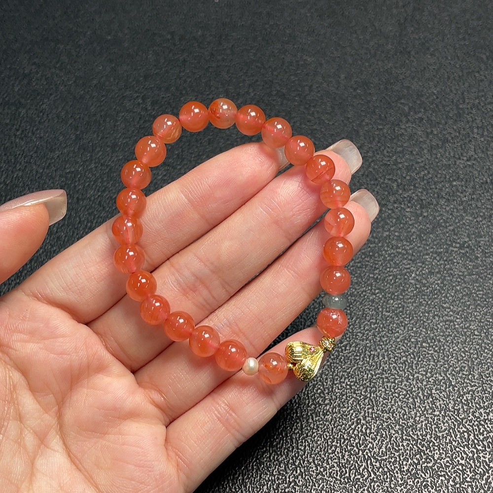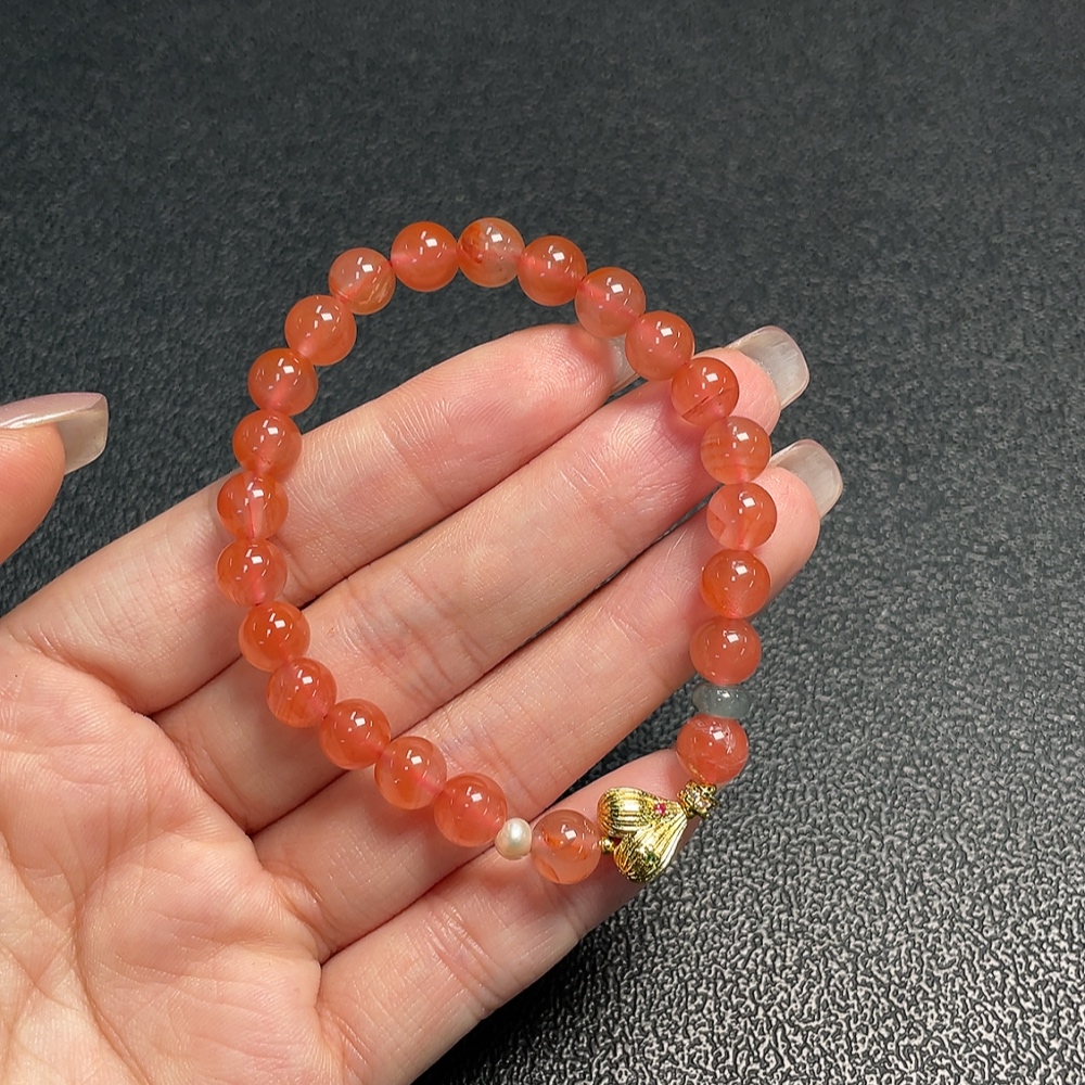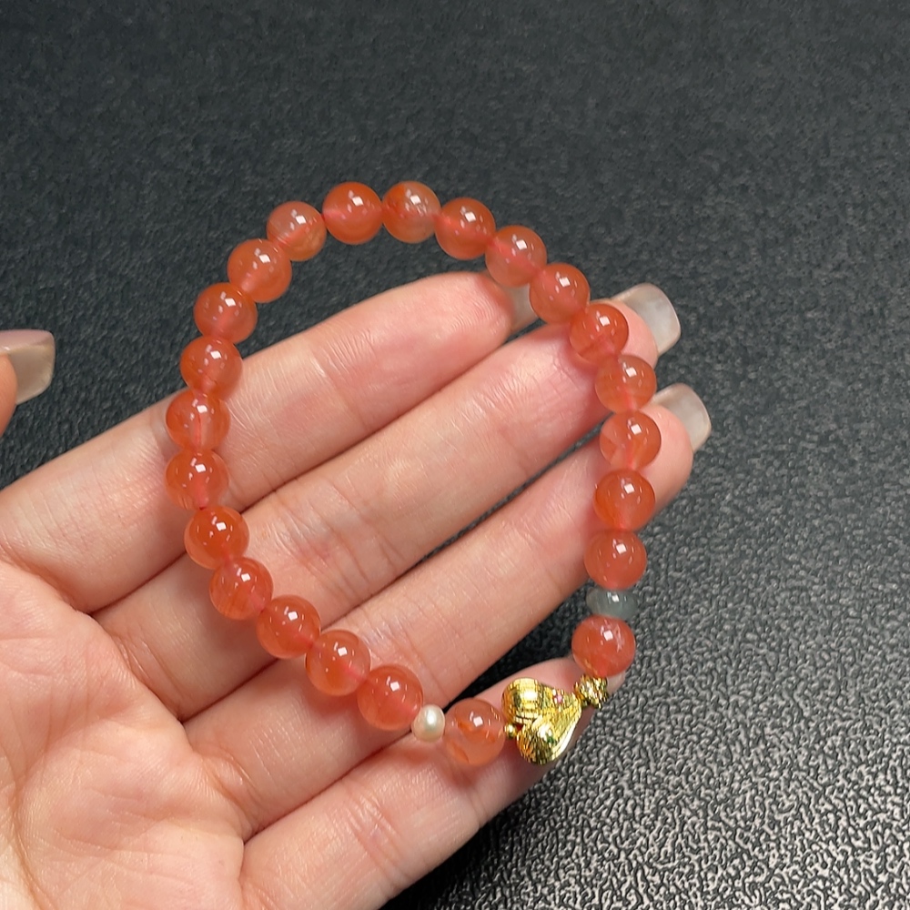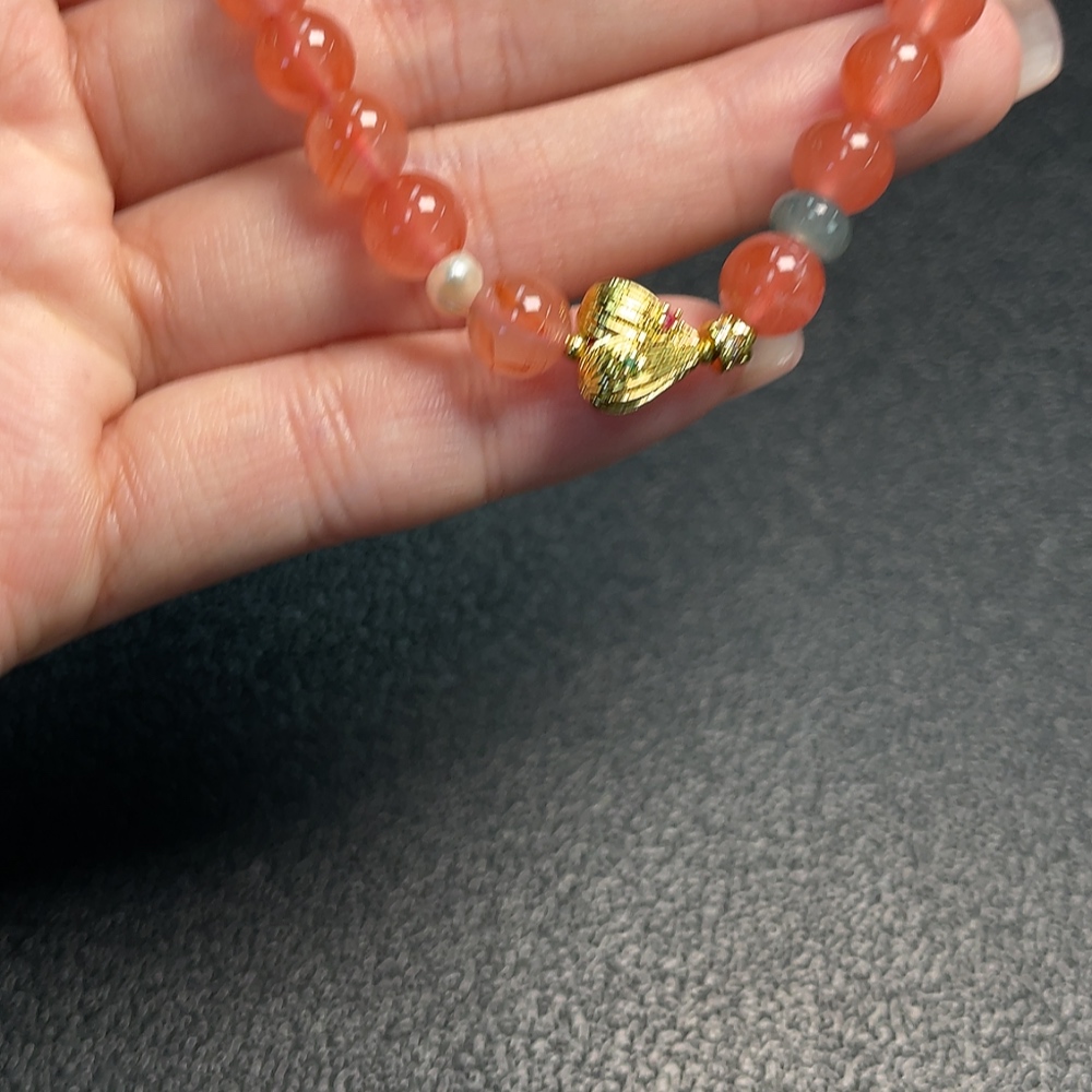 South Red Agate Bracelet with Visible Organic Matter, Total Weight Approx. 13.92g, Size 7.2mm, Paired with Jadeite and Pearls, Non-Gold
