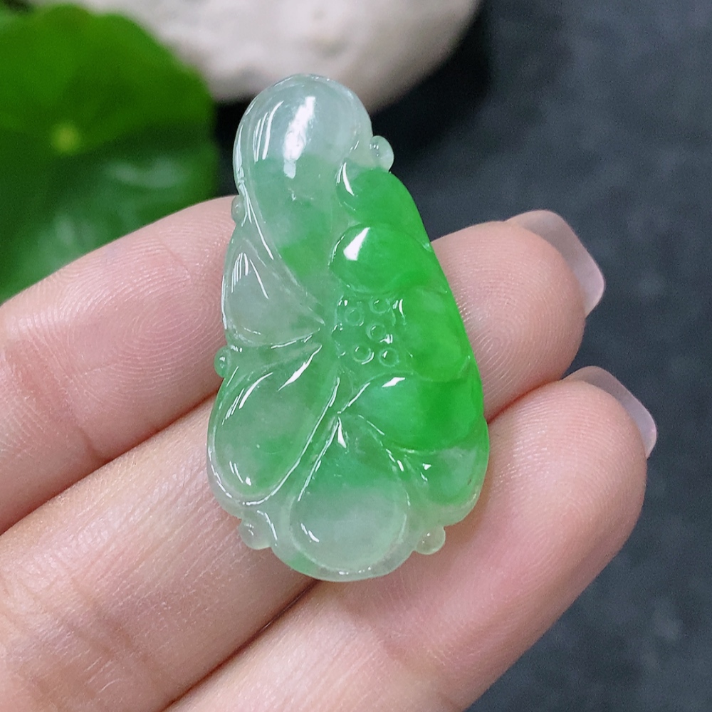 Jadeite Pendant Lotus Leaf Total Weight Approx. 4.15g