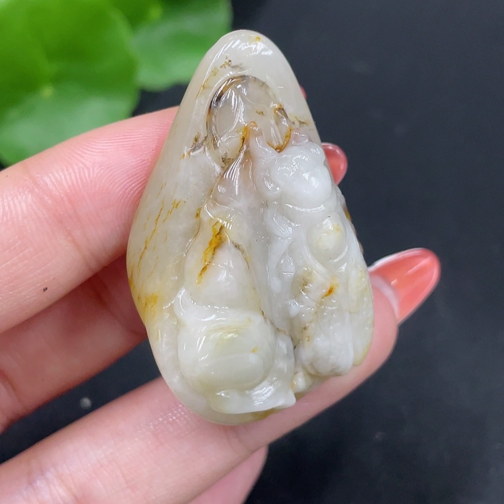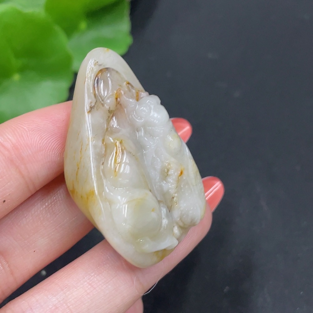 Hetian Jade Seed Material Pendant - A Startling Debut, Undetermined Skin Color Origin, Contains Other Mineral Components, Total Weight Approximately 26.6g