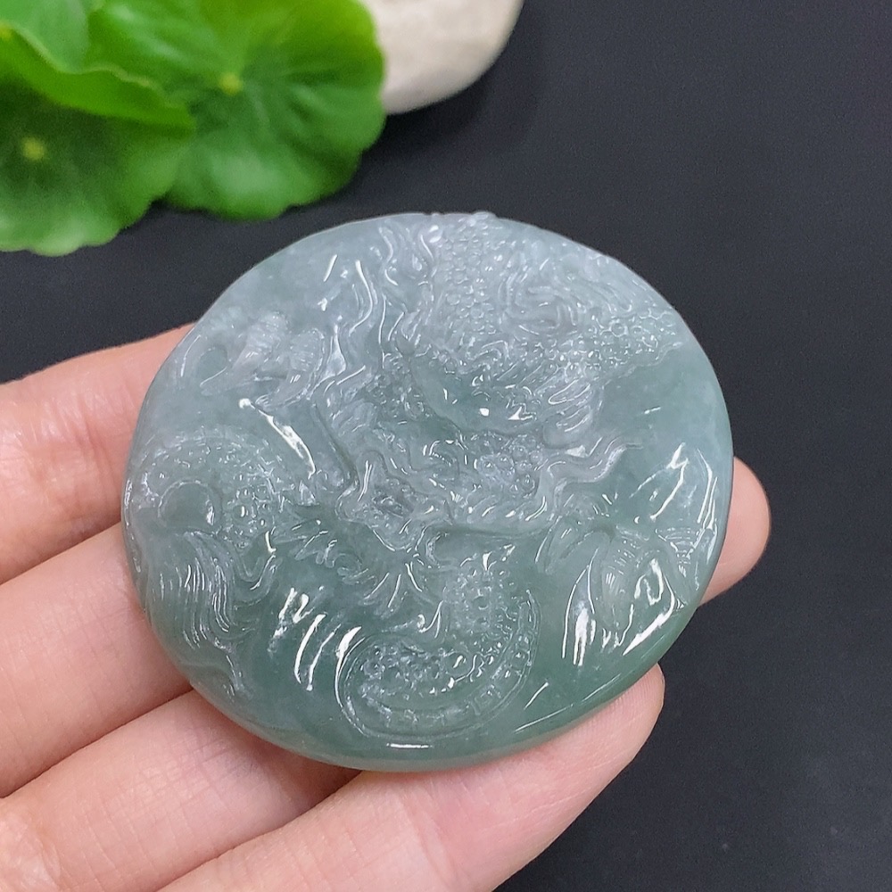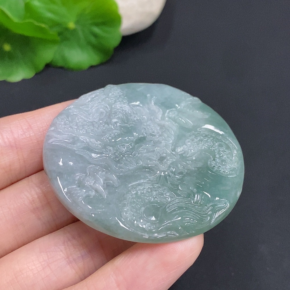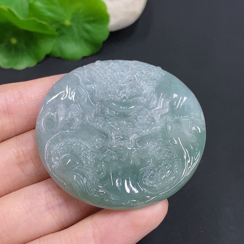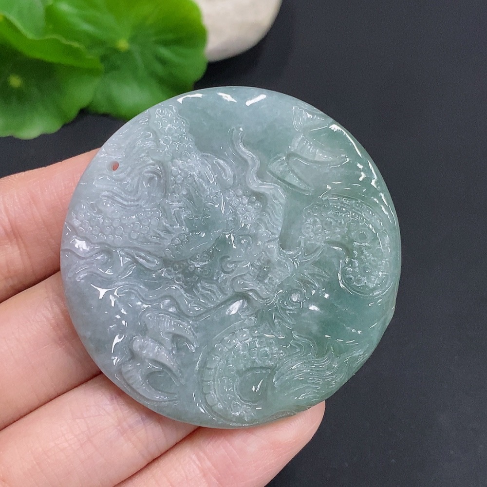Jadeite Dragon Soaring Across the Seas Pendant