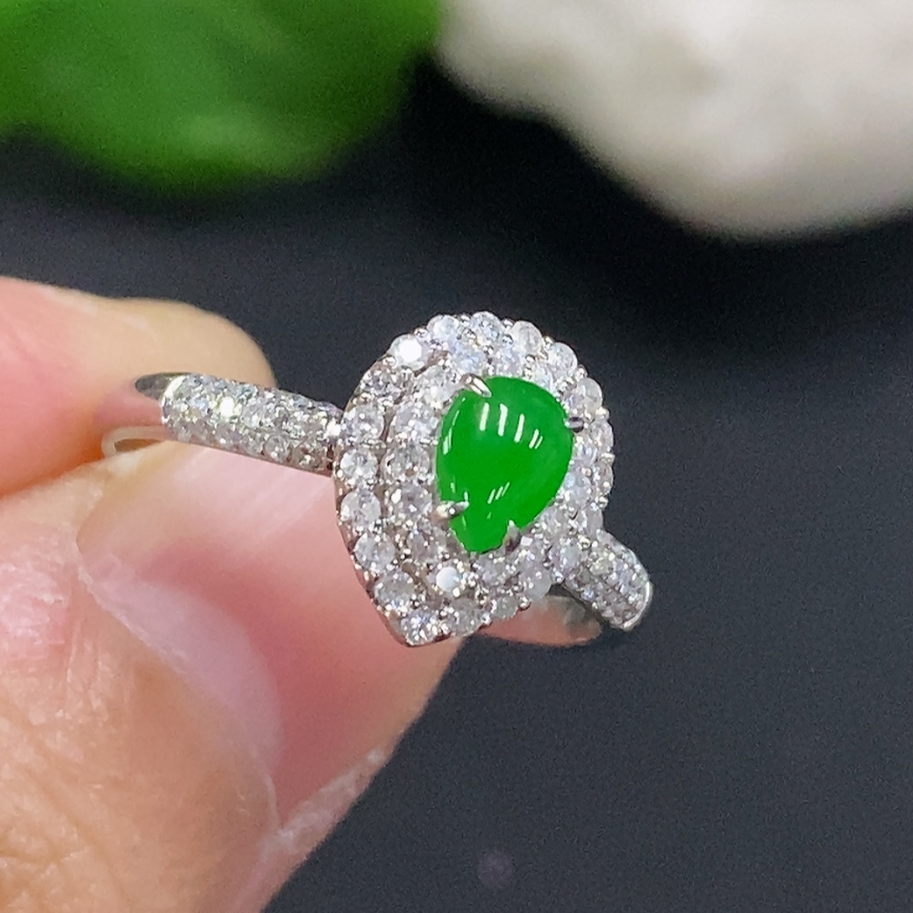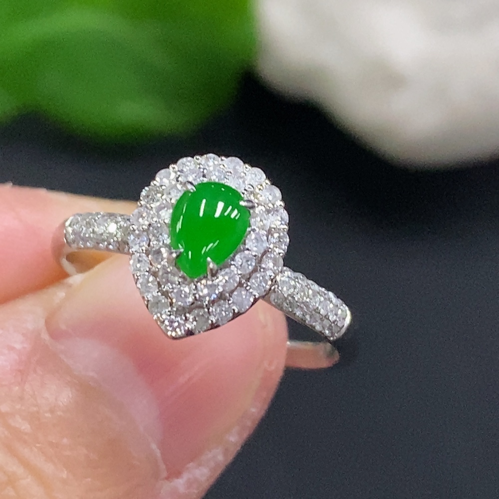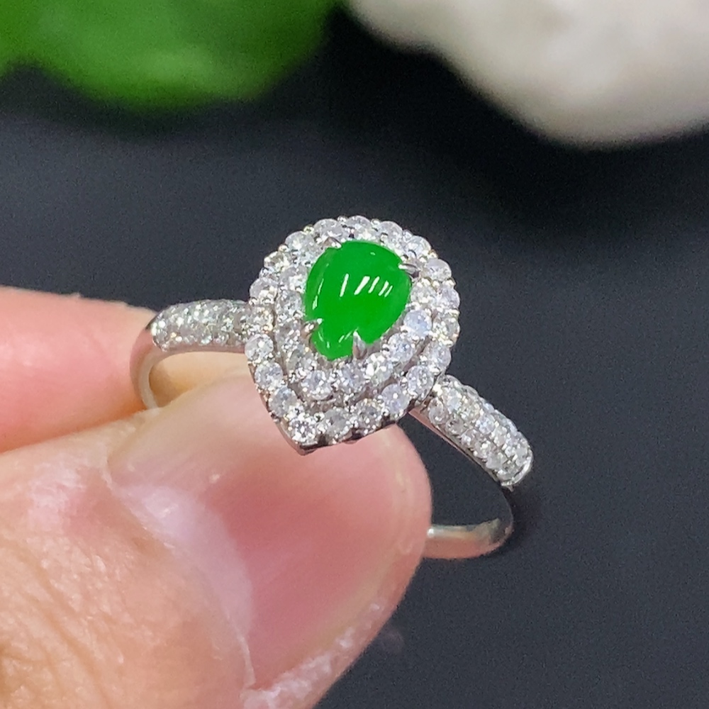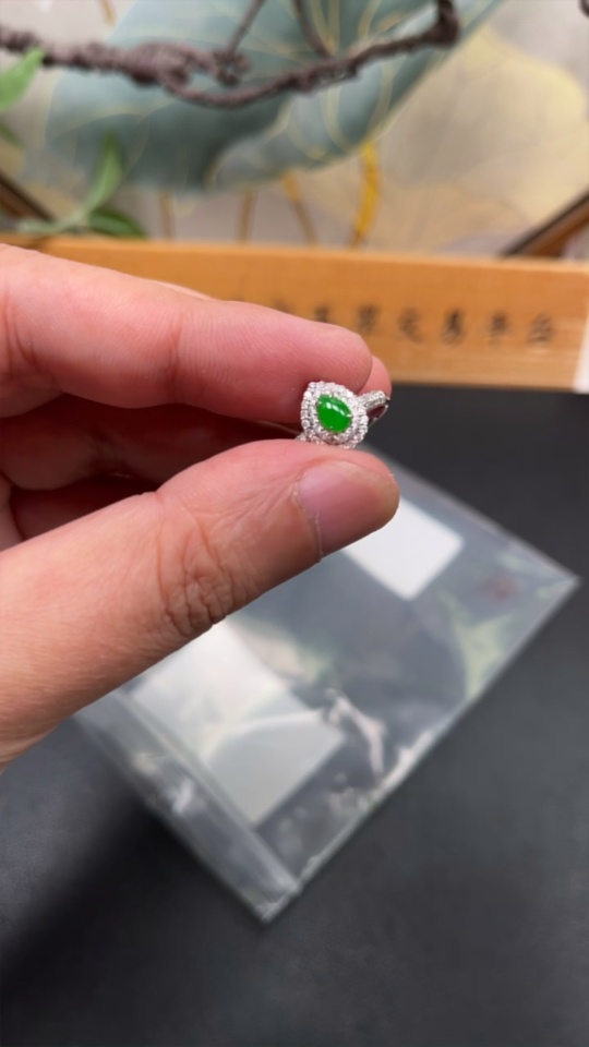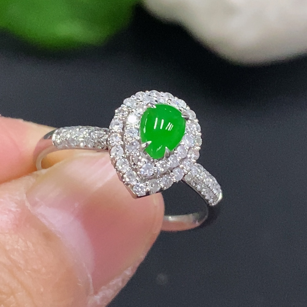 Jadeite Ring with 18K Gold Size 14 Total Weight Approx. 2g (Accented with Diamonds)