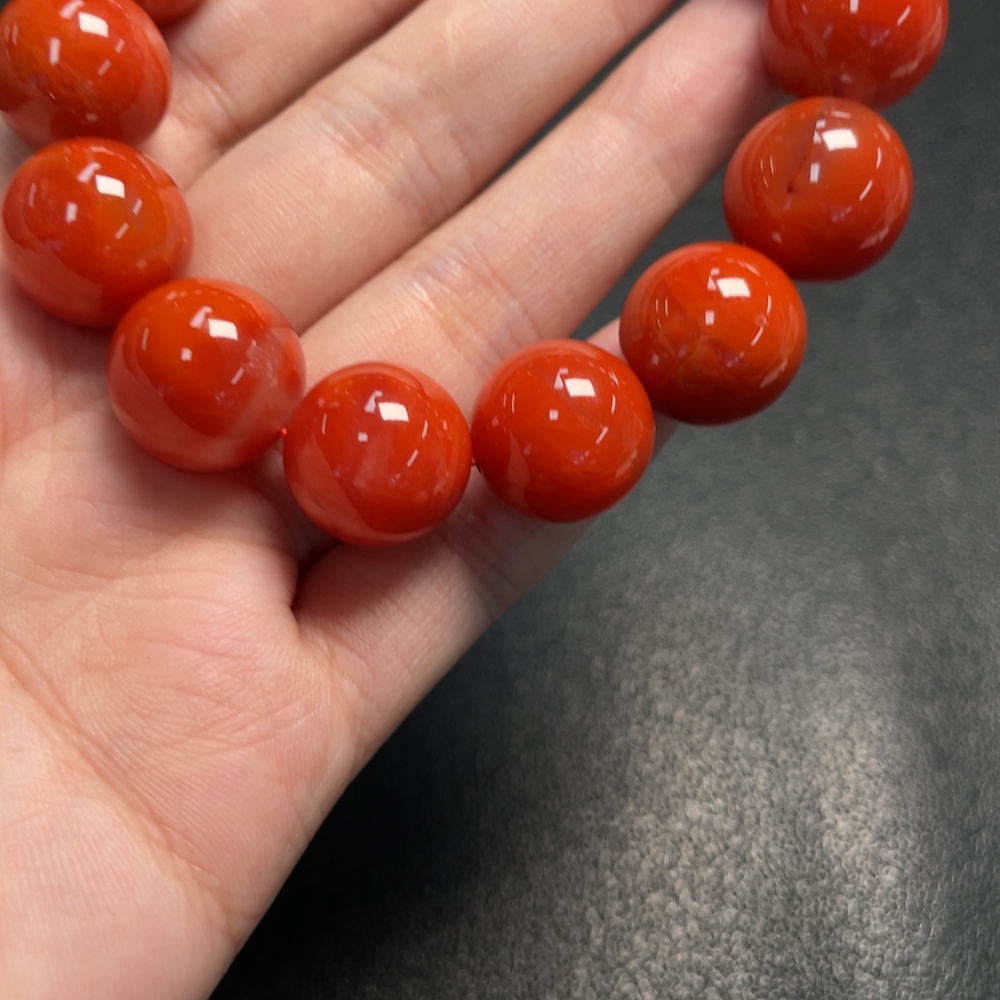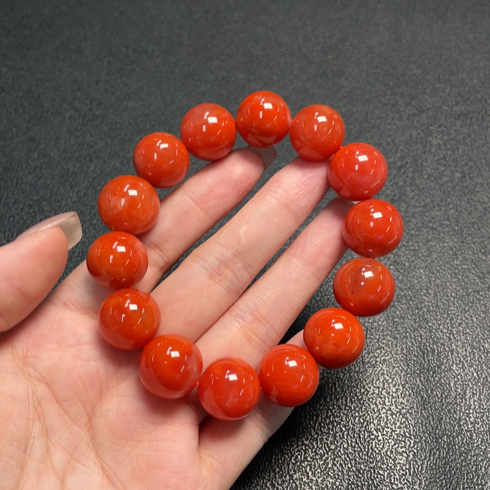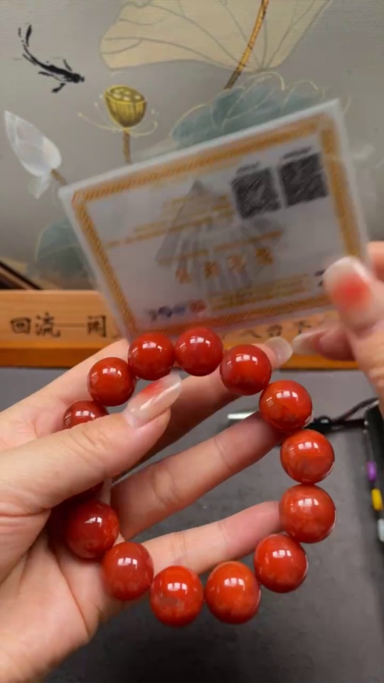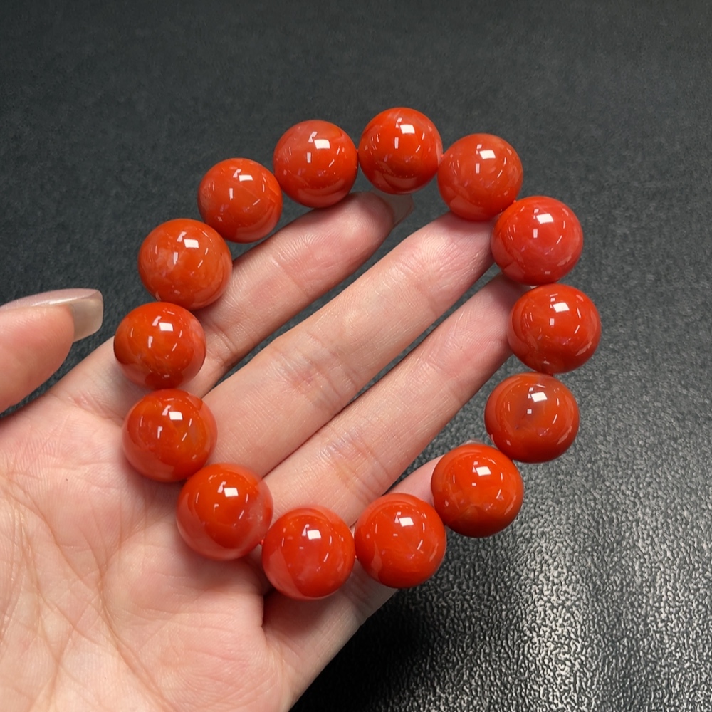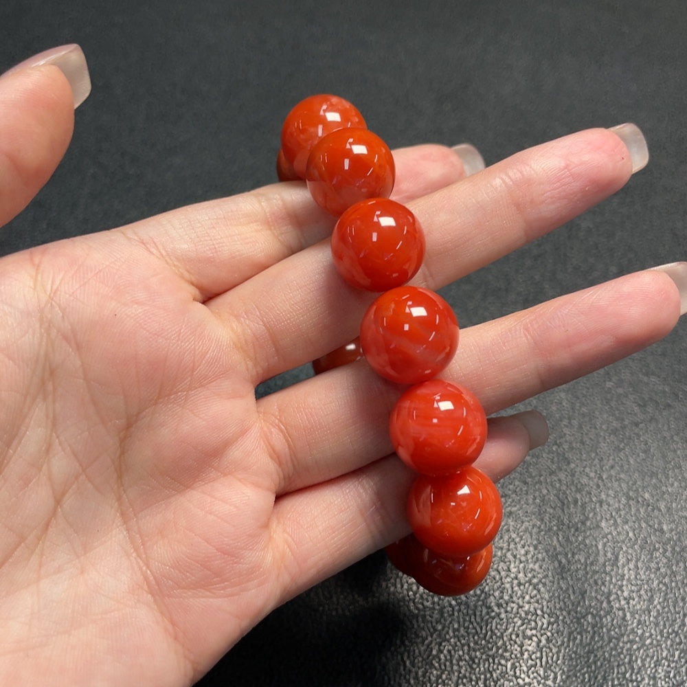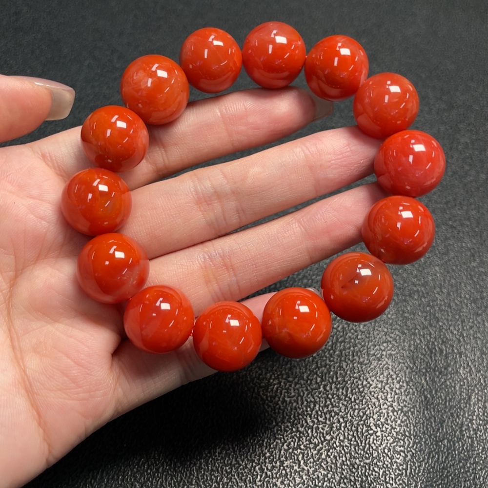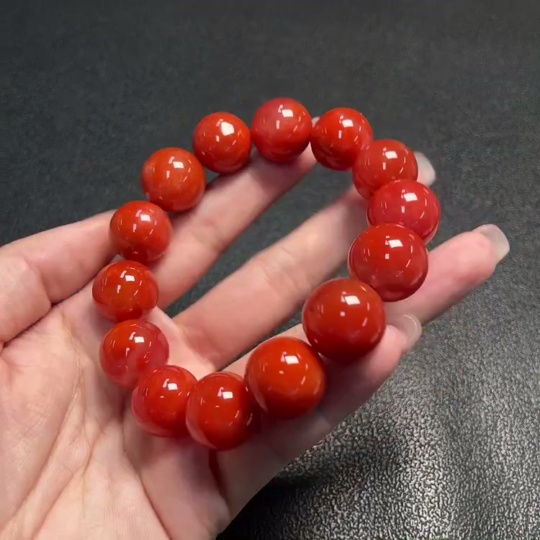 Red Agate Bracelet with Visible Organic Matter, Total Weight Approx. 70.22g, Size About 15.4mm