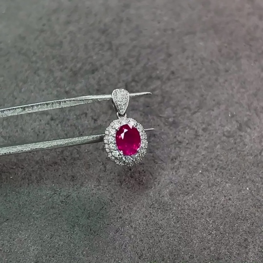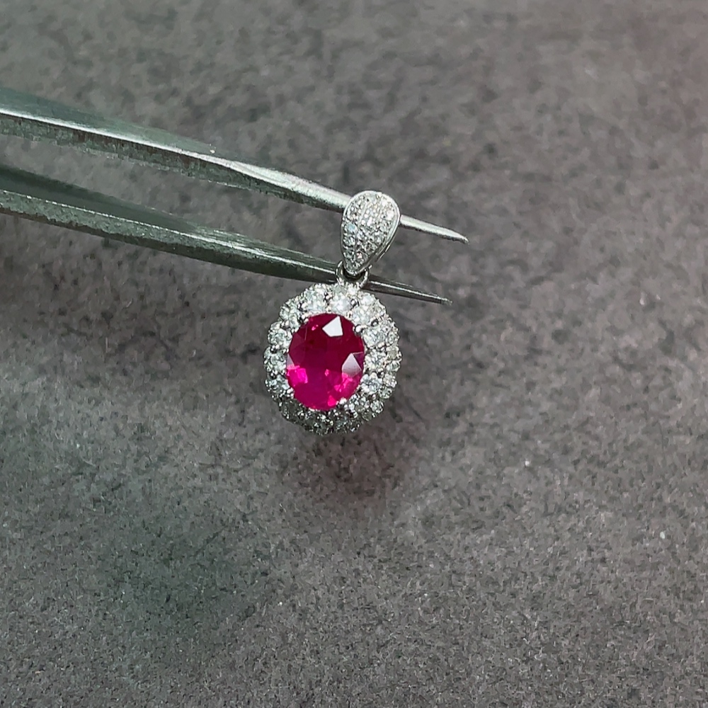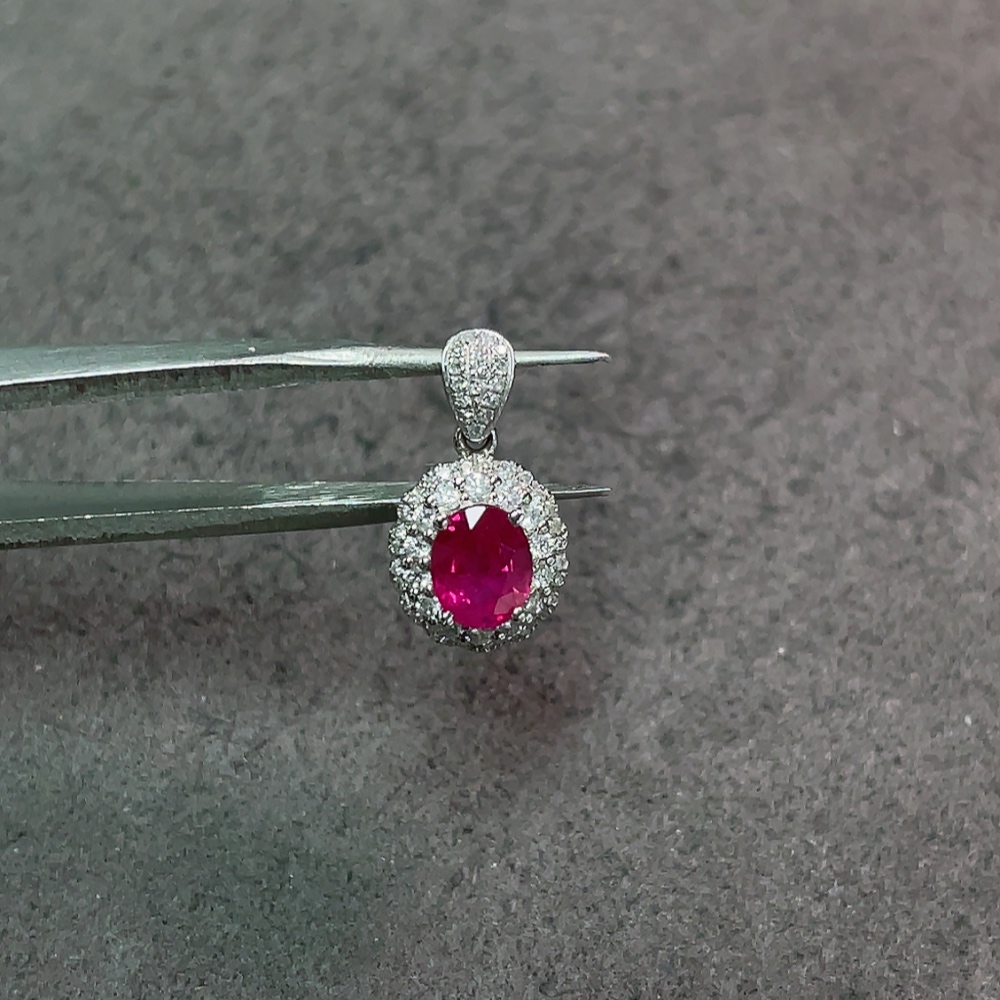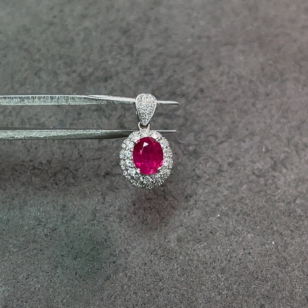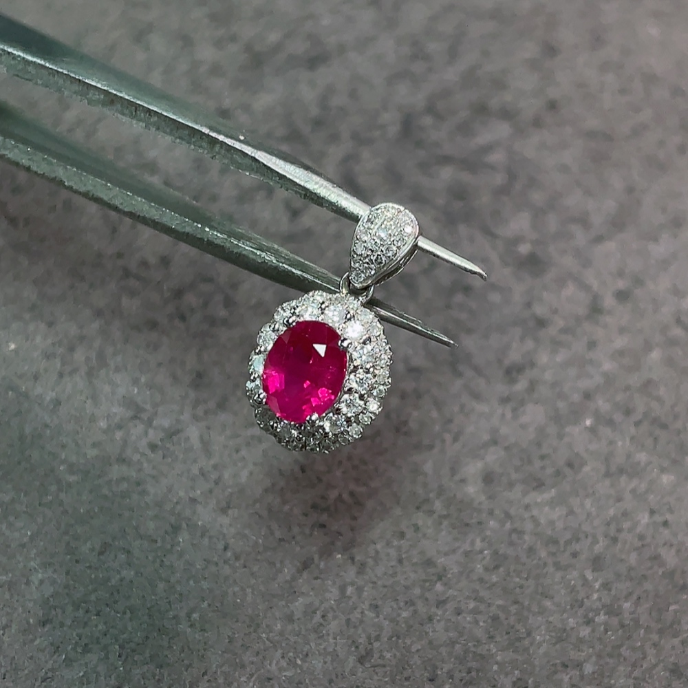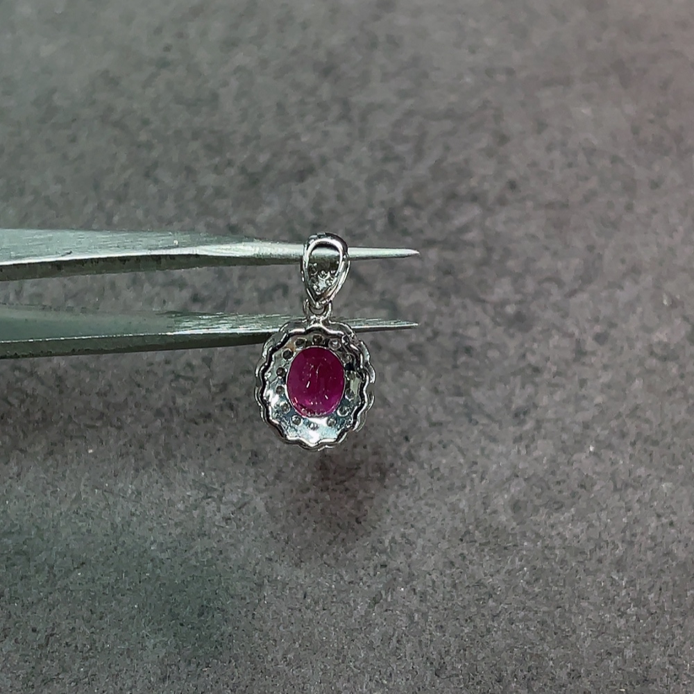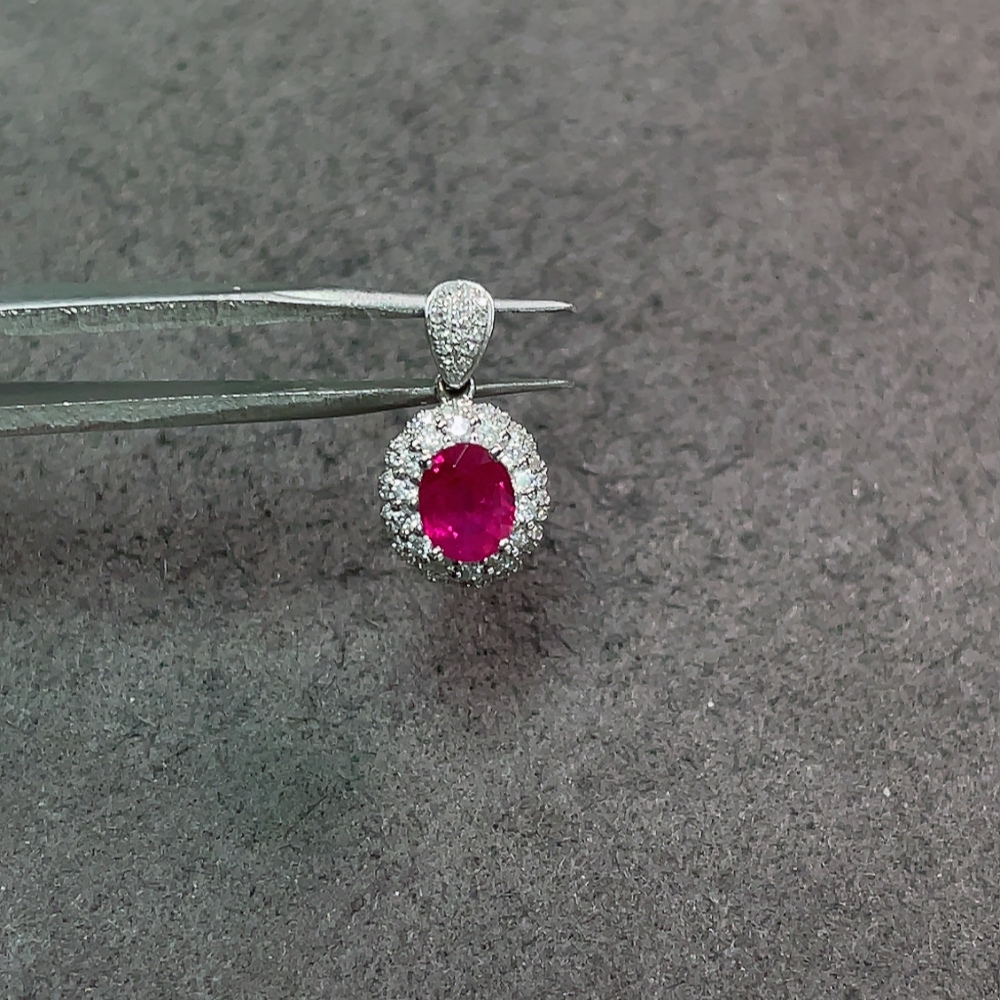 18K Ruby Pendant with Diamond Accents, Total Weight Approx. 0.96g