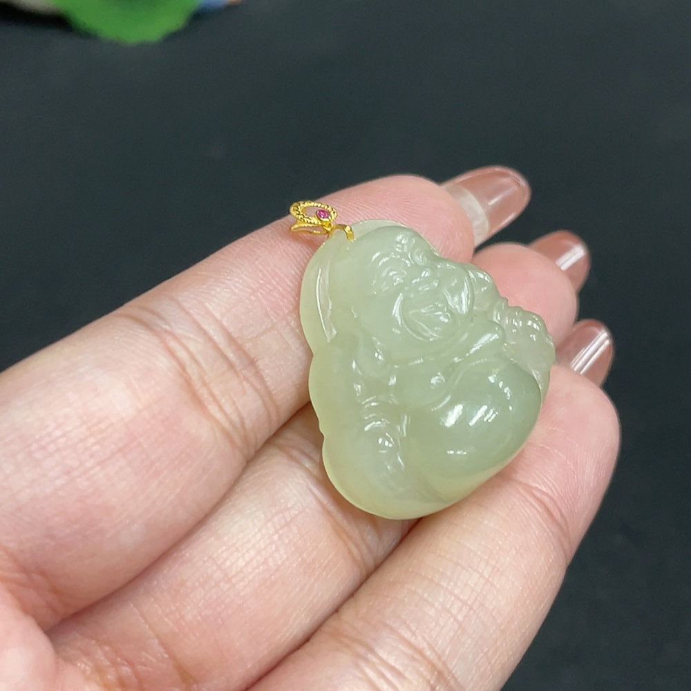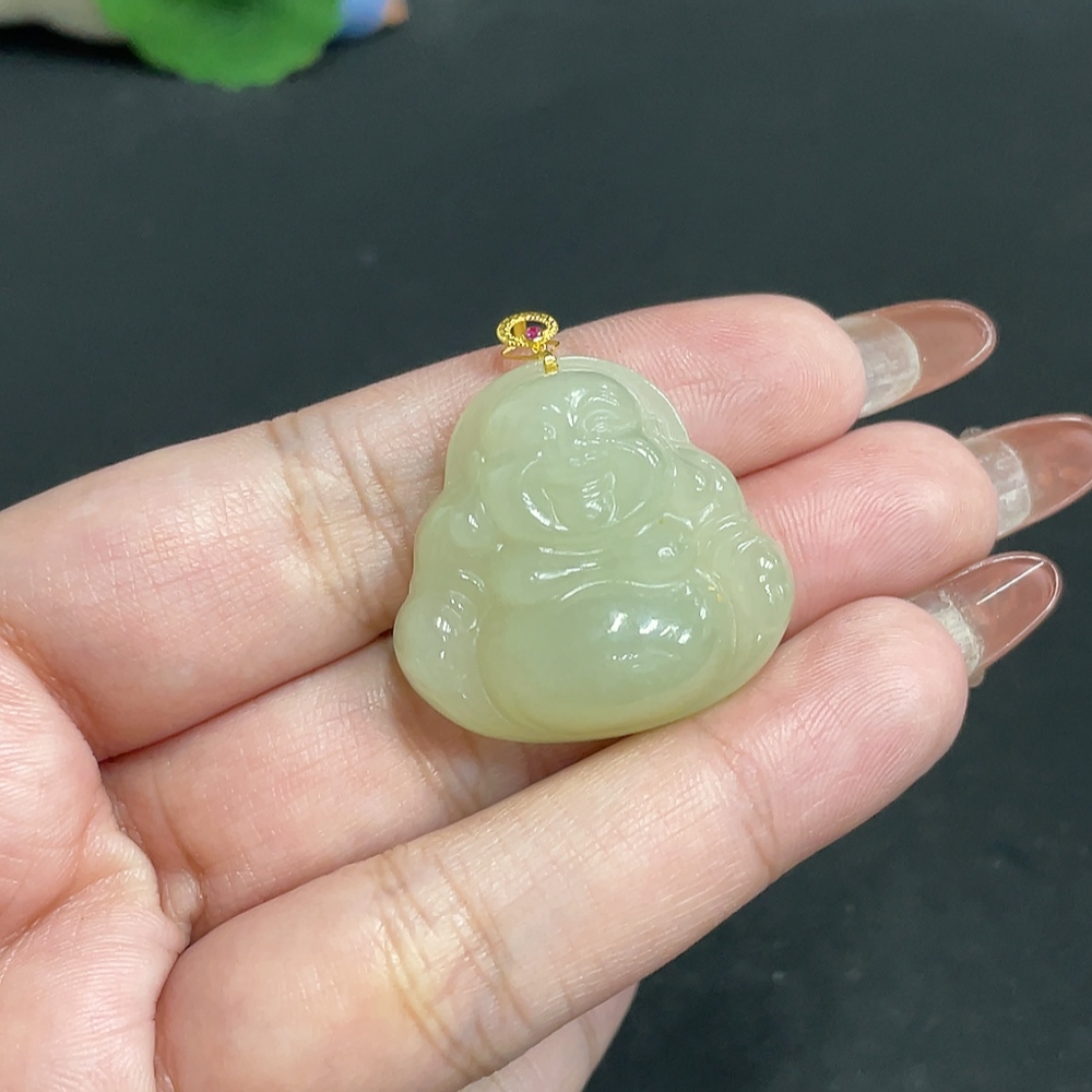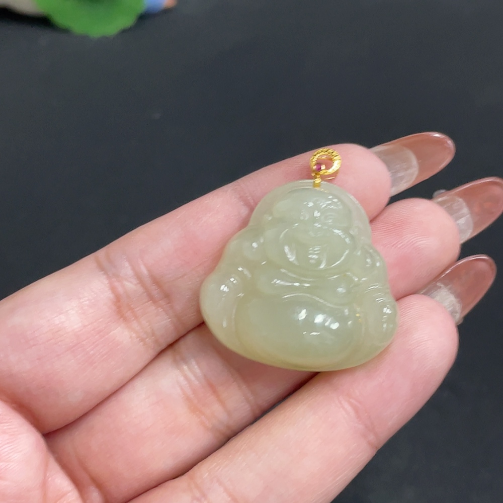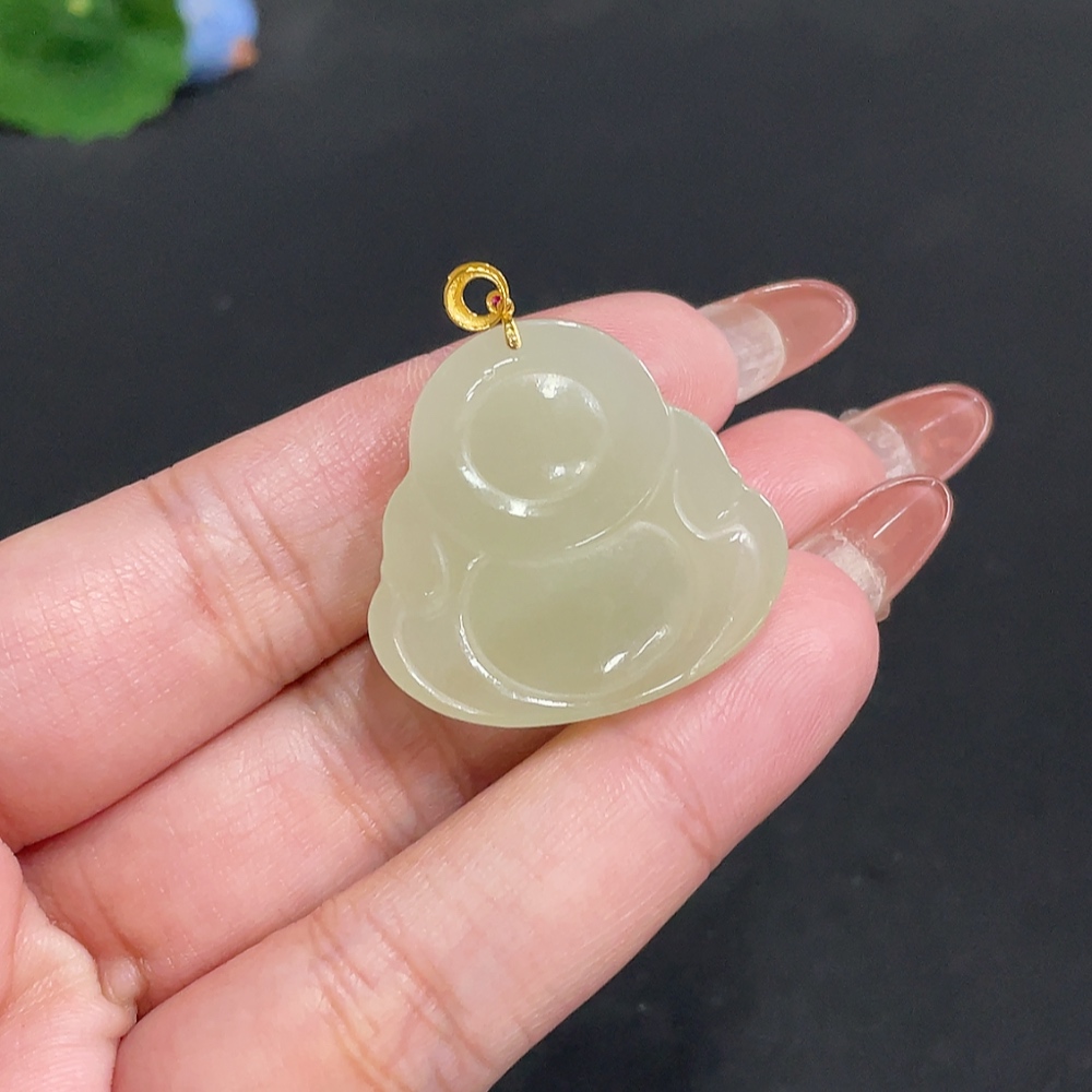 Hetian Jade Inlaid Pendant Buddha Total Weight Approx. 11.8g 18k