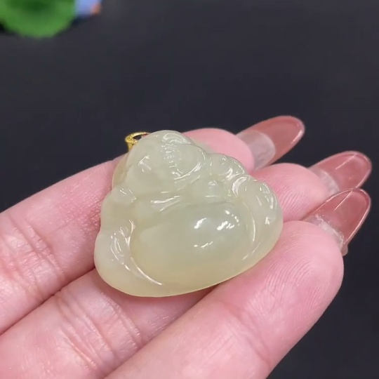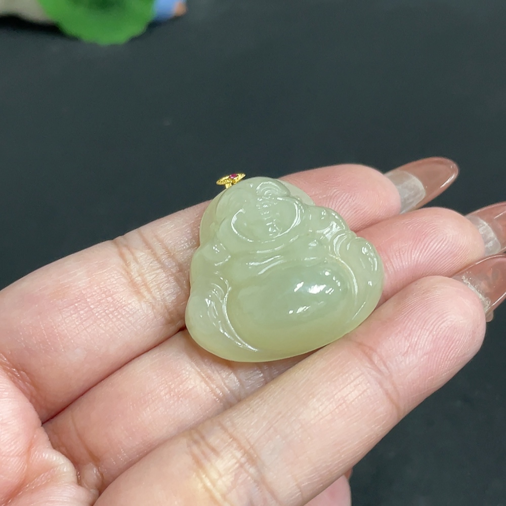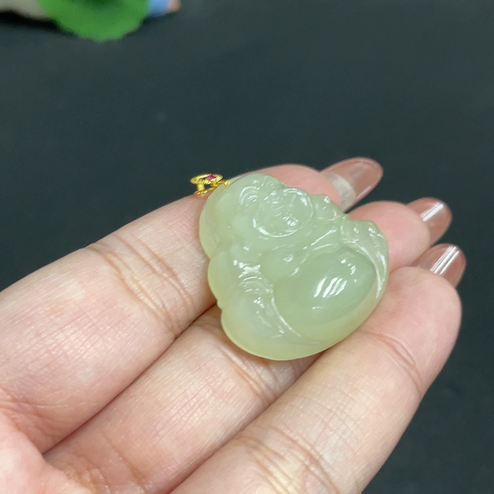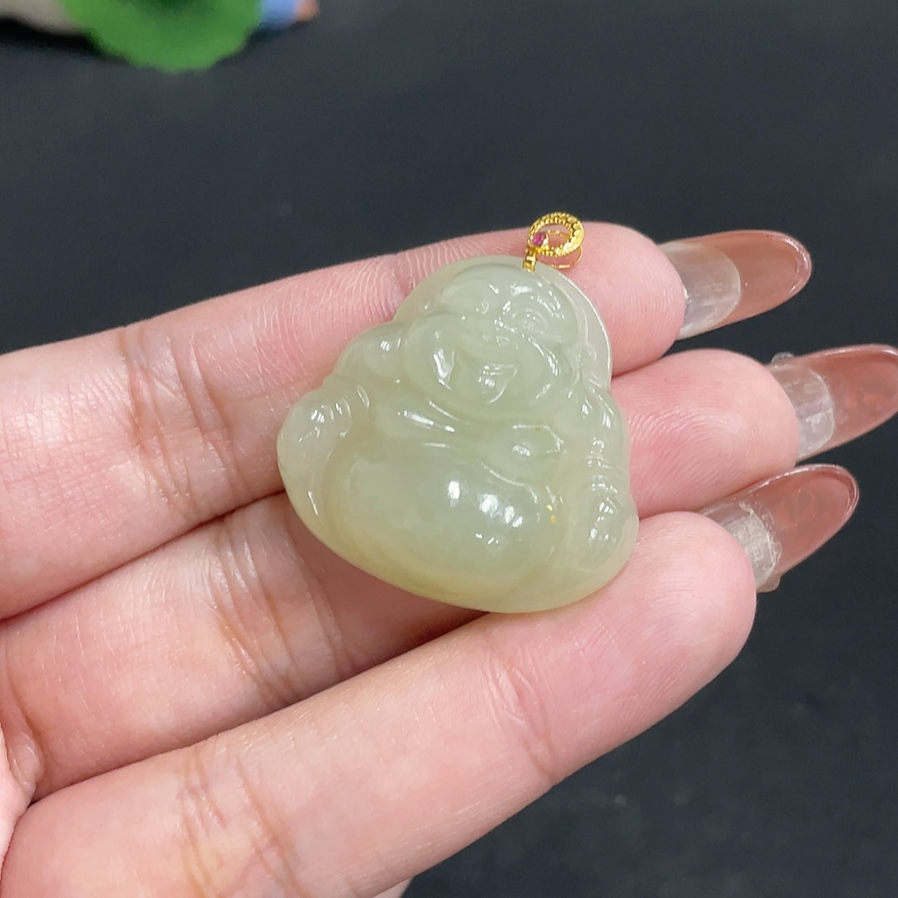 Hetian Jade Inlaid Pendant Buddha Total Weight Approx. 11.8g 18k