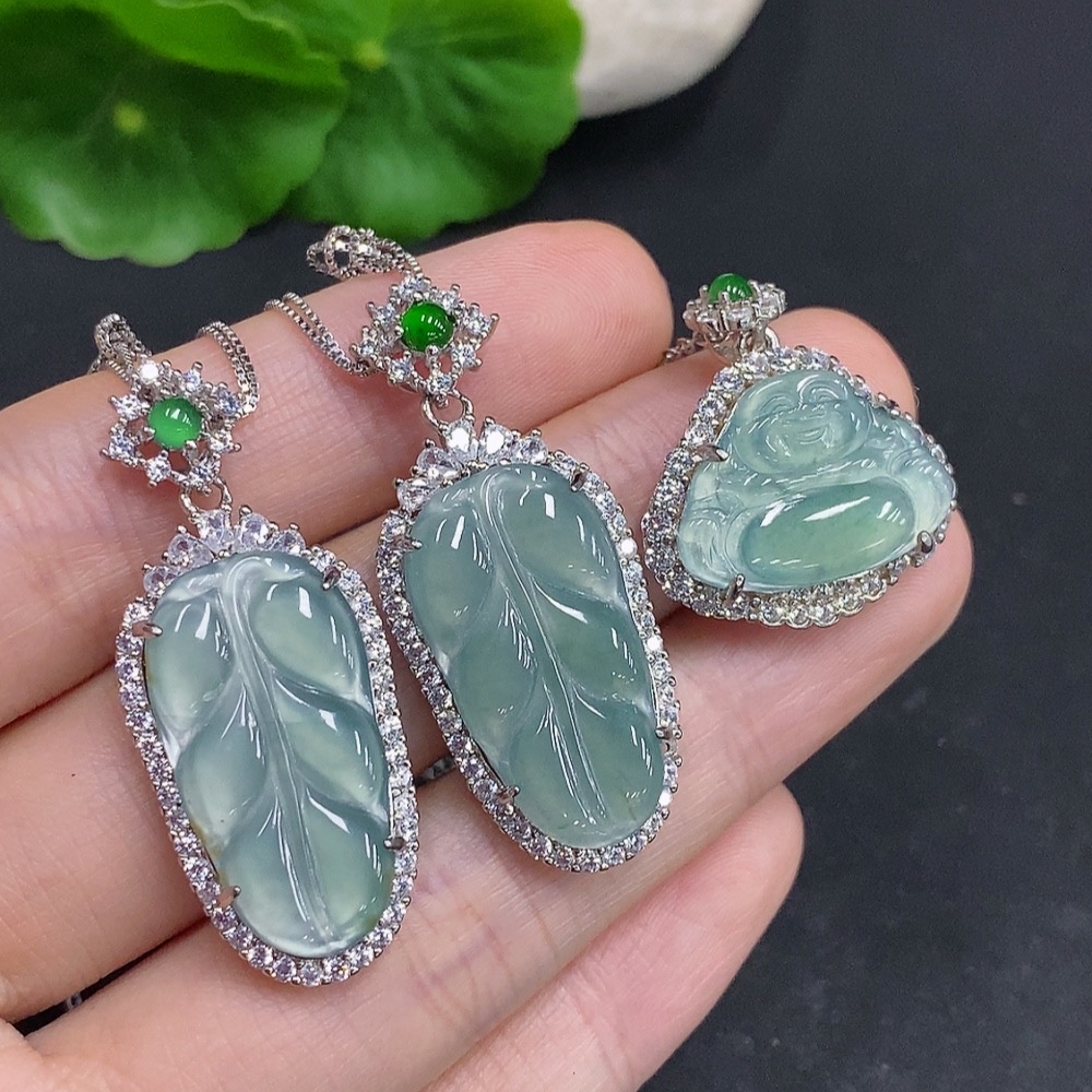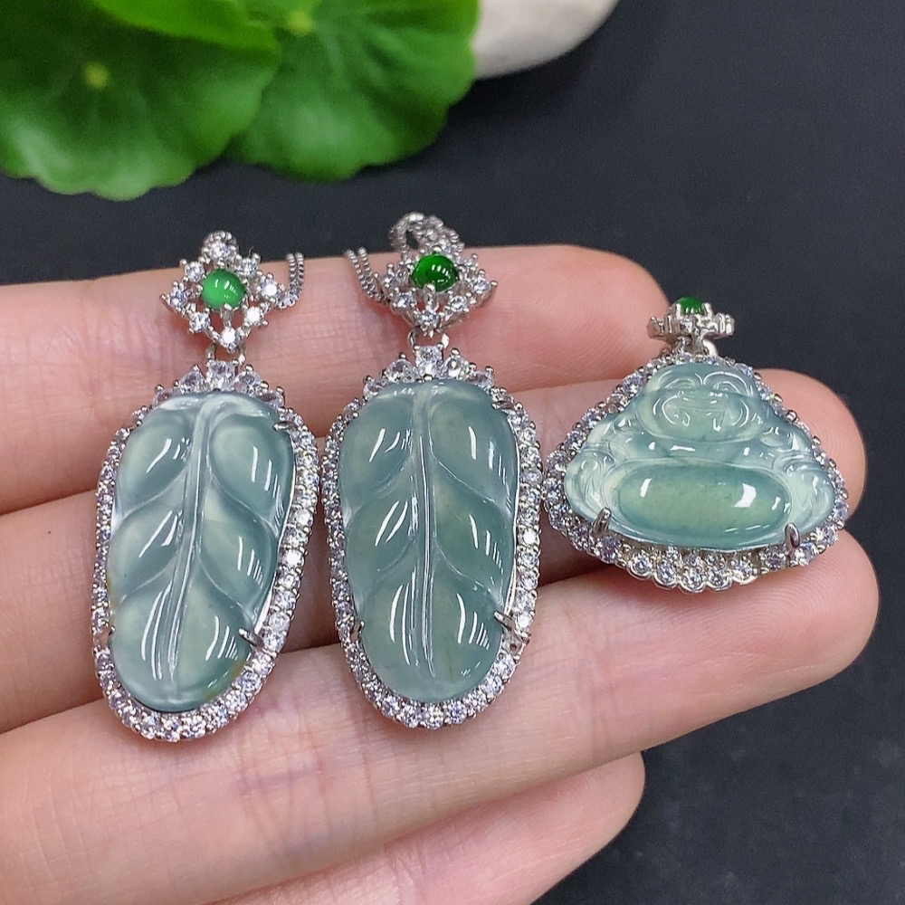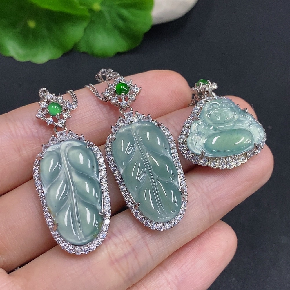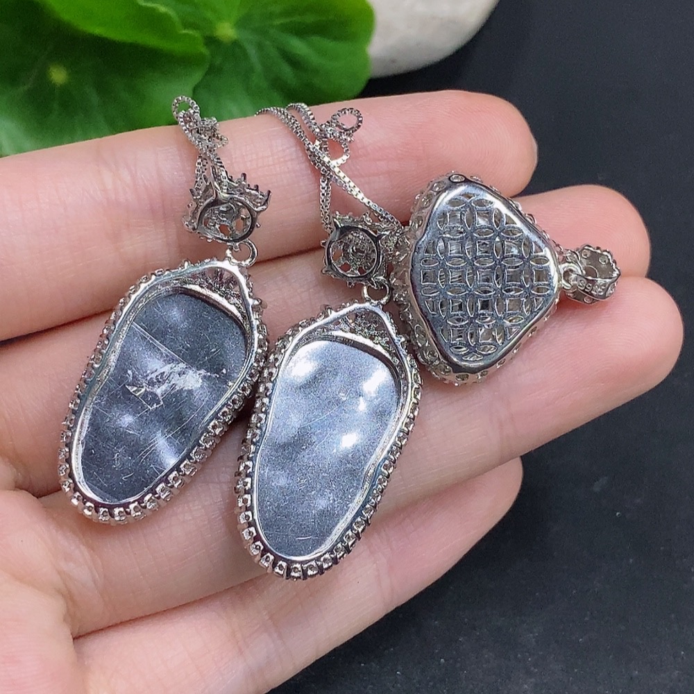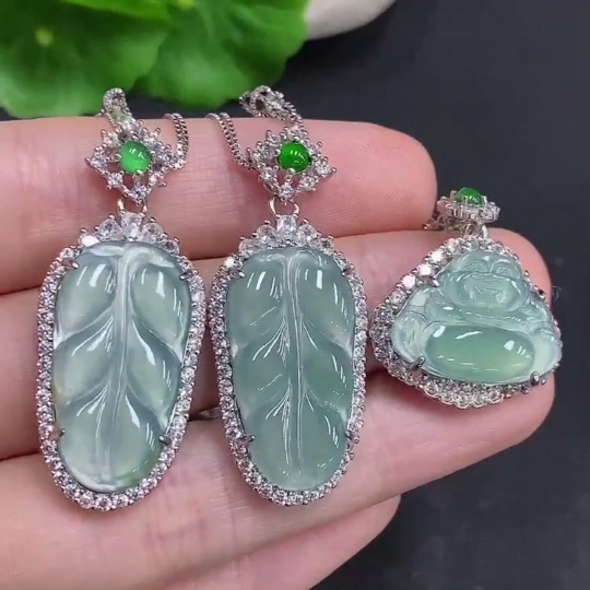 Jadeite Pendants Sell as a Lot Non-Gold Inlaid