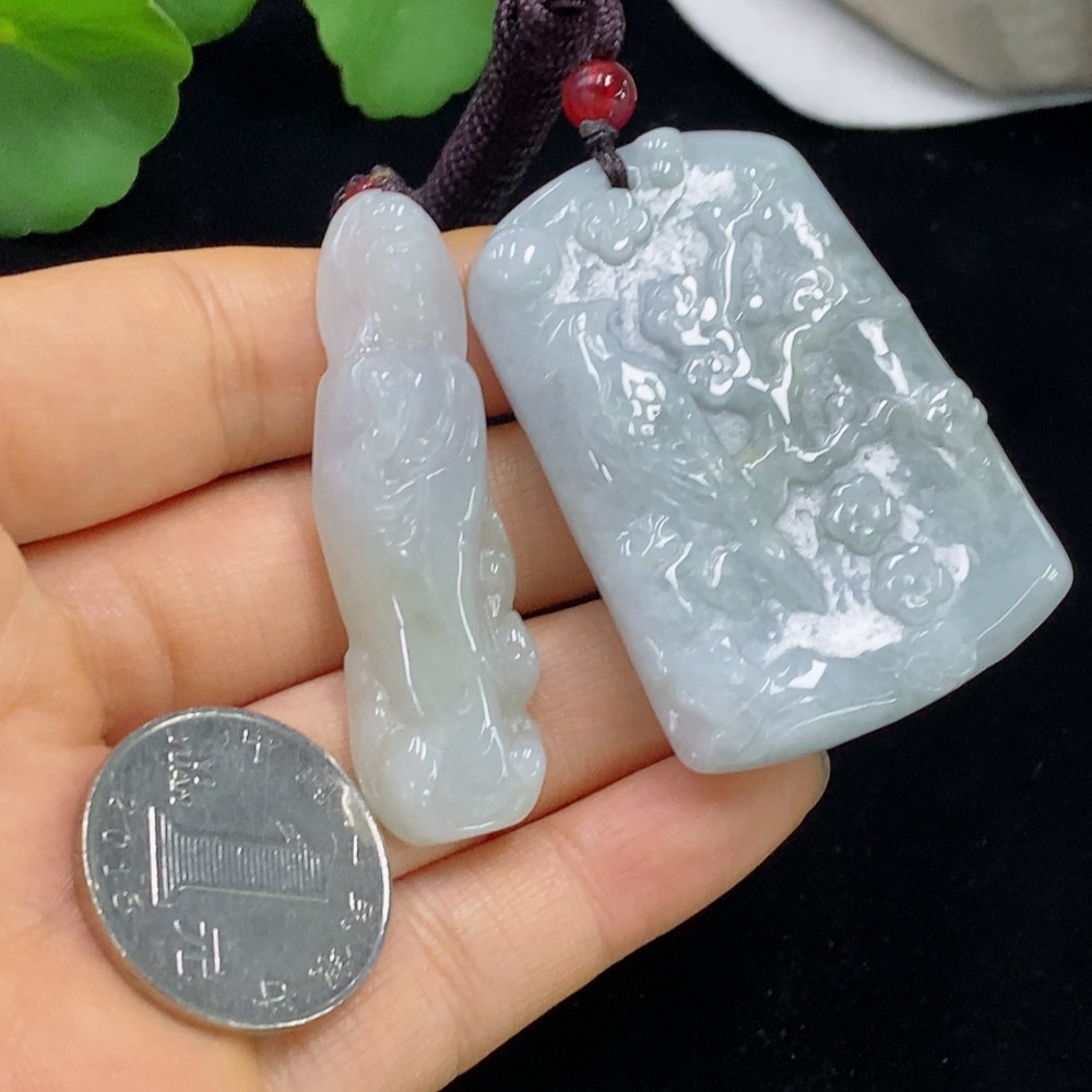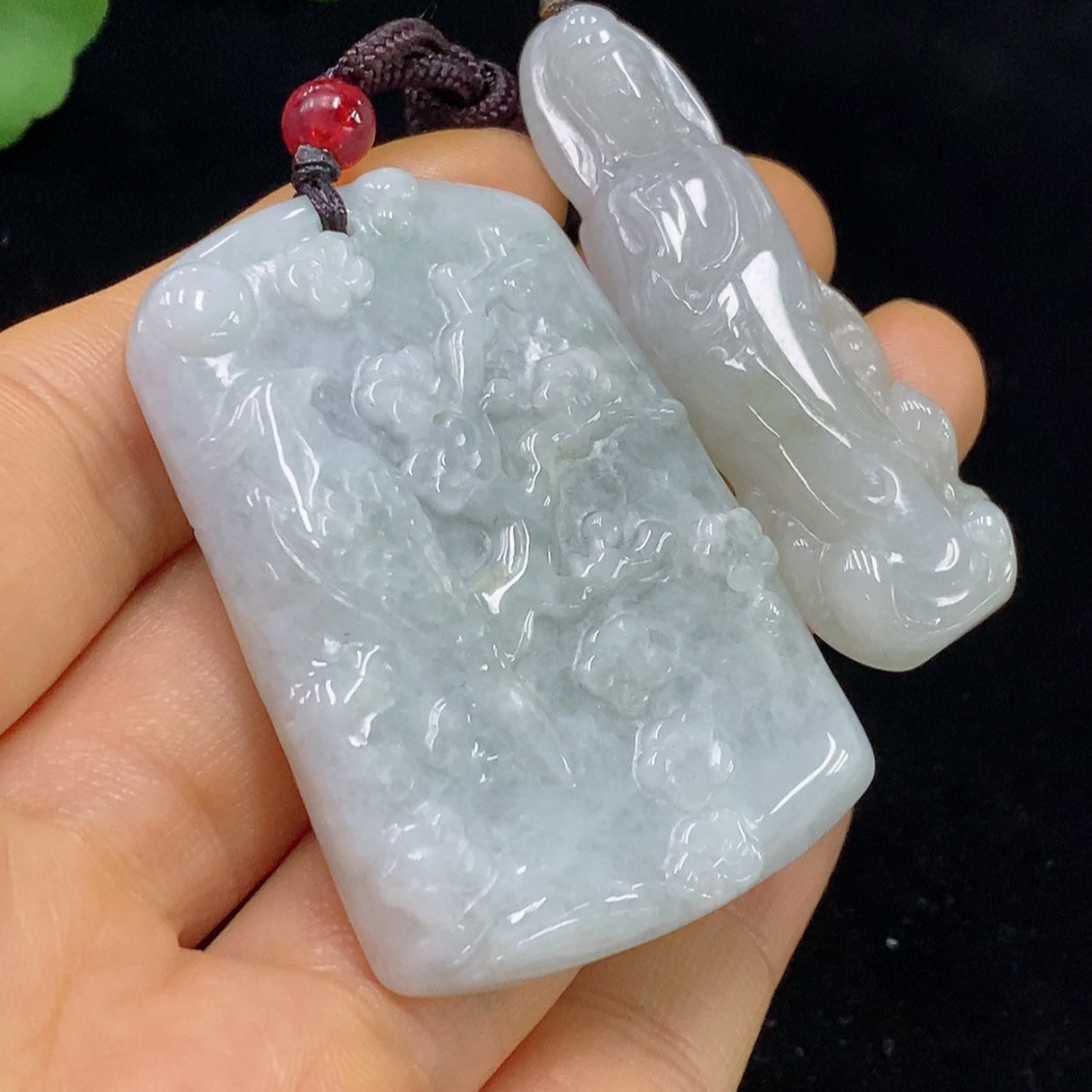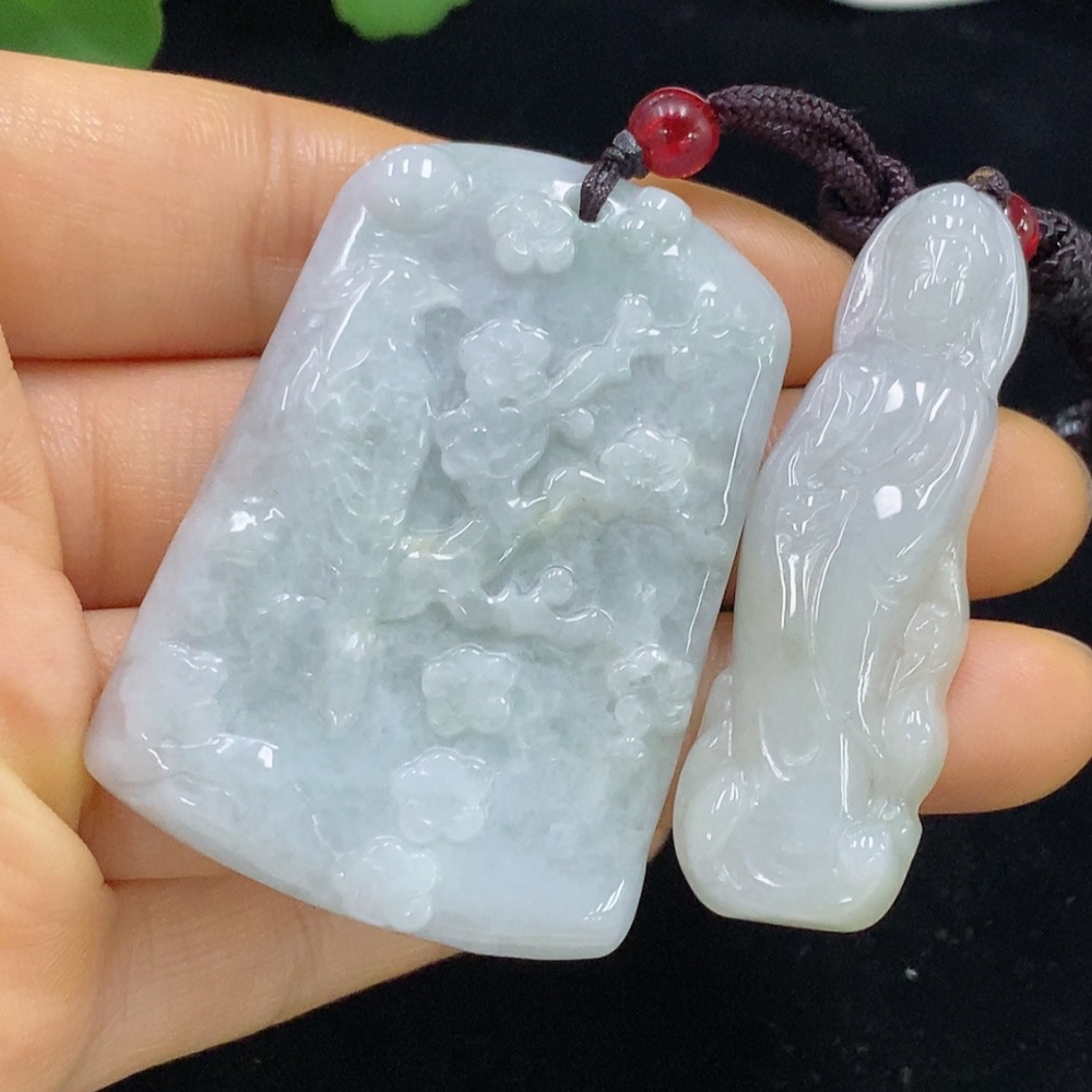 Jadeite Guanyin/Birds Singing and Flowers Fragrant Pendant Sell as a Lot