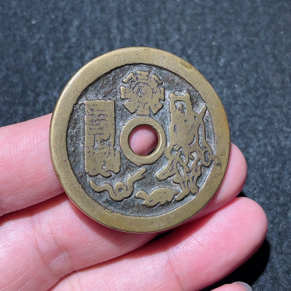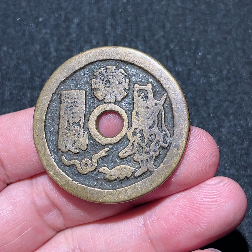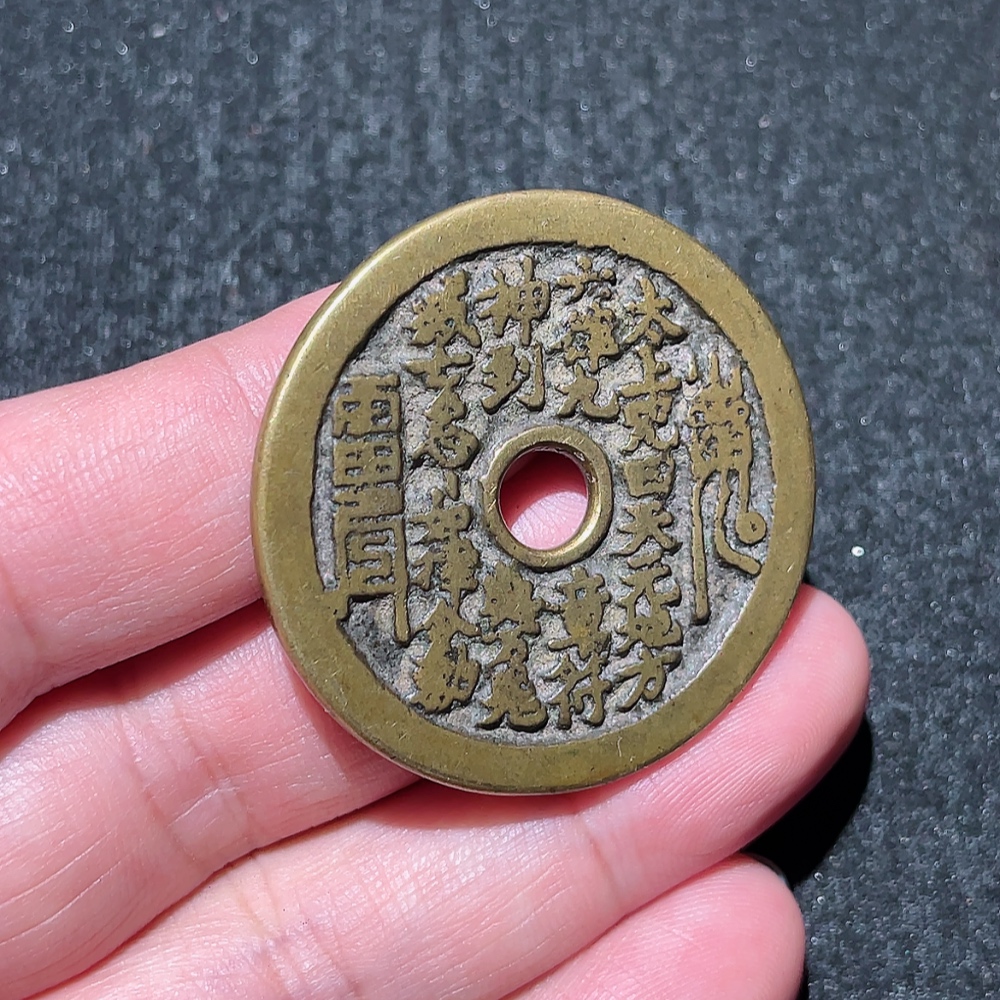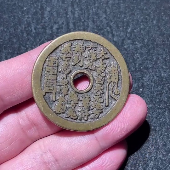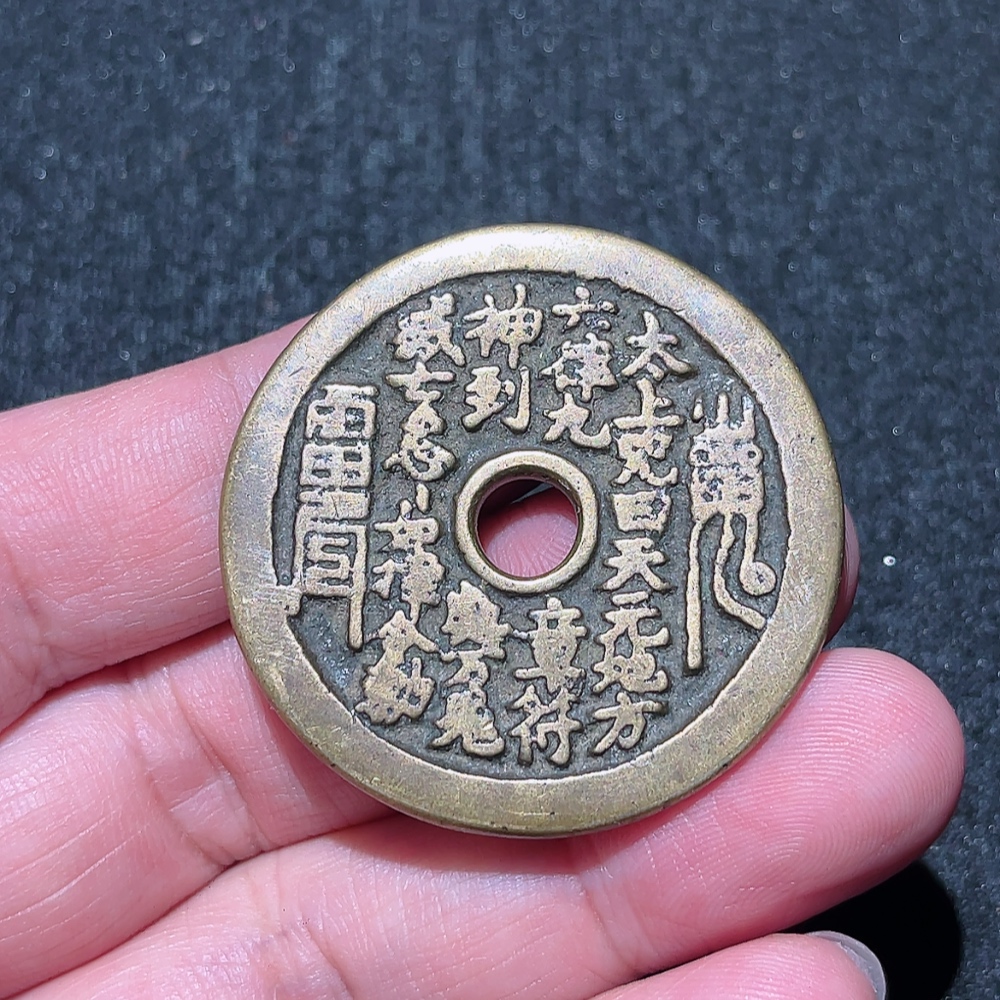 Qing Dynasty Traditional Bright Yellow Mountain Ghost Taishang Curse Coin with Sharp Inscriptions, Excellent Sound, and Pristine Condition, Rare Theme