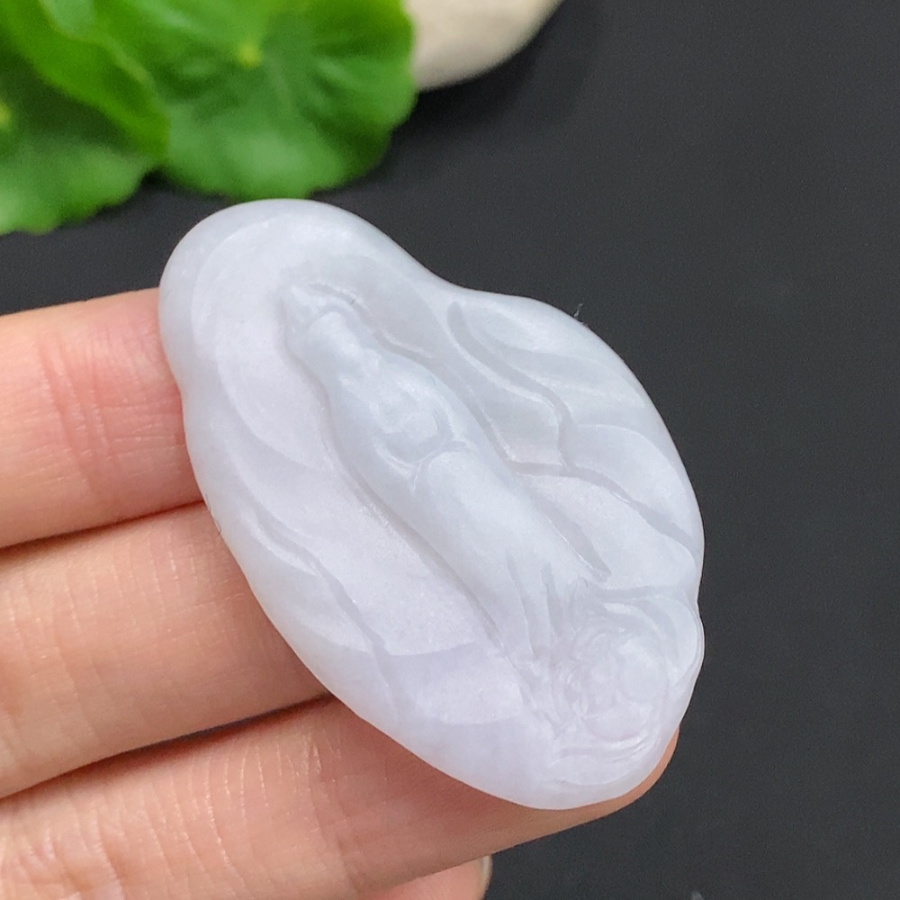 Jadeite Rough Uncarved Avalokiteshvara Pendant, Total Weight Approximately 11.6 Grams