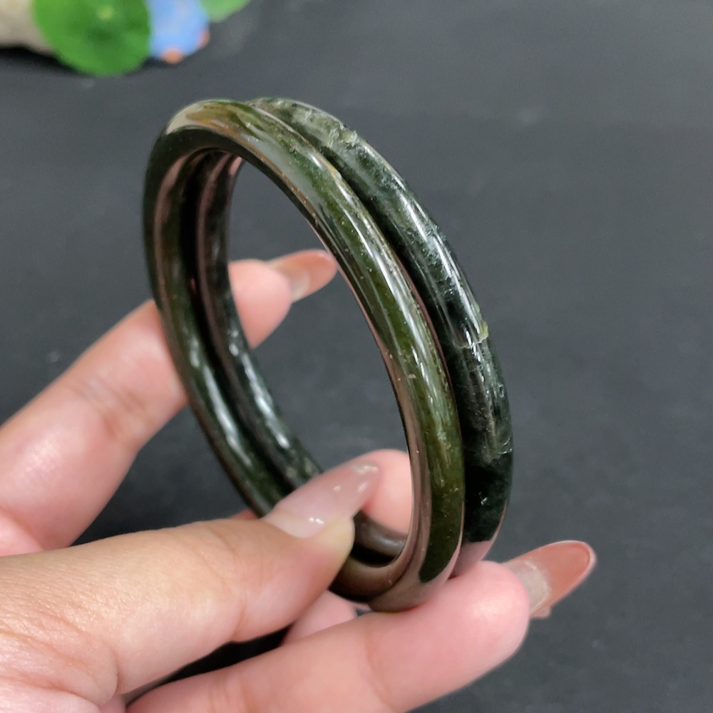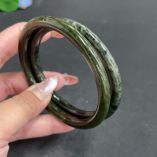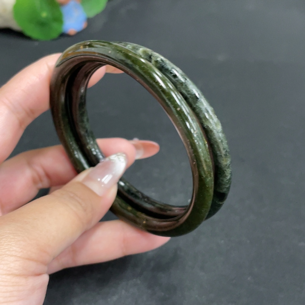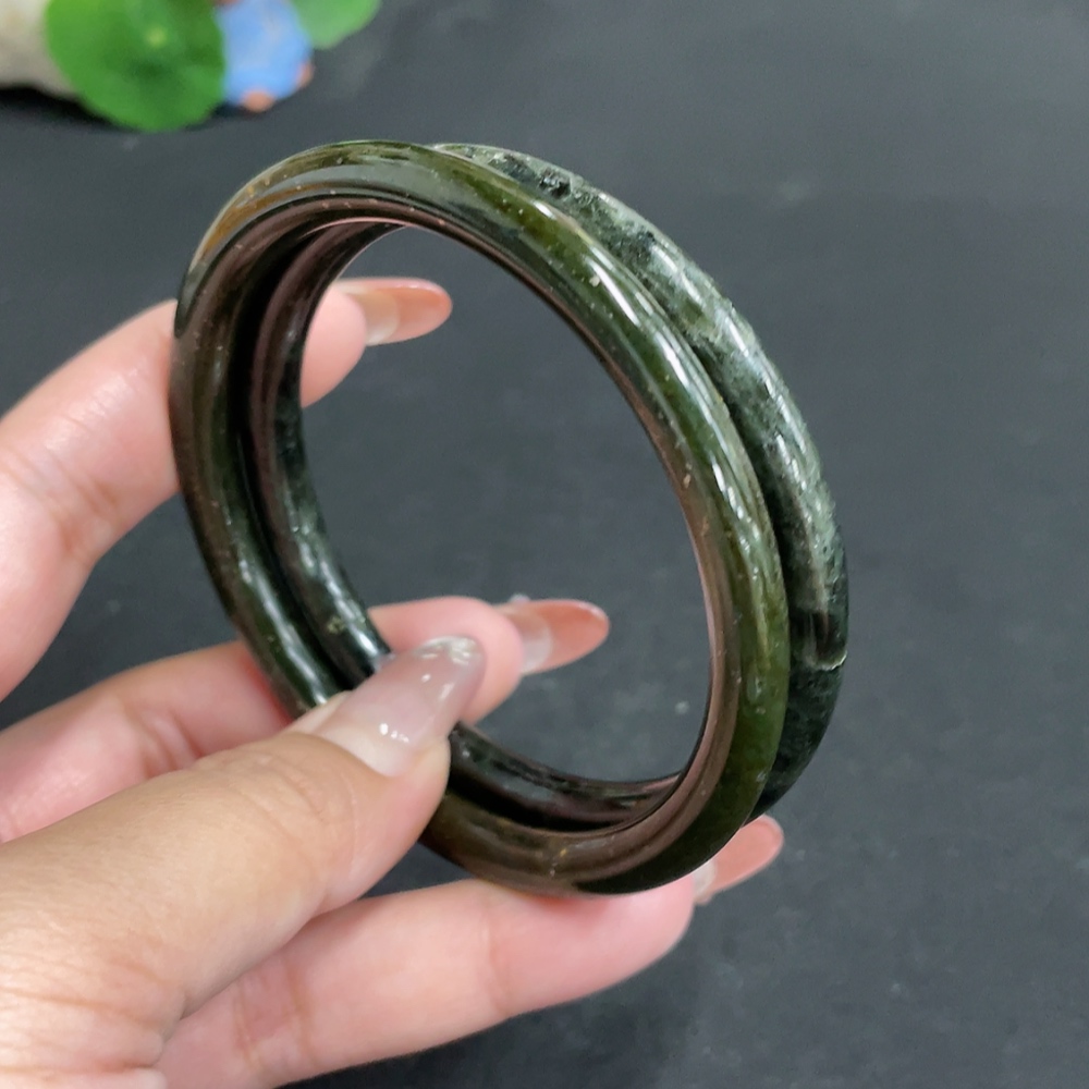 Hetian Jade Round Bangle, Size 66/61.8, Containing Other Mineral Components, Total Weight Approx. 52.2g