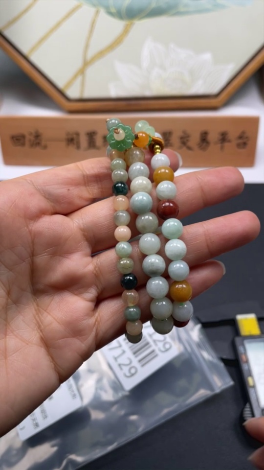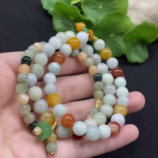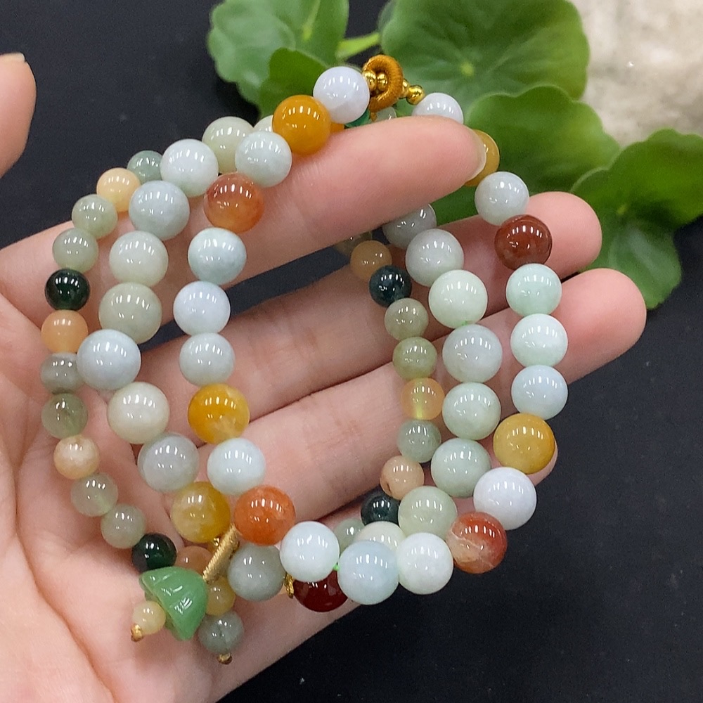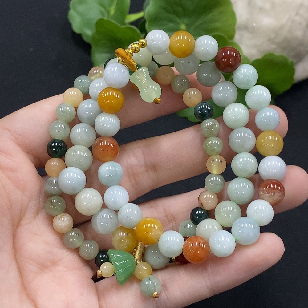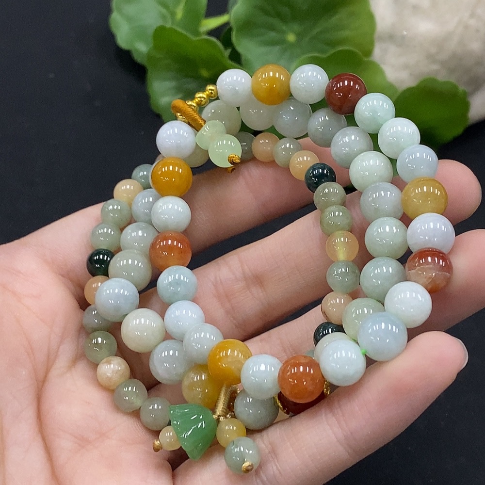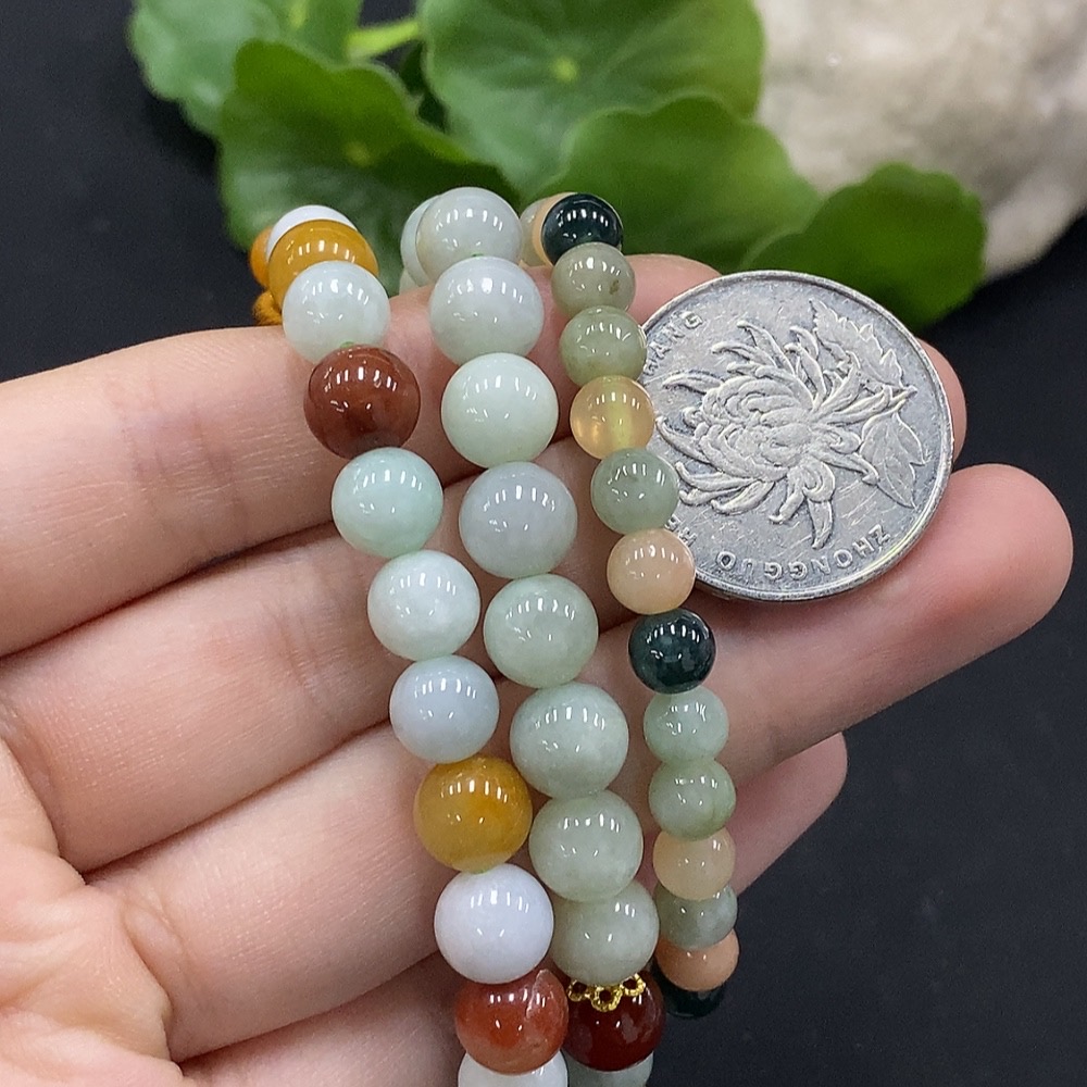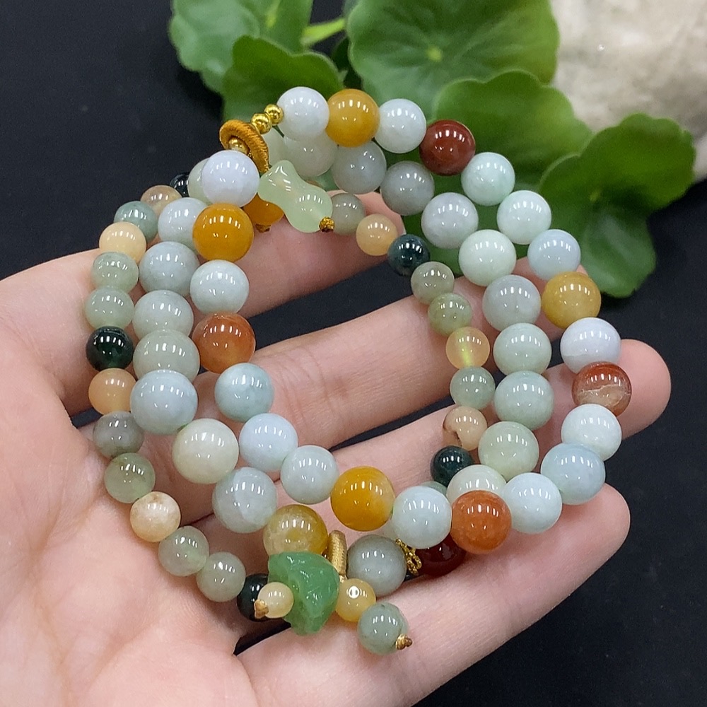 Jadeite Bracelet Non-A Grade Beads Non-Gold Inlaid Total Weight Approx. 47.71g