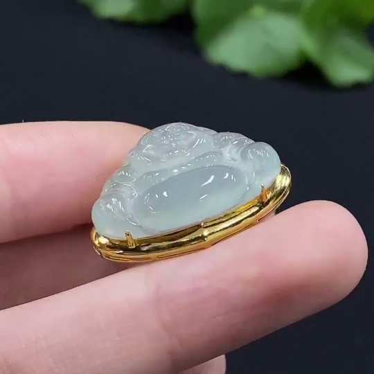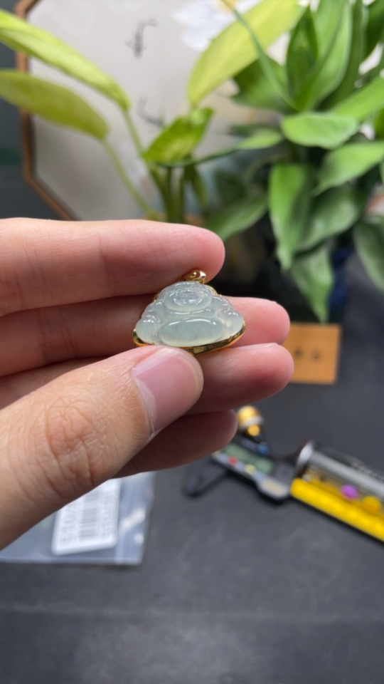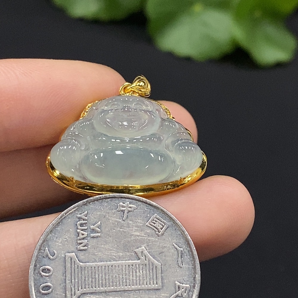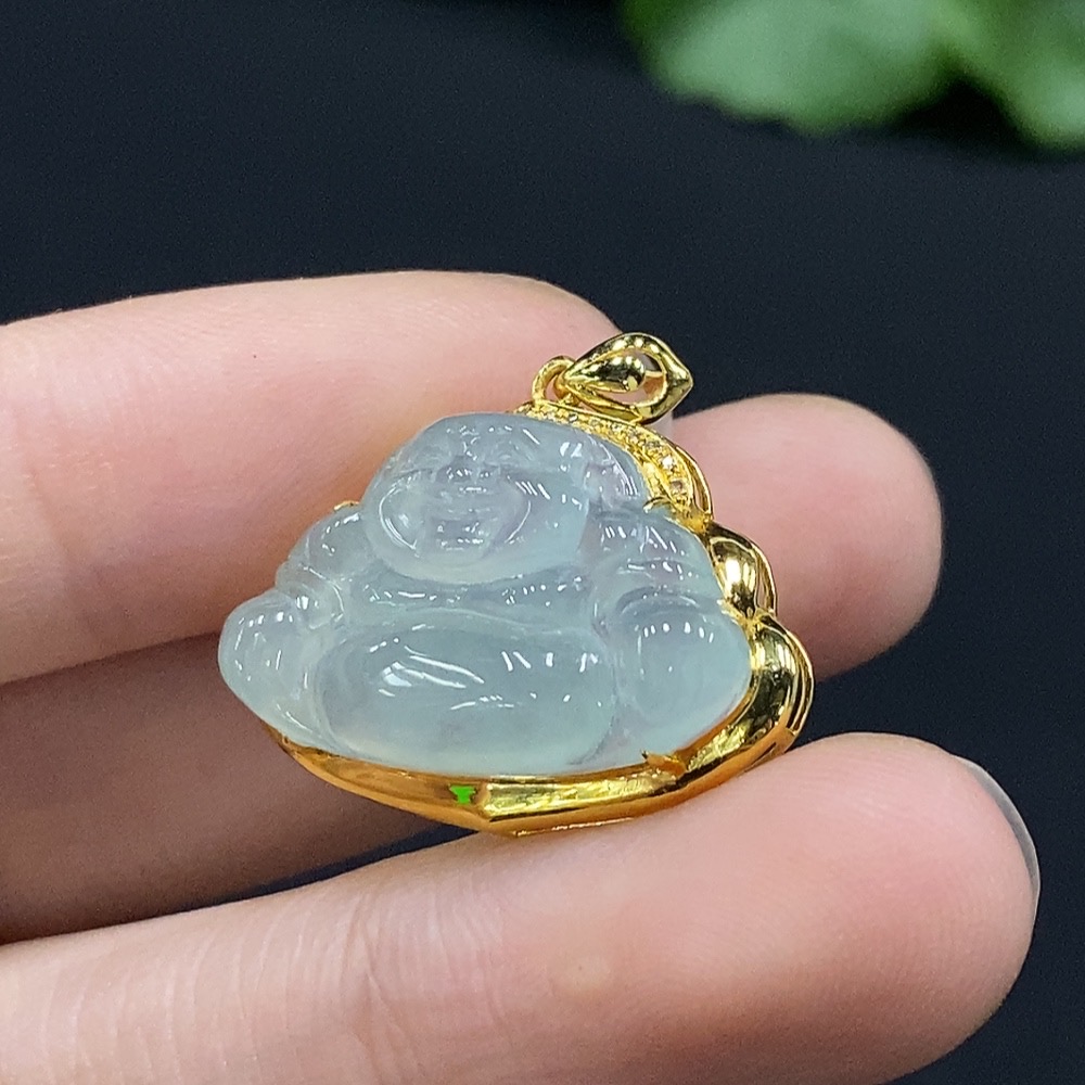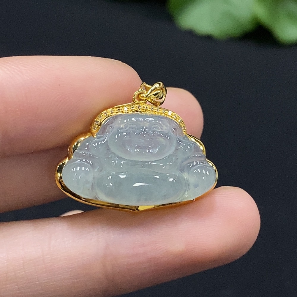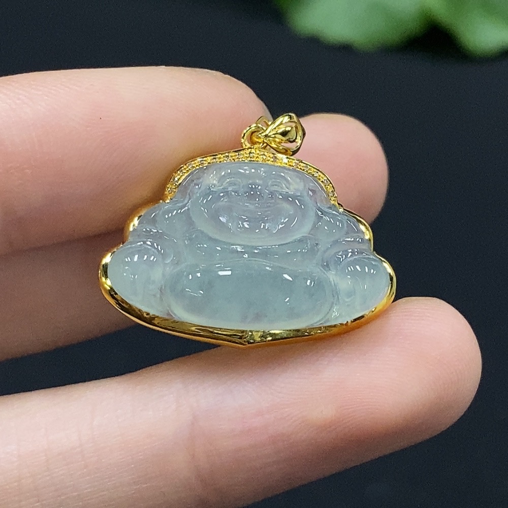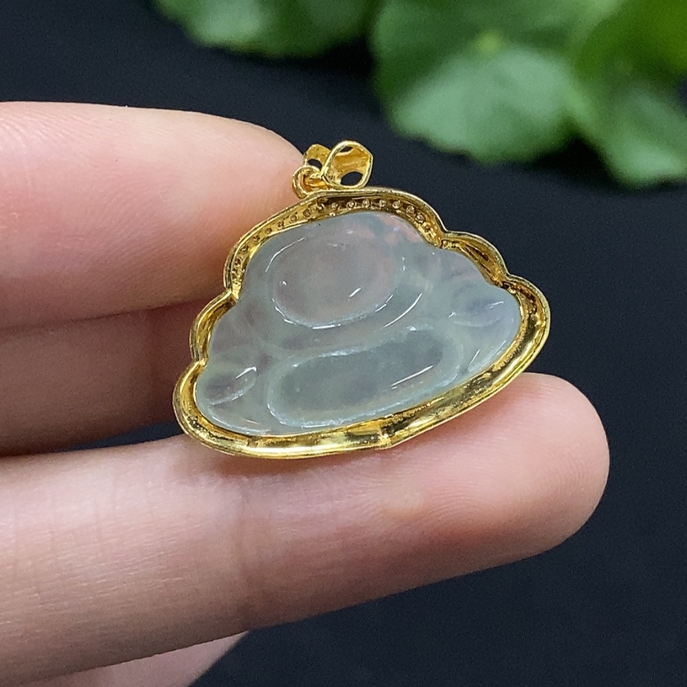 Jadeite Pendant Buddha 18k Gold Inlaid with Diamond, Total Weight Approx. 3.4g