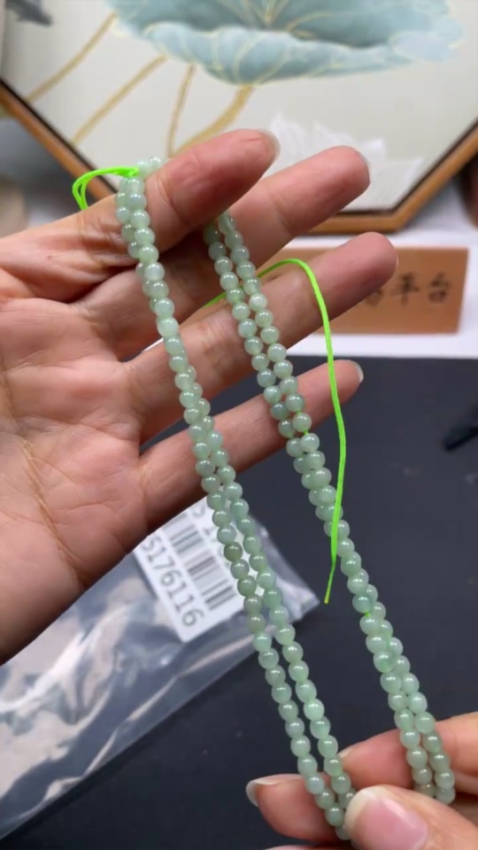 Jadeite Beaded Necklace Approximately 3.8mm Total Weight About 16.49g