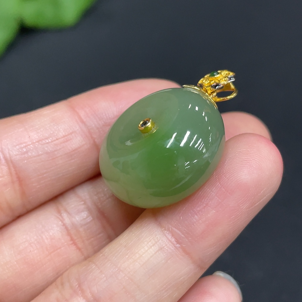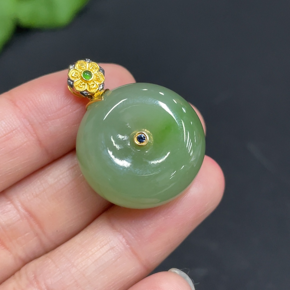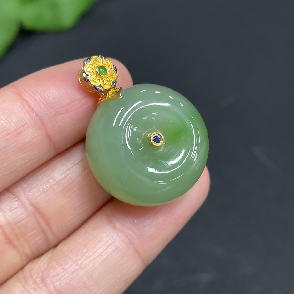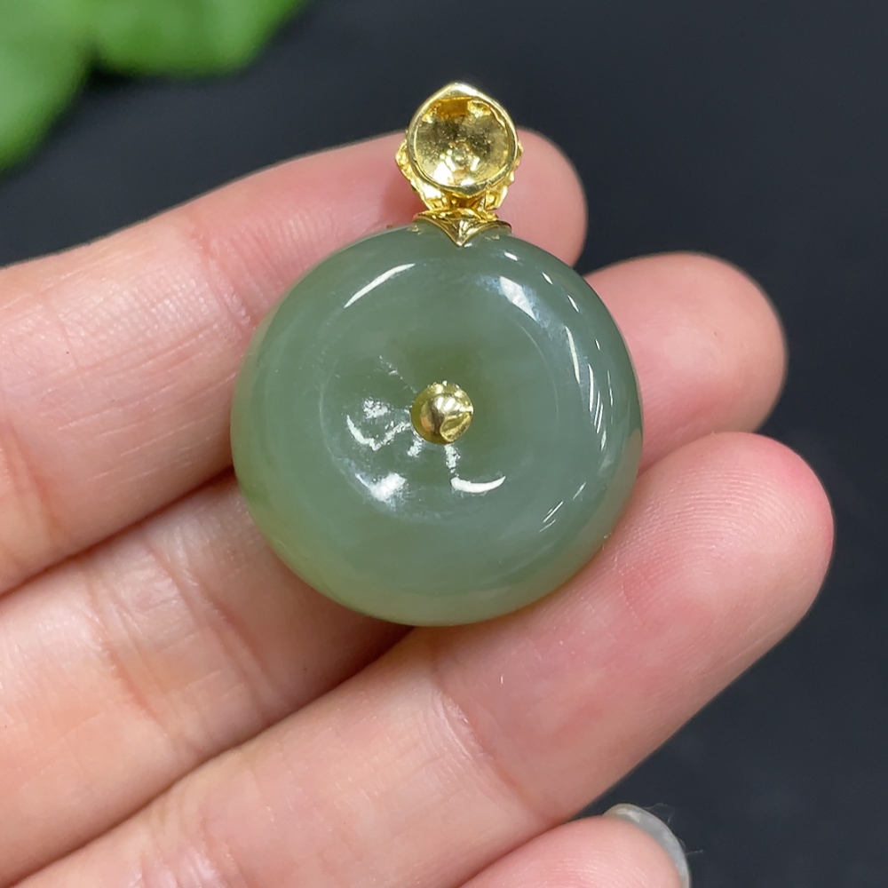 Hetian Jade Jasper Pendant, Peace Knot, 18K Gold Clasp, Total Weight Approx. 9.9g, Beads Not Hetian Jade