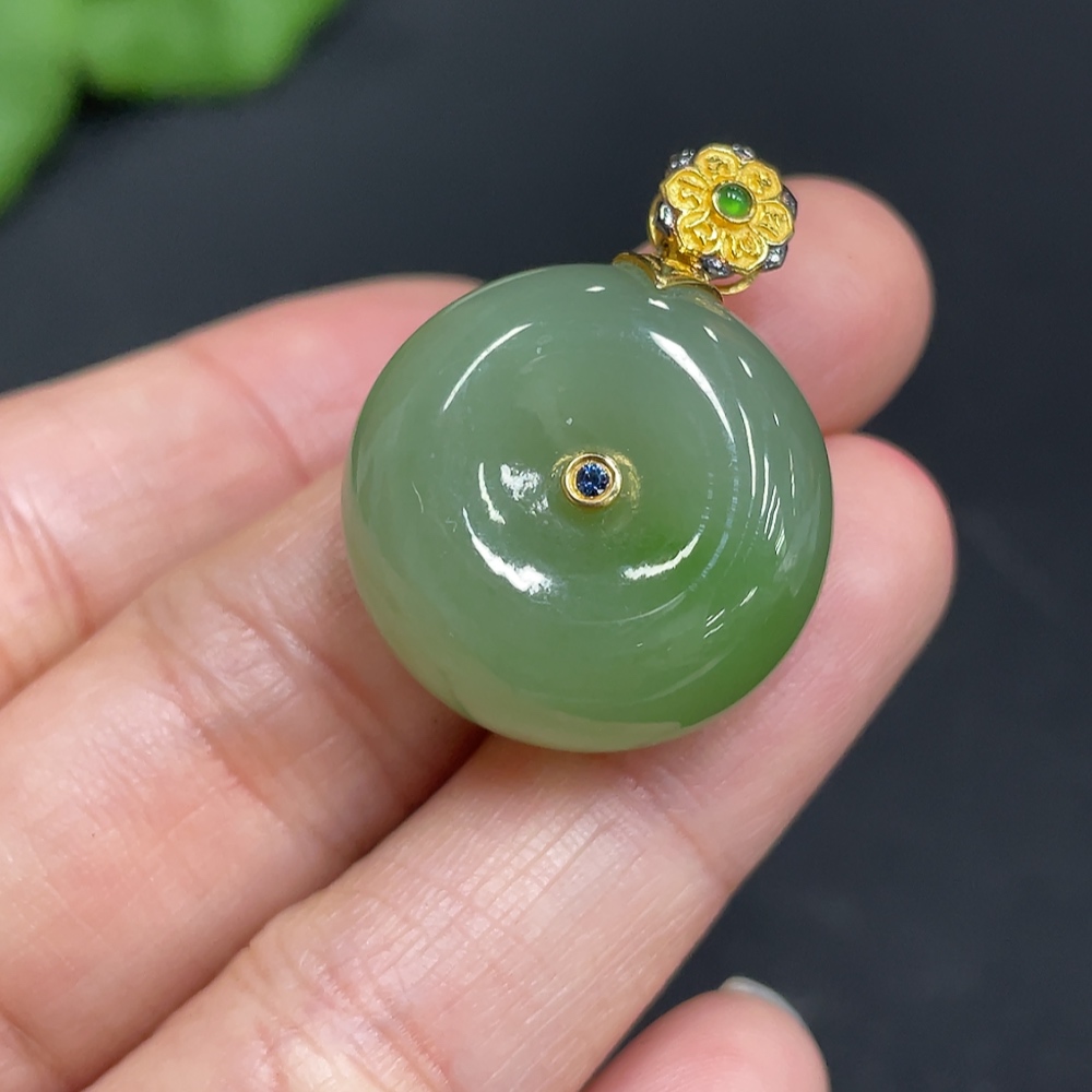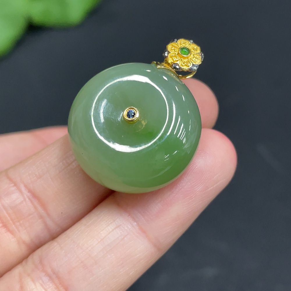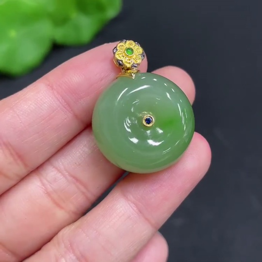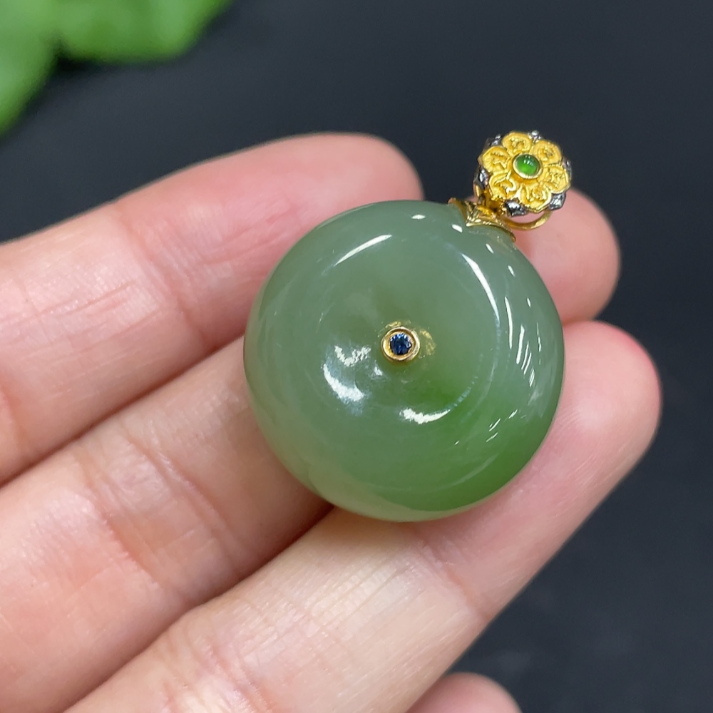 Hetian Jade Jasper Pendant, Peace Knot, 18K Gold Clasp, Total Weight Approx. 9.9g, Beads Not Hetian Jade