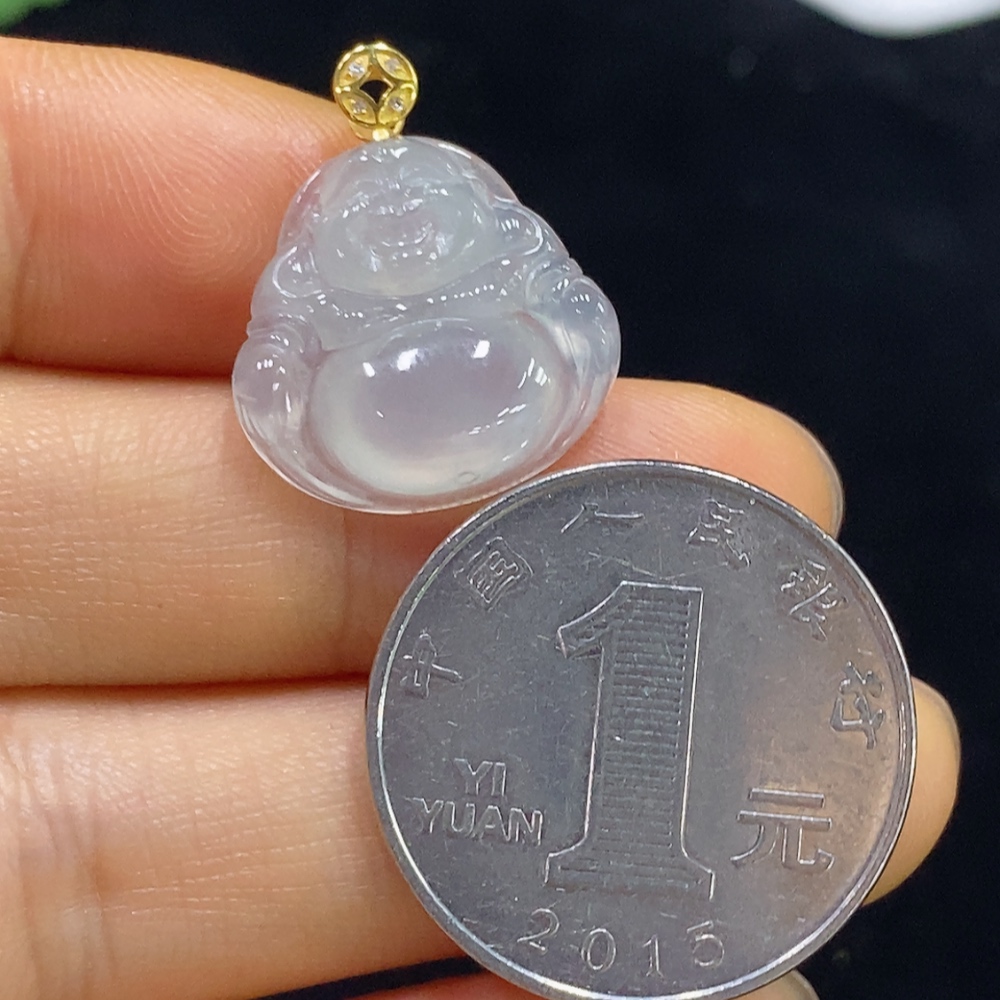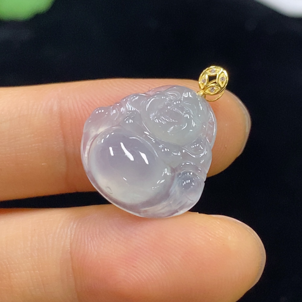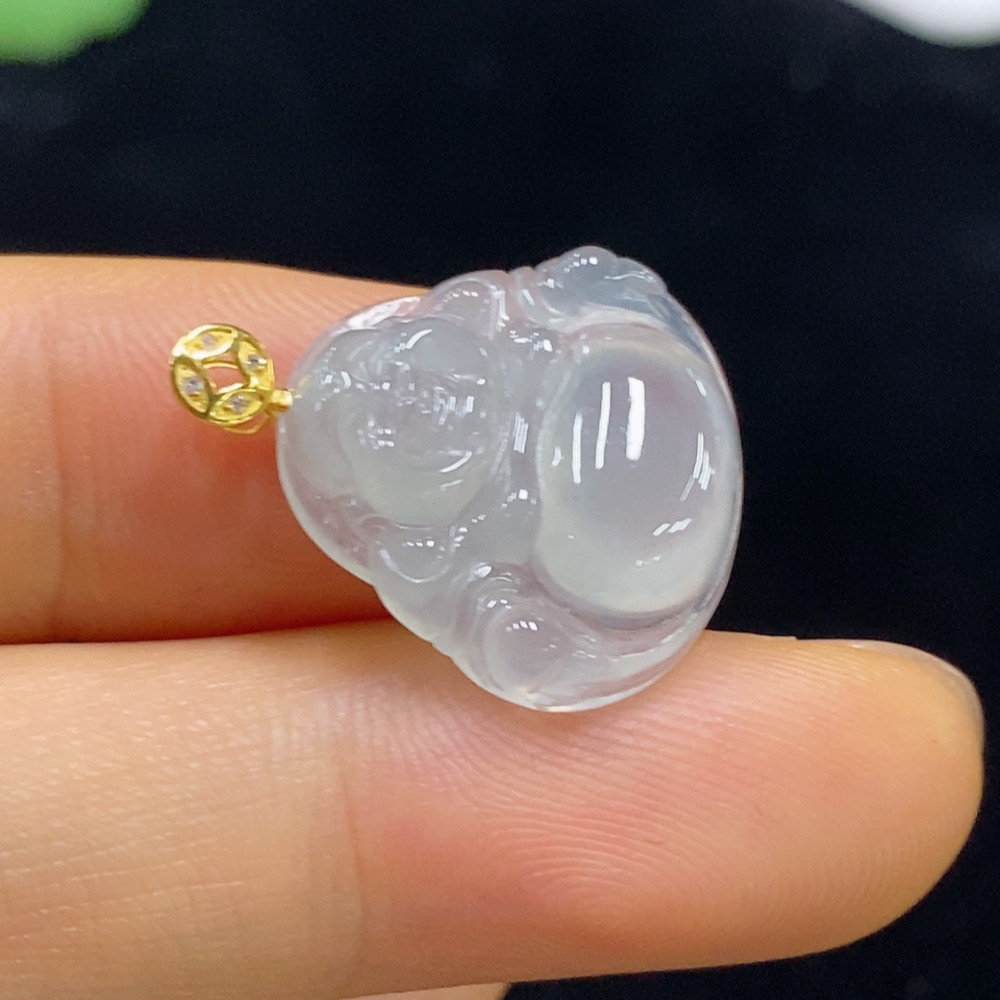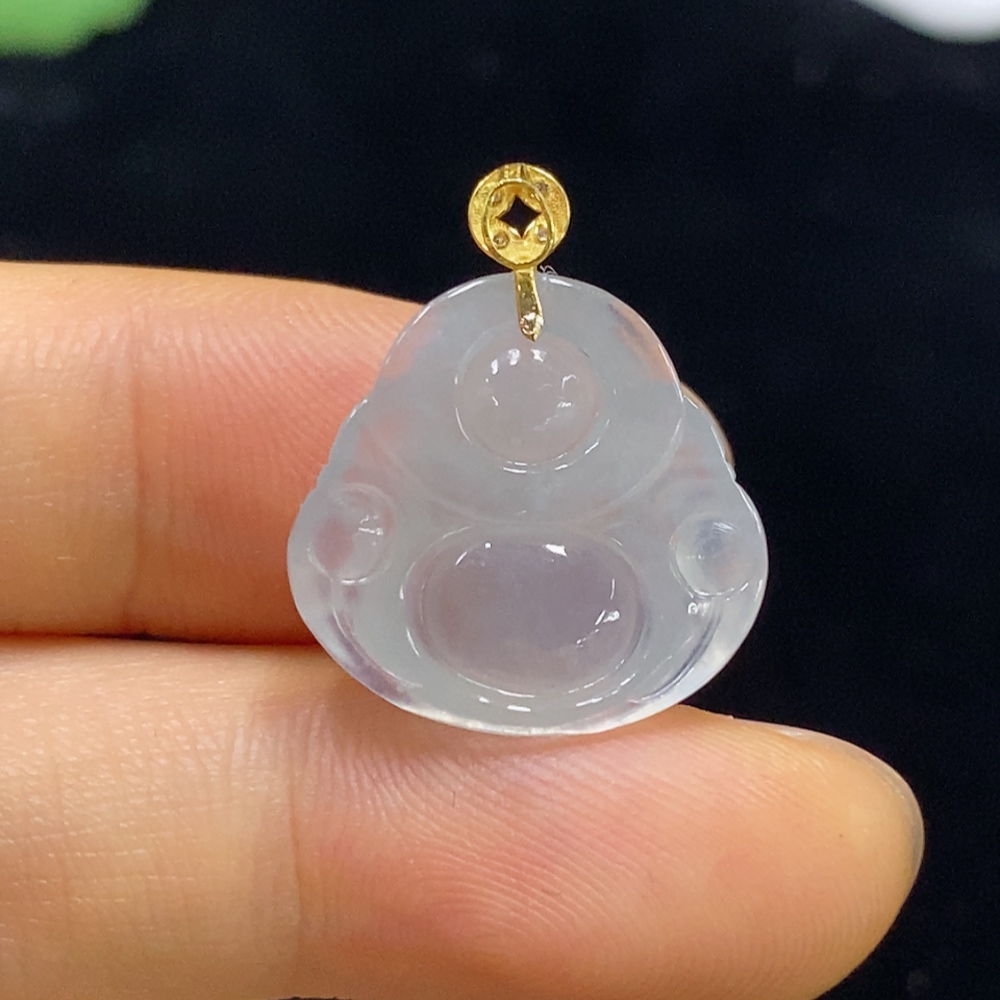 Jadeite Pendant Buddha 18k Gold Inlaid Total Weight Approx. 2.37g