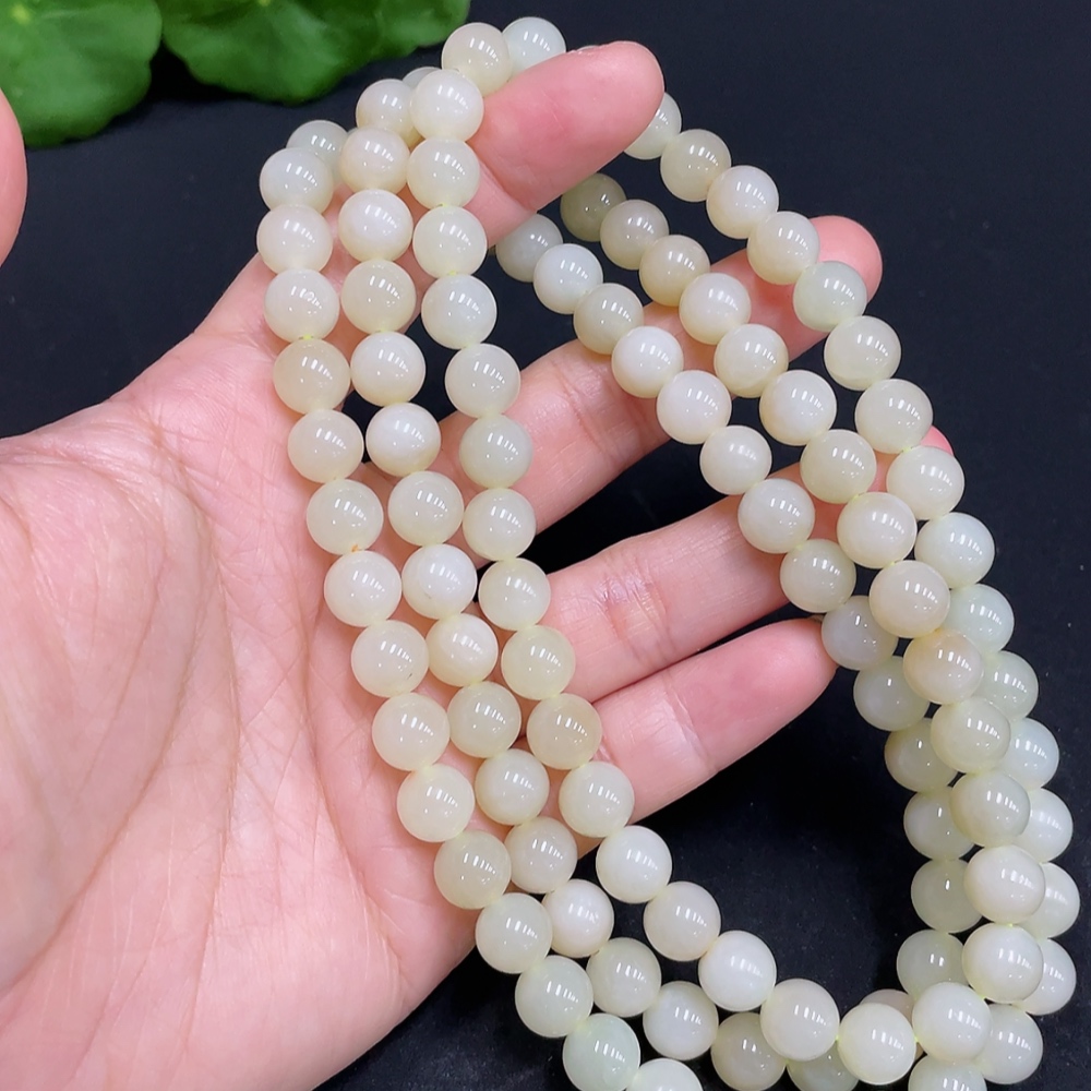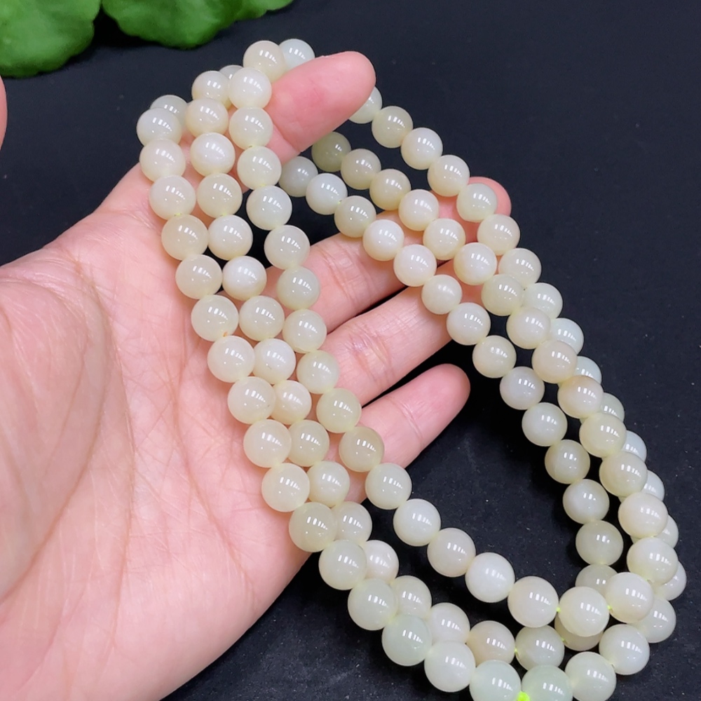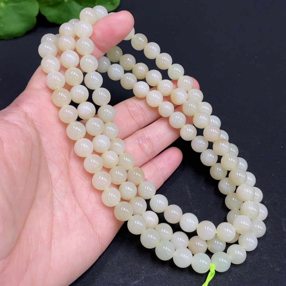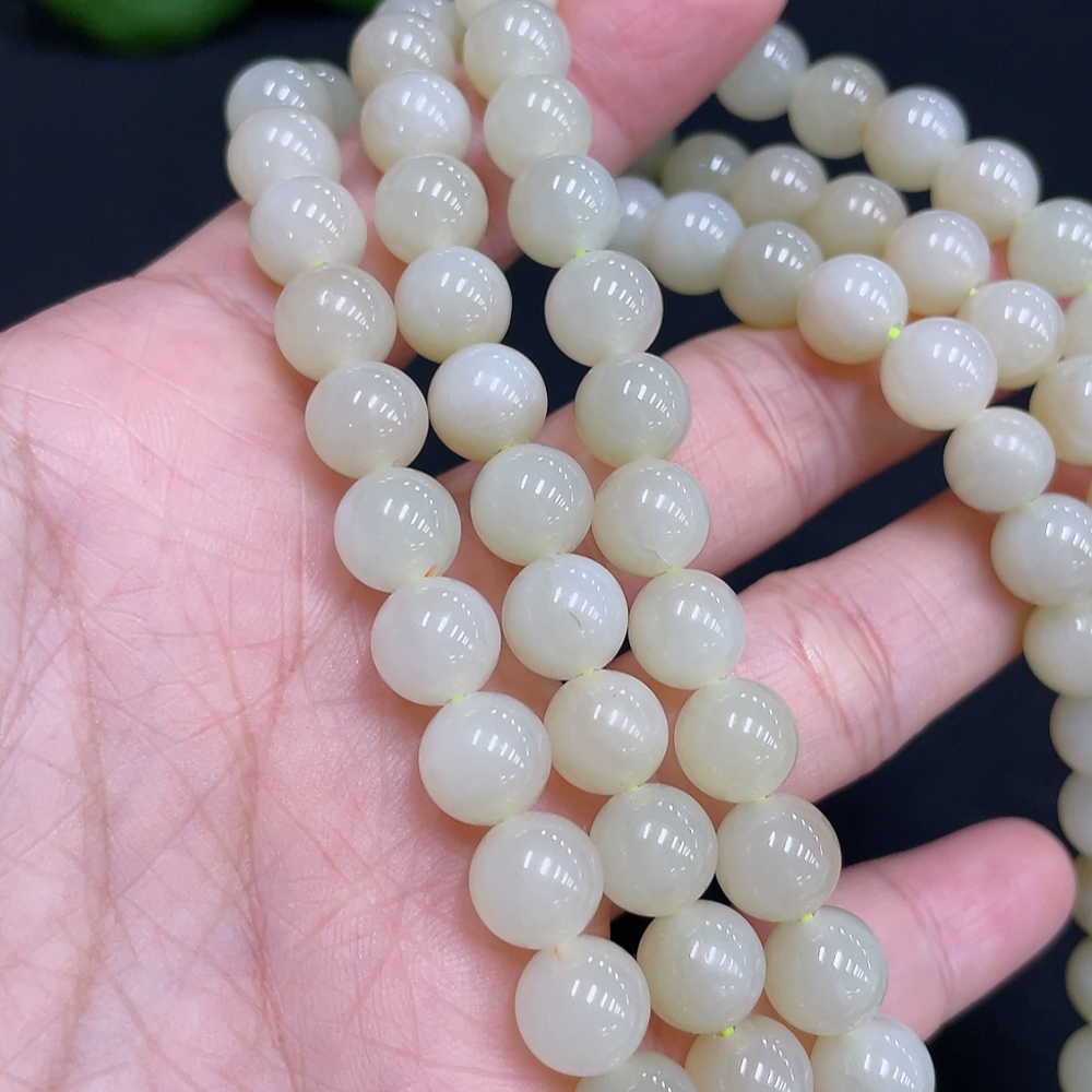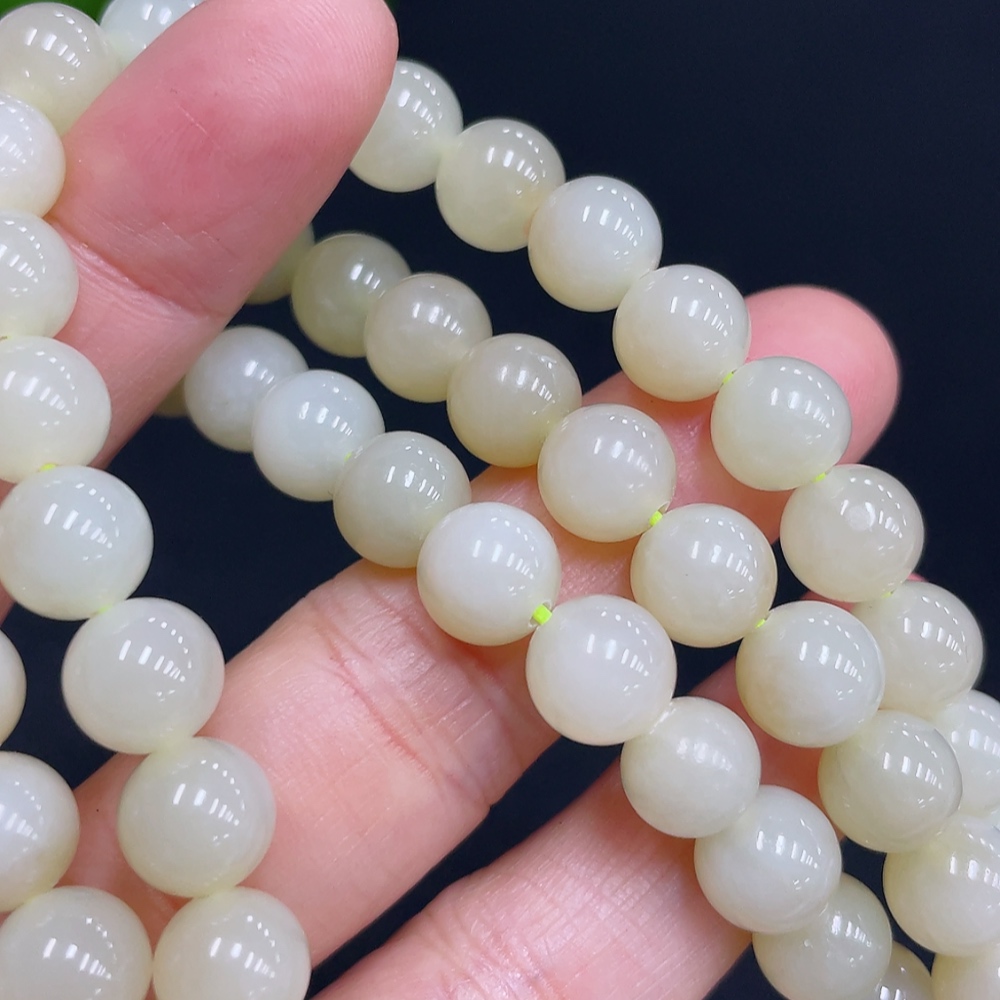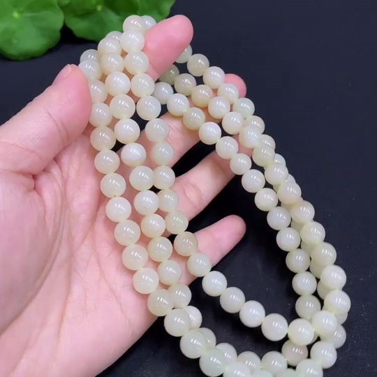 Hetian Jade Bead Necklace, Approx. 8mm, Total Weight Approx. 85.9g