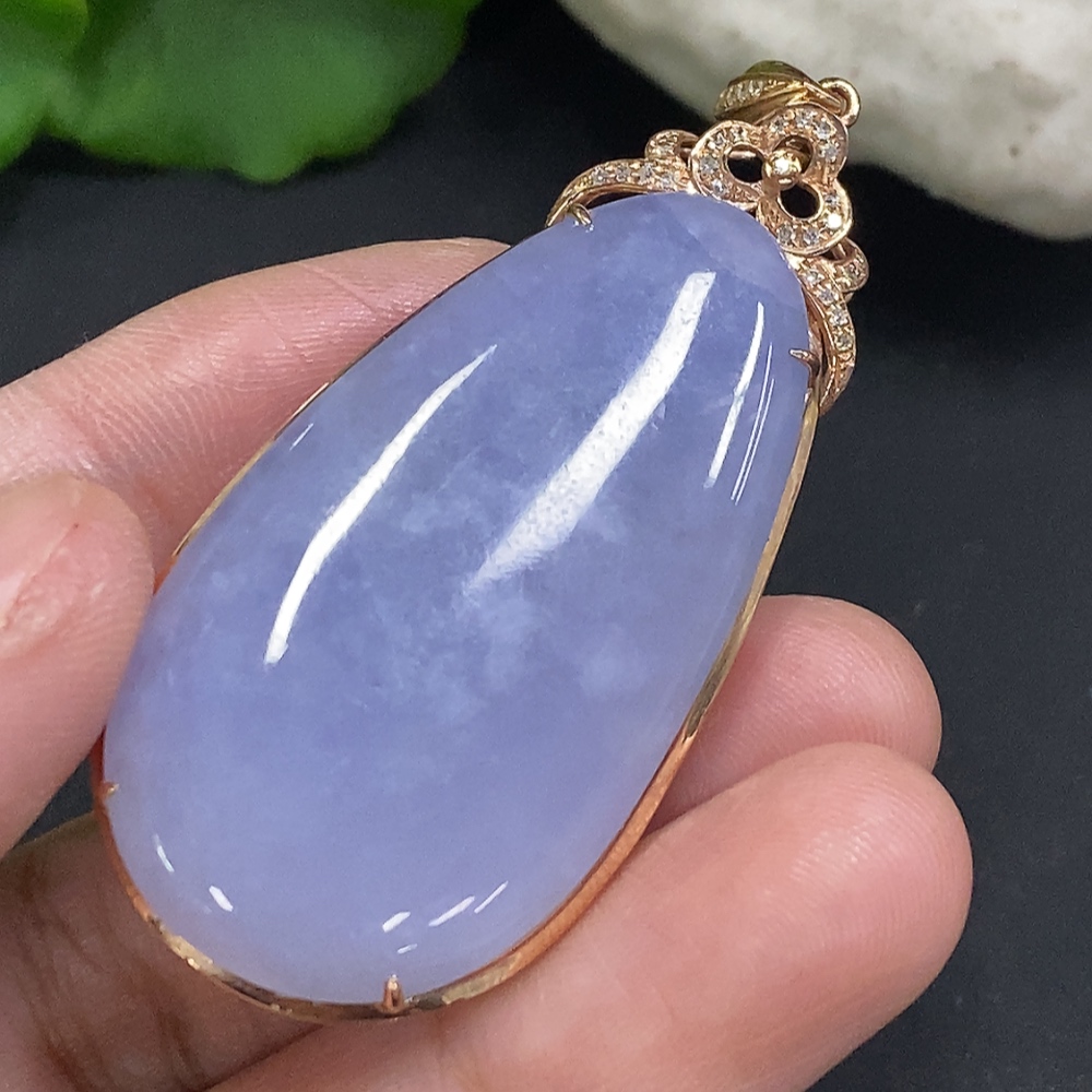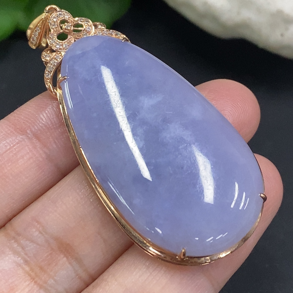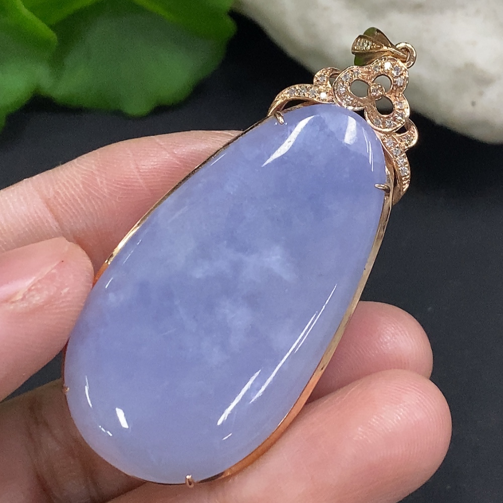 Jadeite Auspicious Gourd Pendant (No mark, clasp gold content Au75%, main body Au58%) Total weight approx. 11.1g (set with diamonds)