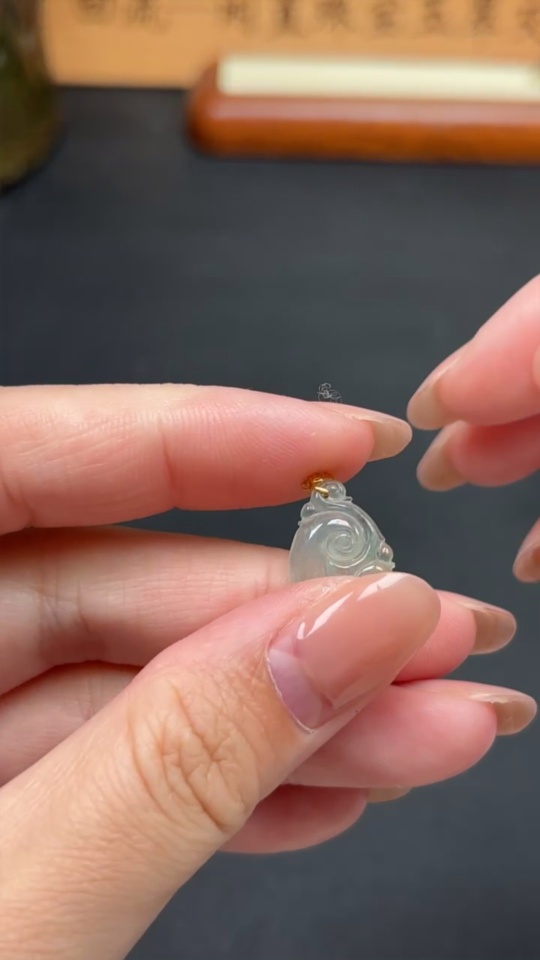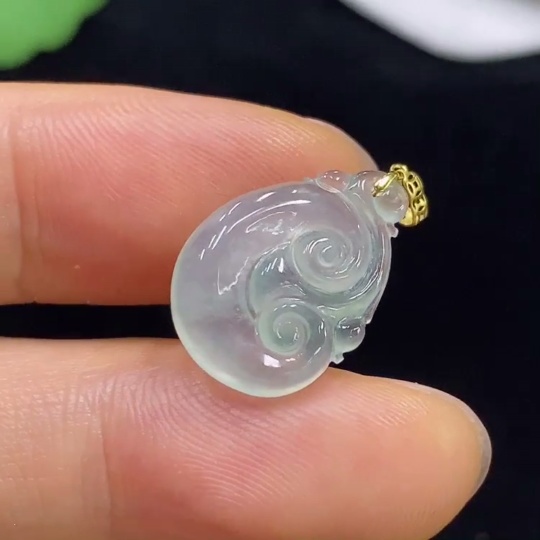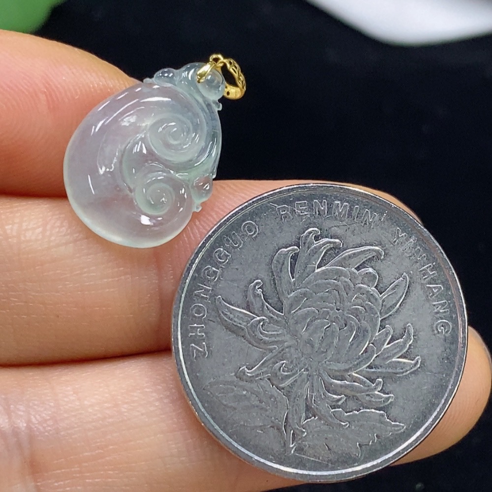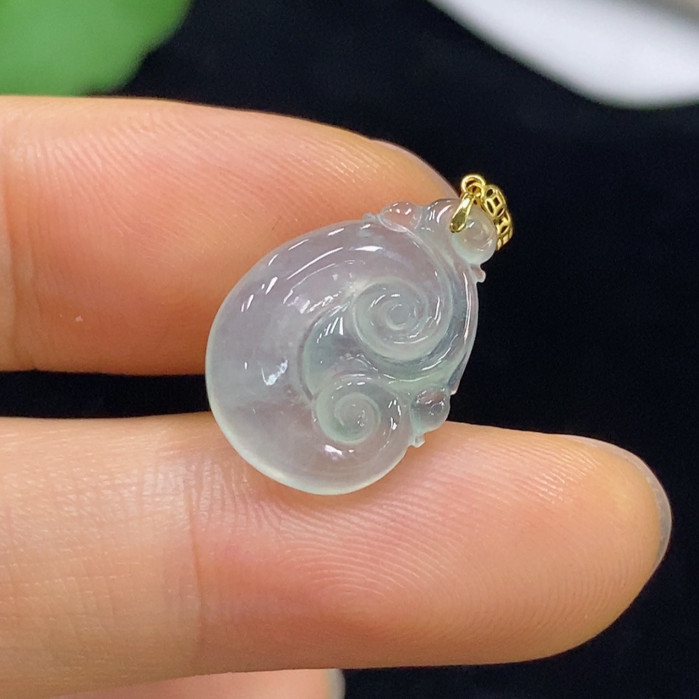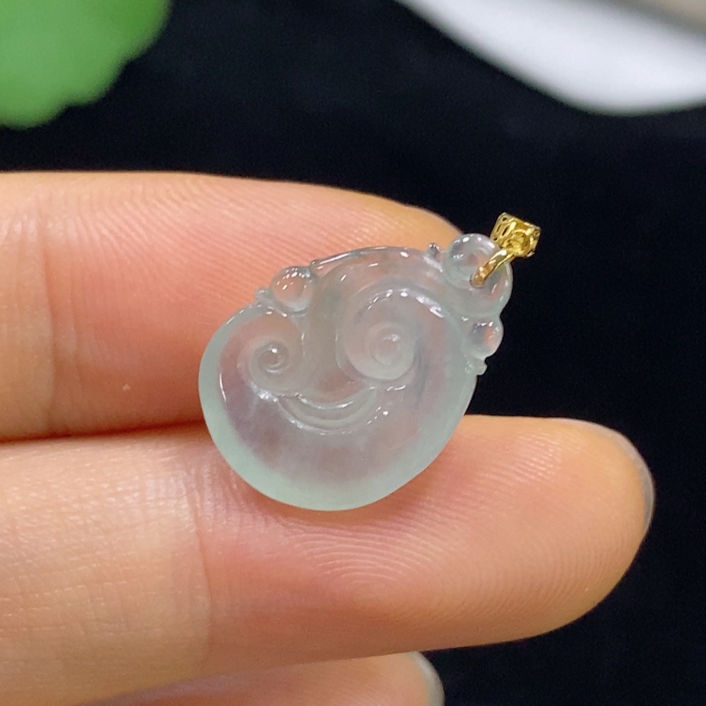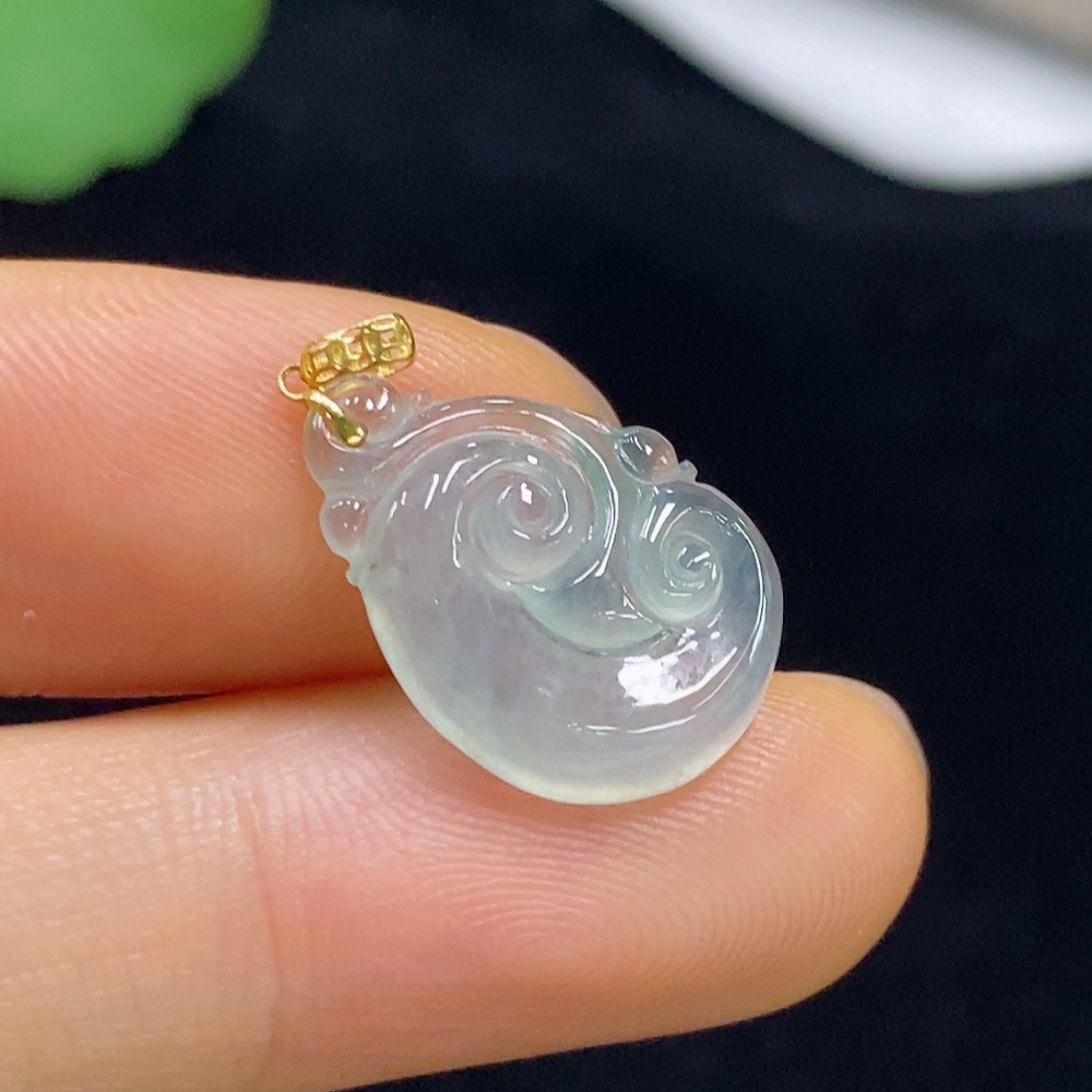 Jadeite Pendant Ruyi with 18k Bezel, Total Weight Approx. 1.31g