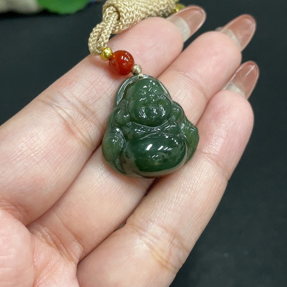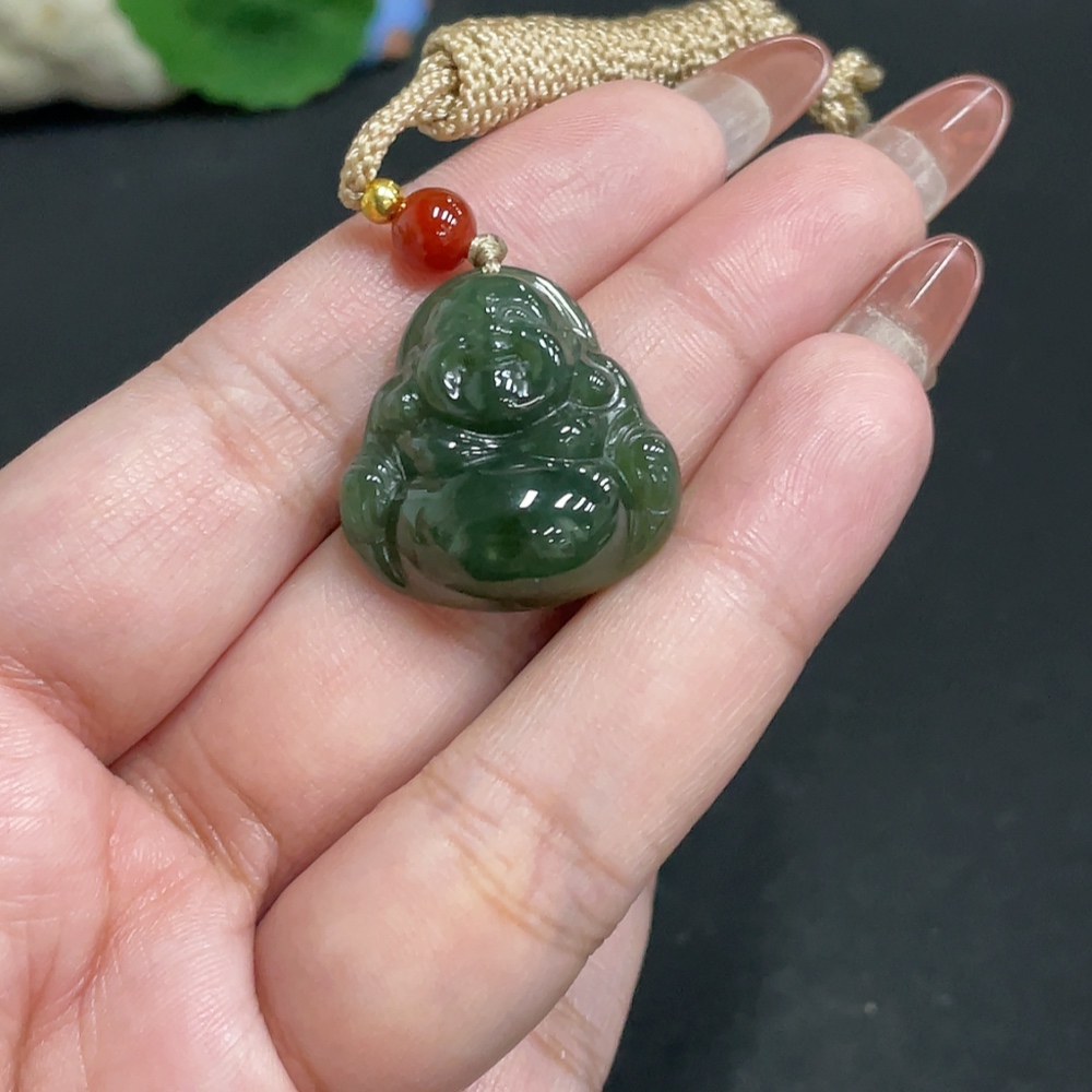 Hetian Jade Pendant Buddha Total Weight Approx. [with rope] 9.4g