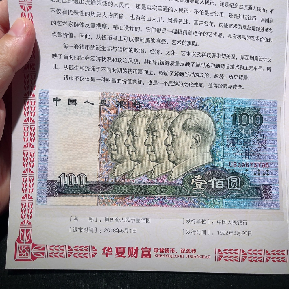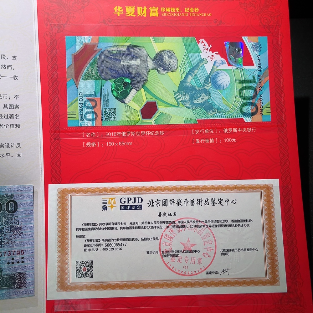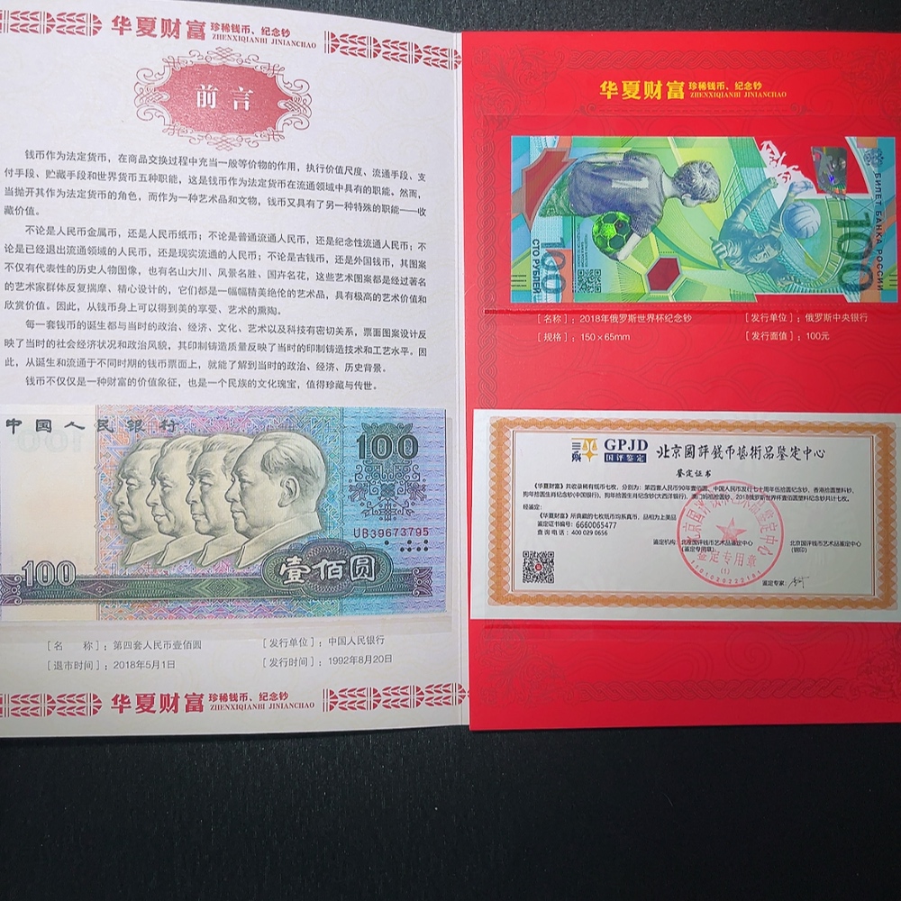 Fourth Series of RMB 90 Edition One Hundred Yuan Note and 2018 Russia World Cup Commemorative Note Two-Piece Graded Label Banknote Commemorative Album
