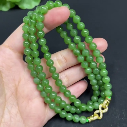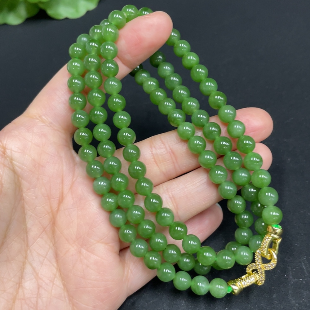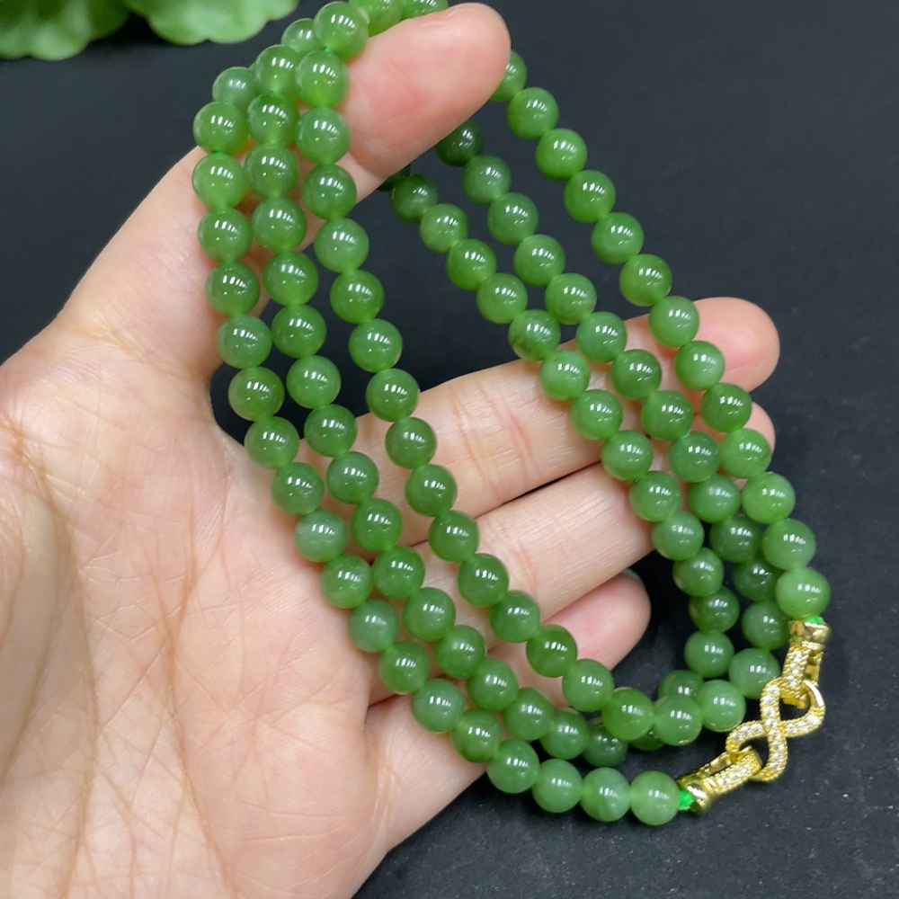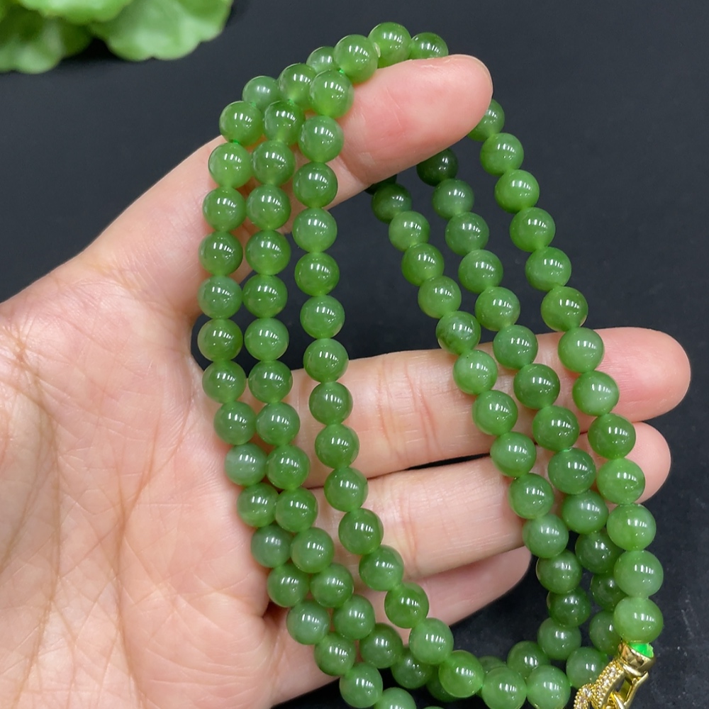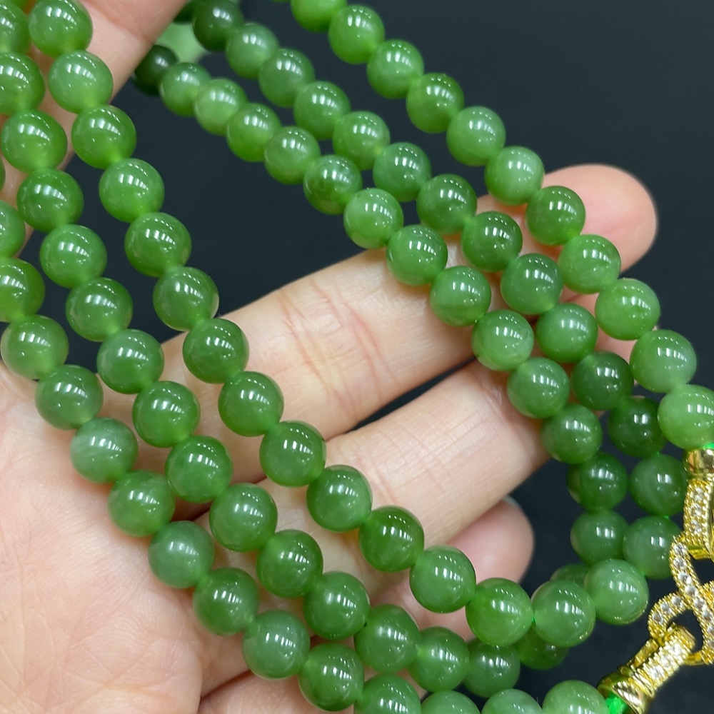 Hetian Jade Jasper Bead Necklace, Approx. 5.9mm, Non-Gold Inlaid, Total Weight Approx. 37.7g