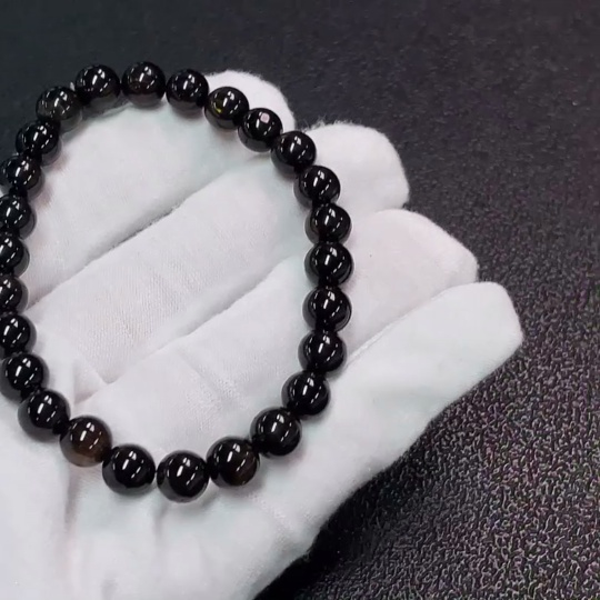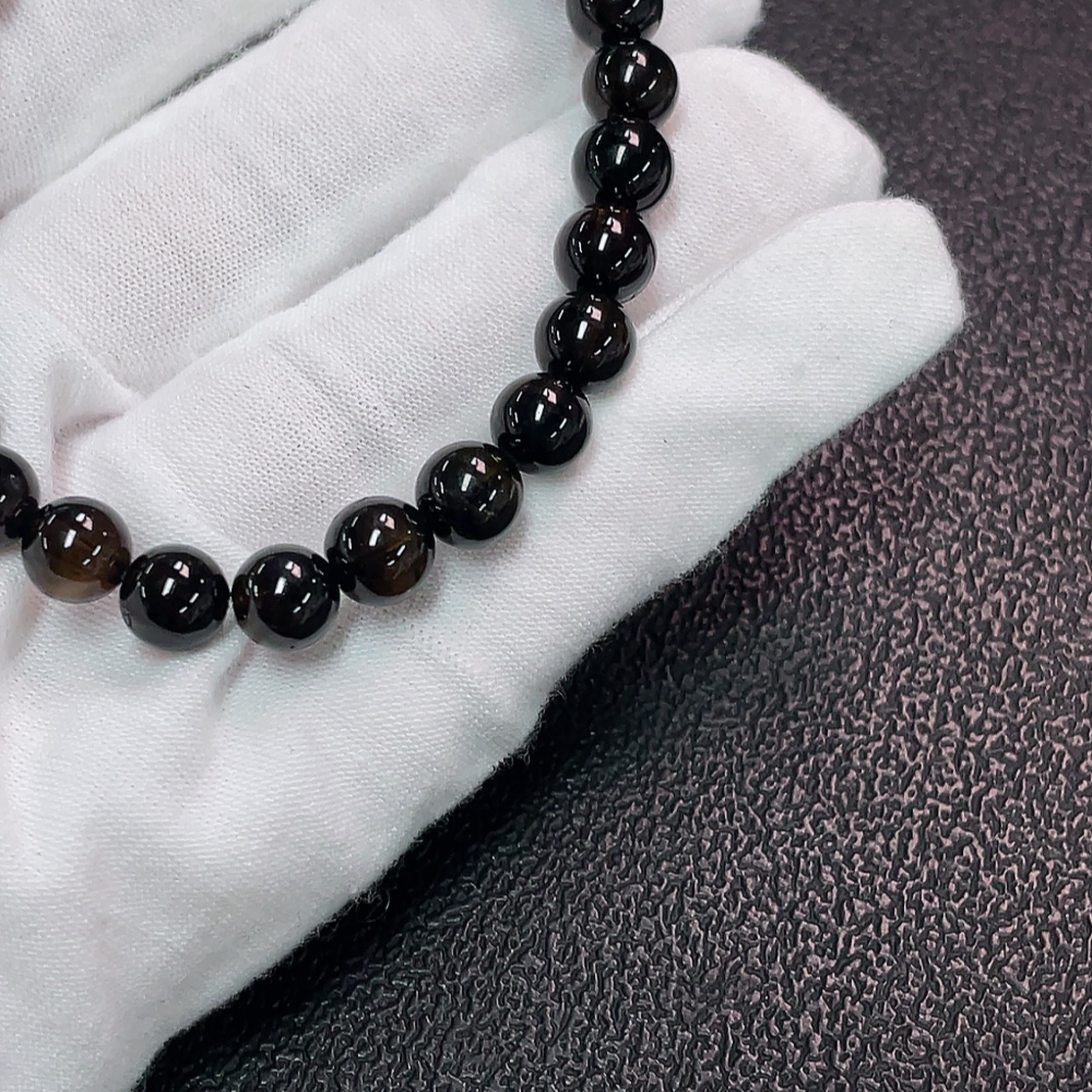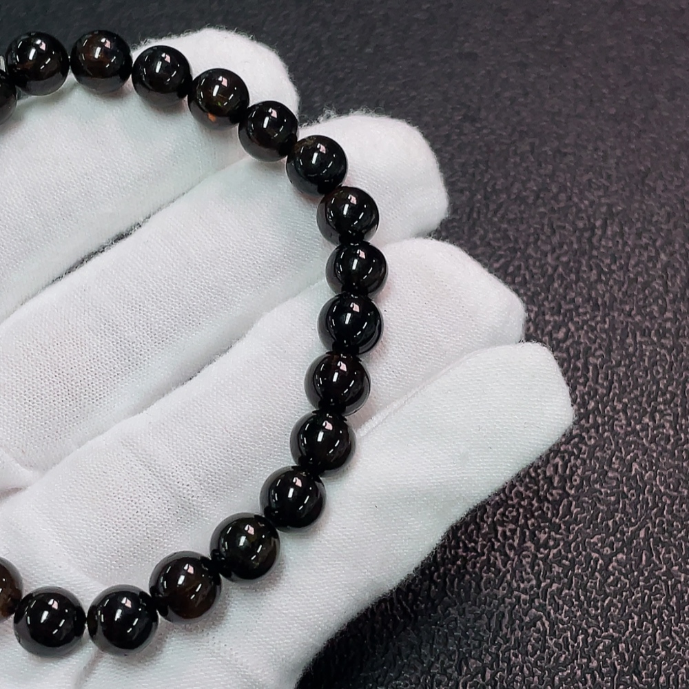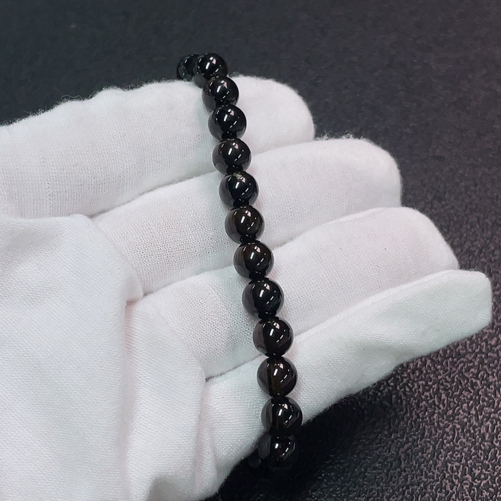 Tourmaline Bracelet with Visible Organic Matter, Total Weight Approx. 15.43g, Bead Size 7mm, Accent Stones May Be Non-Natural (Including Inclusions)