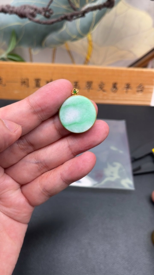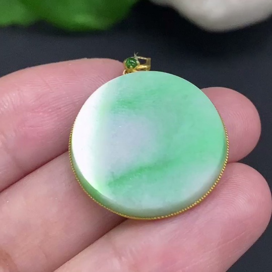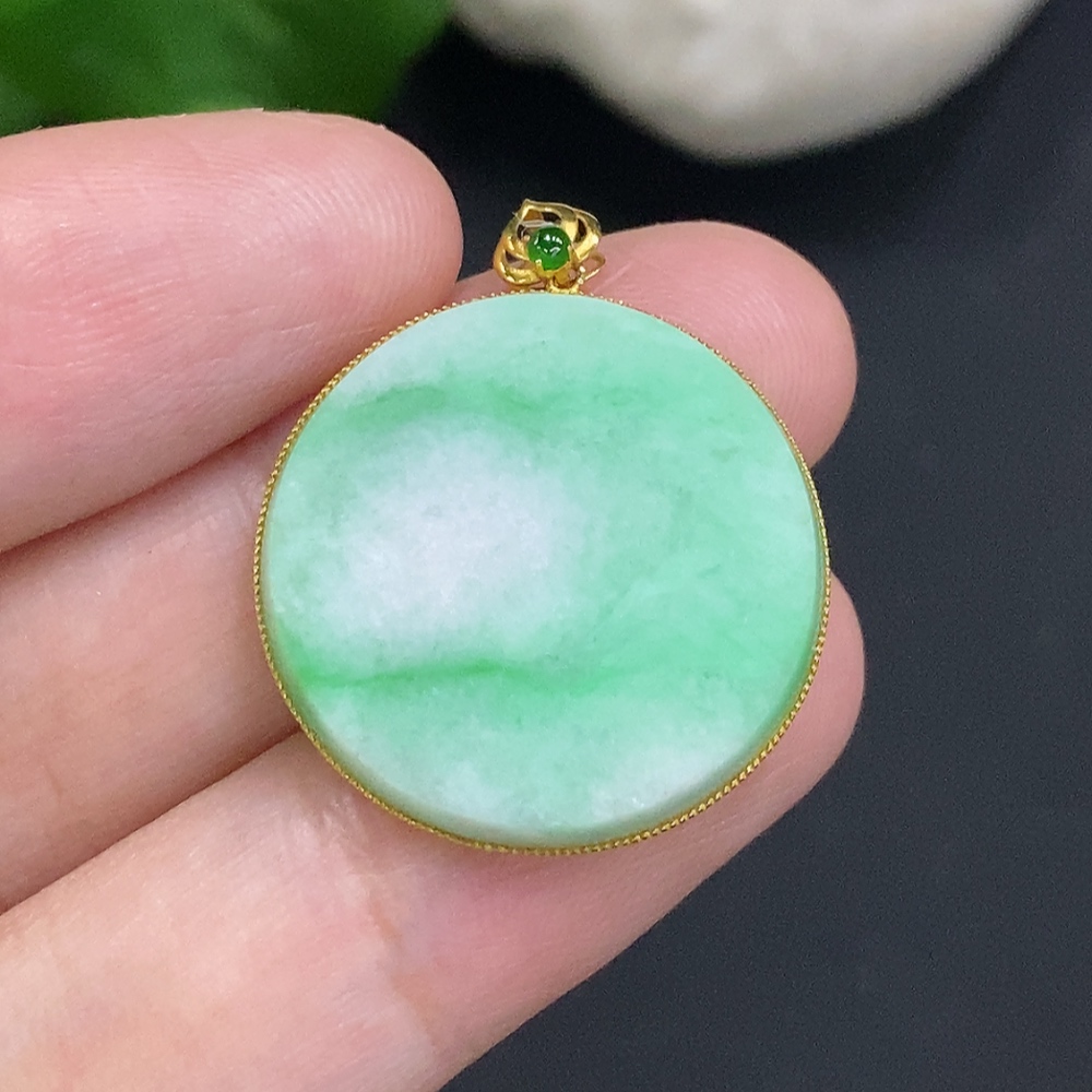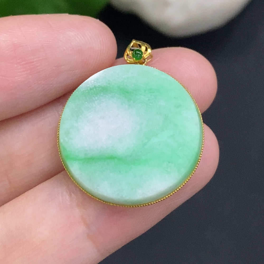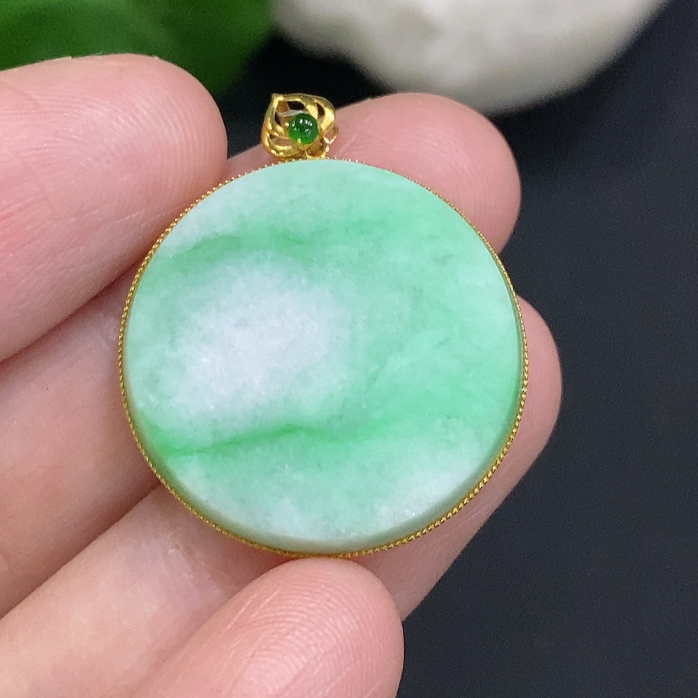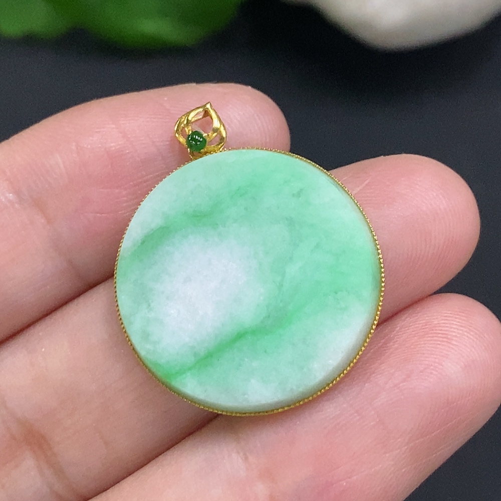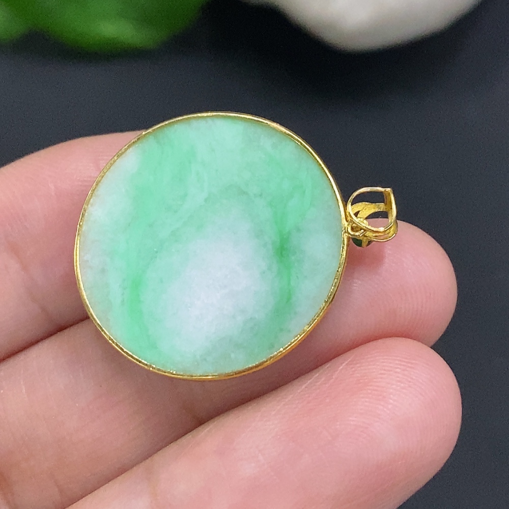 Jadeite Plain Pendant in 18K Gold, Total Weight Approx. 3.6g