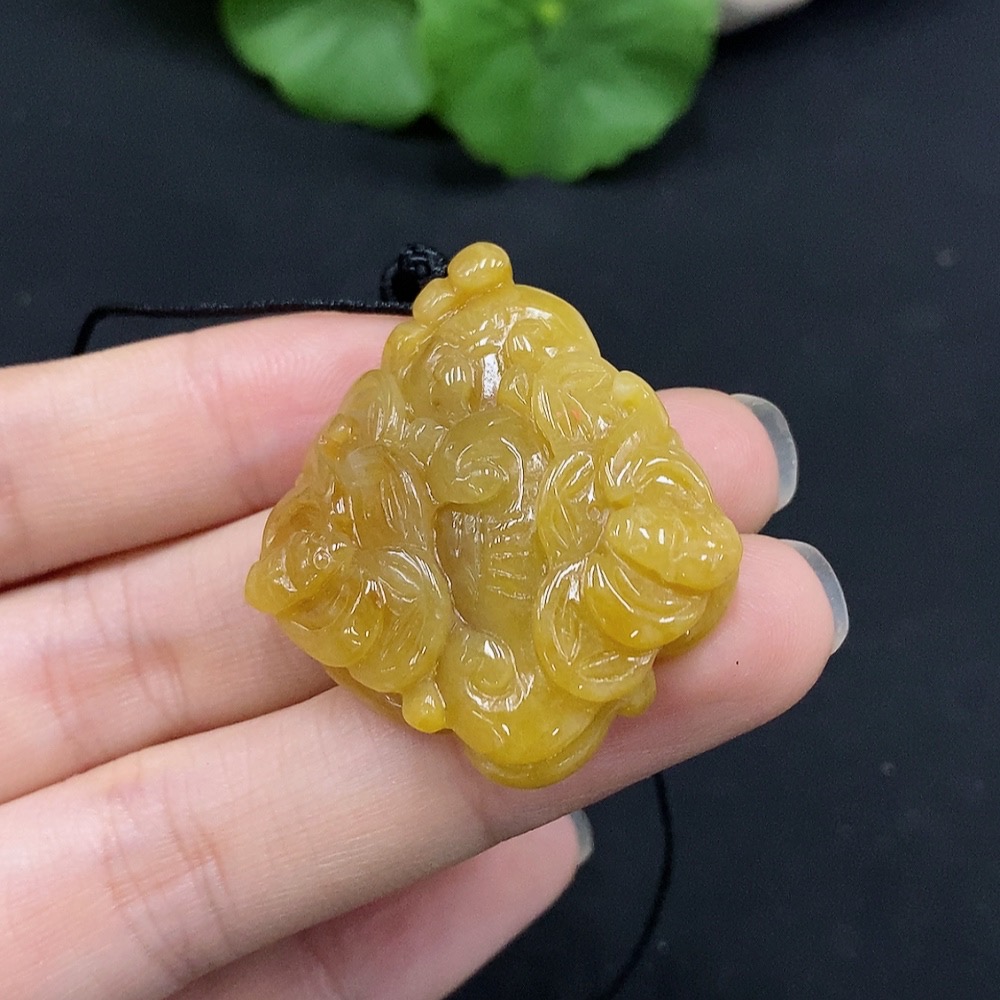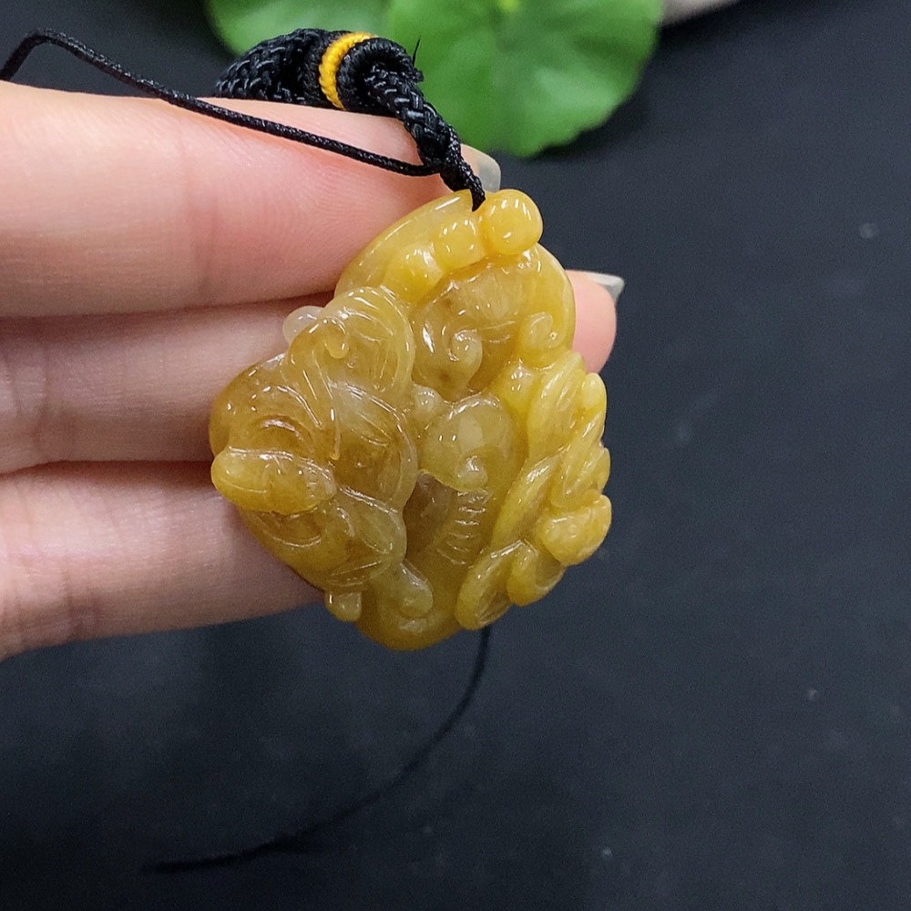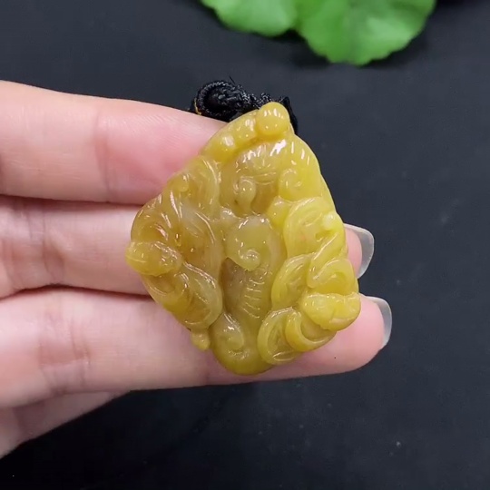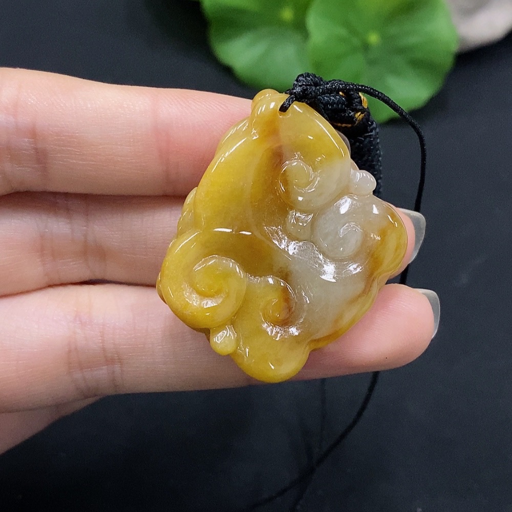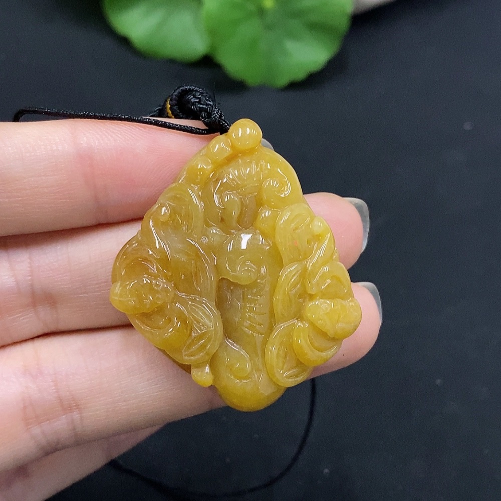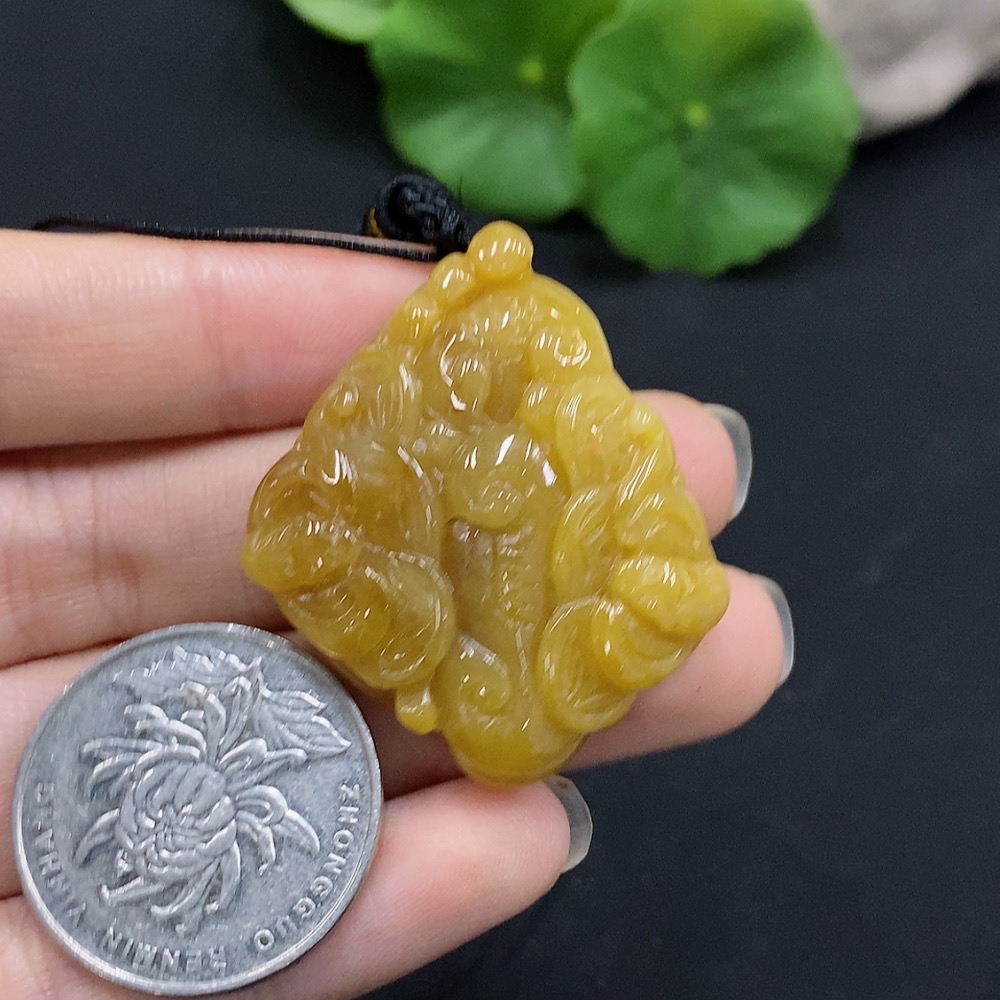 Jadeite Pendant with Bat and Coin Design, Total Weight Approximately 17.97g, Color Origin Undetermined