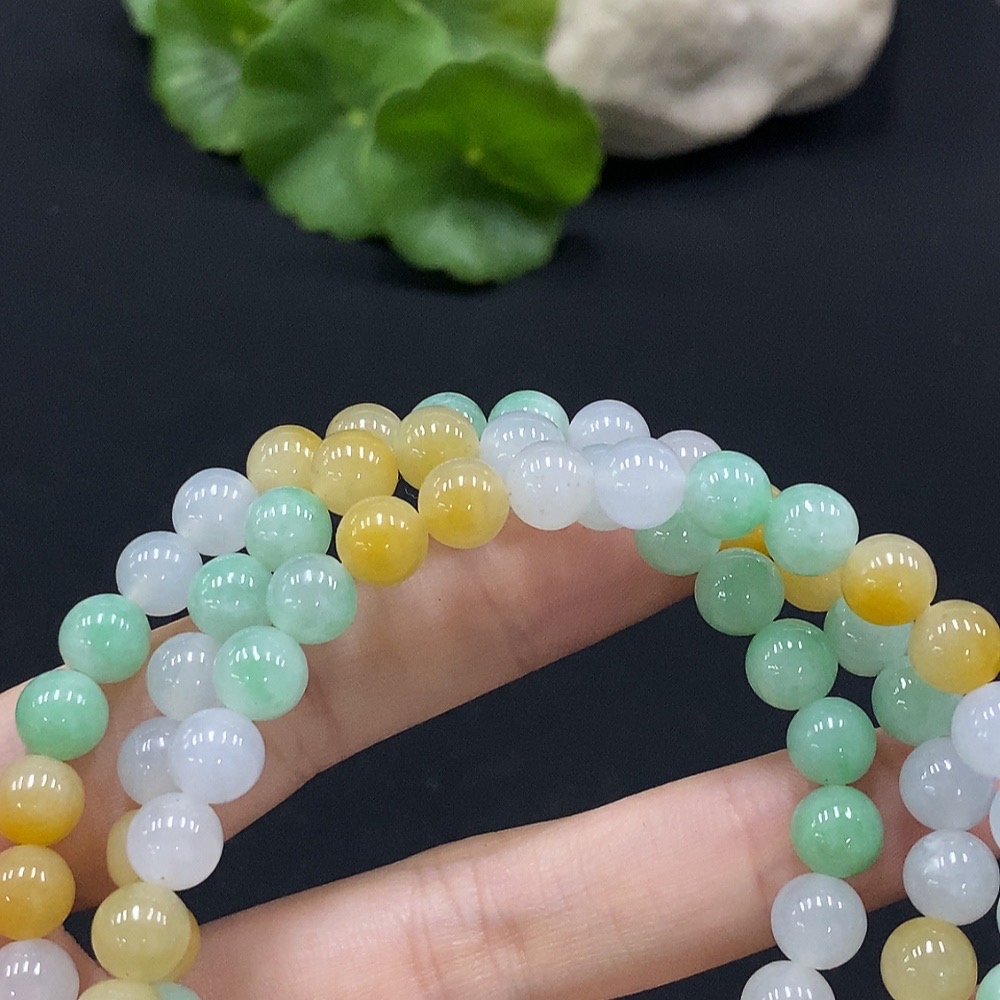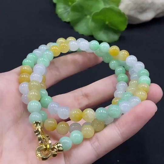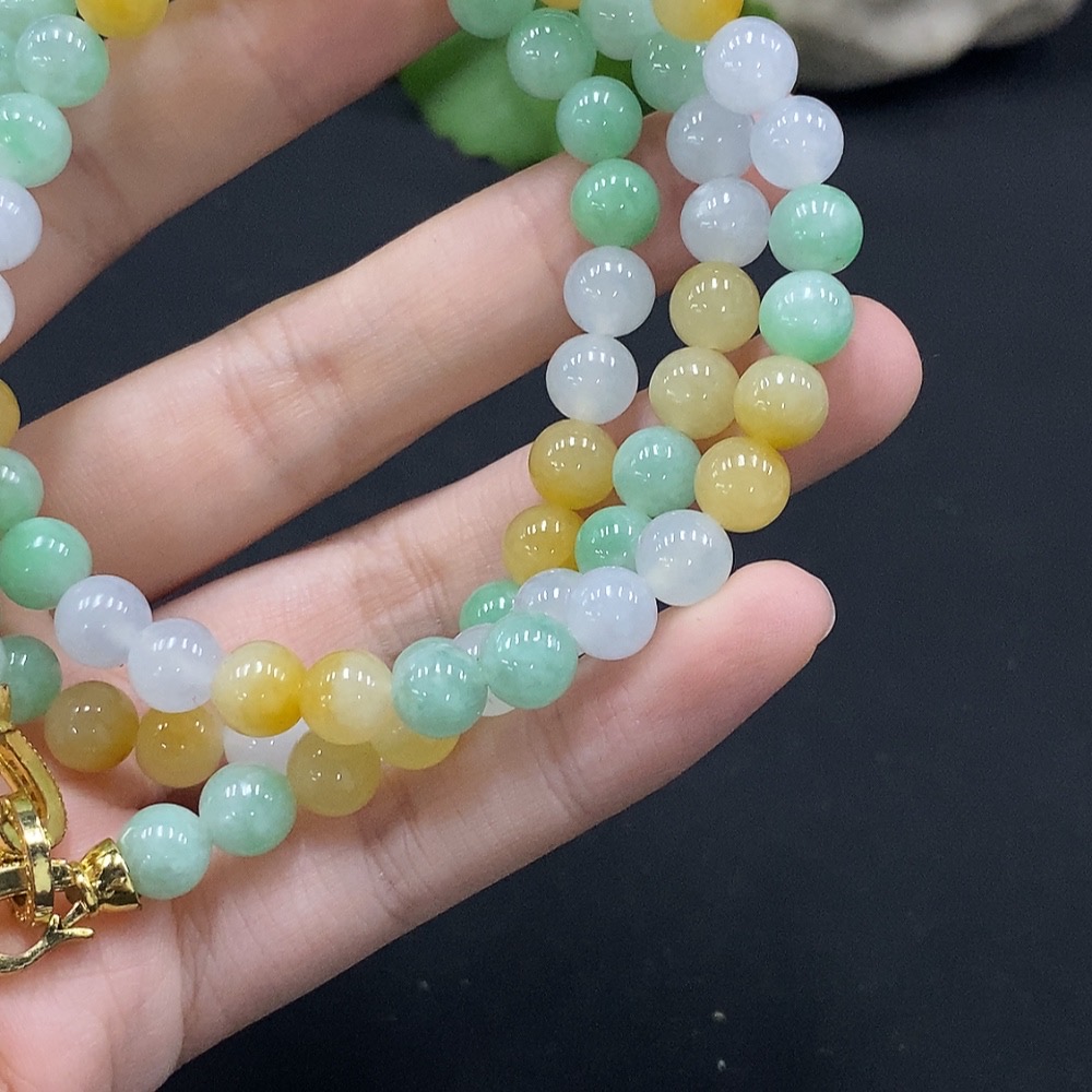 Jadeite Bead Necklace Approx. 6.8mm Total Weight Approx. 56.6g (Non-Gold Inlaid)