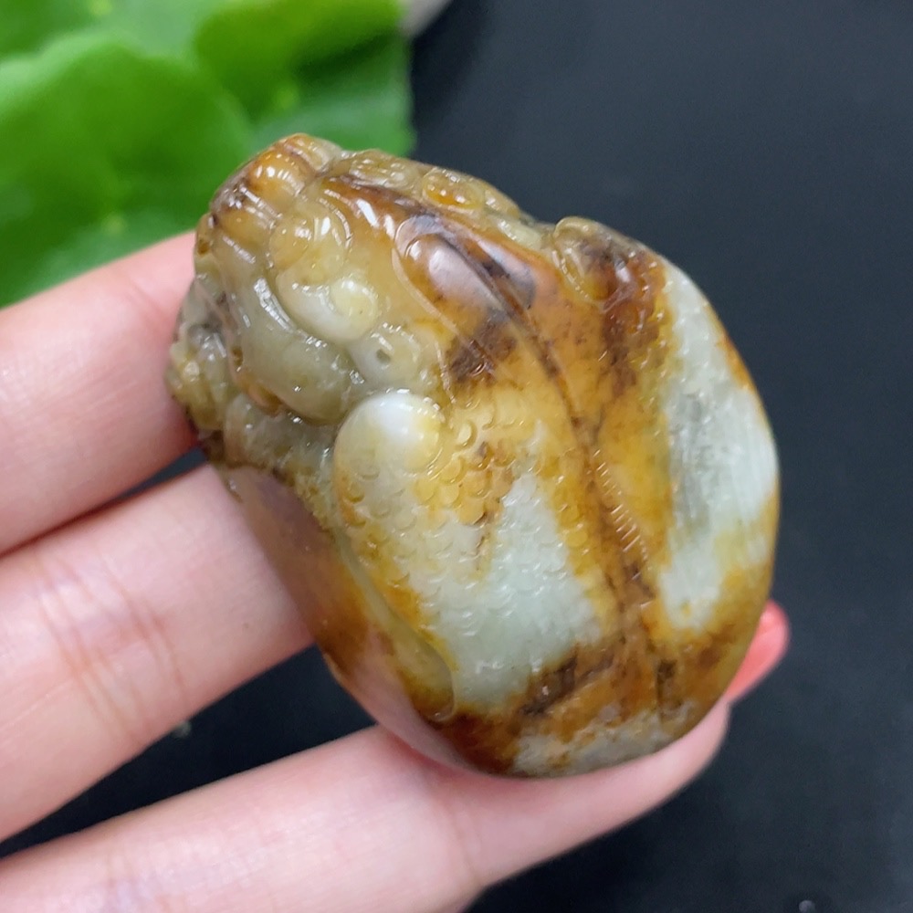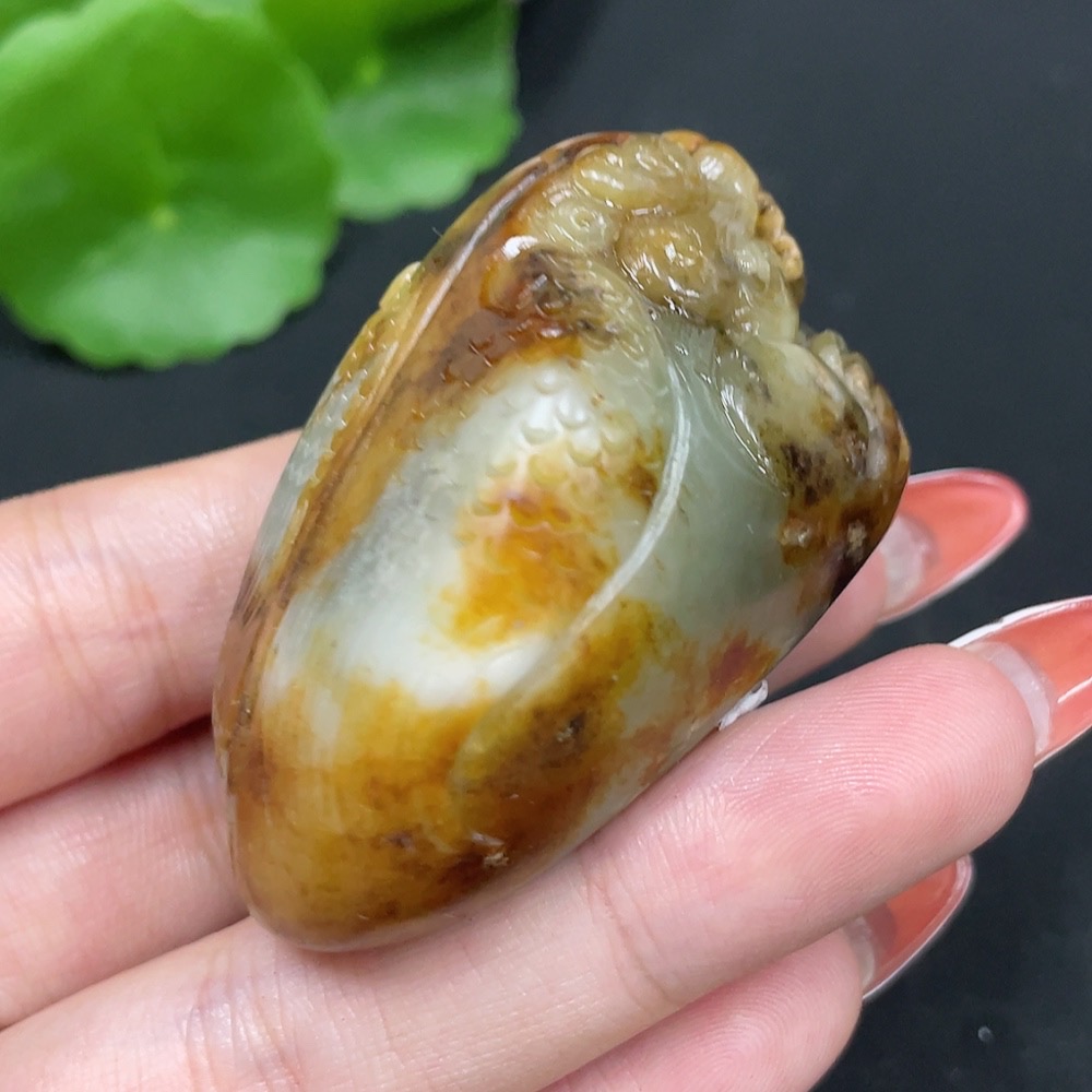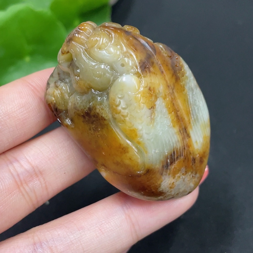 Hetian Jade Seed Material Pendant, Auspicious Beast, Undetermined Skin Color Origin, Contains Other Mineral Components, Total Weight Approximately 84.9g