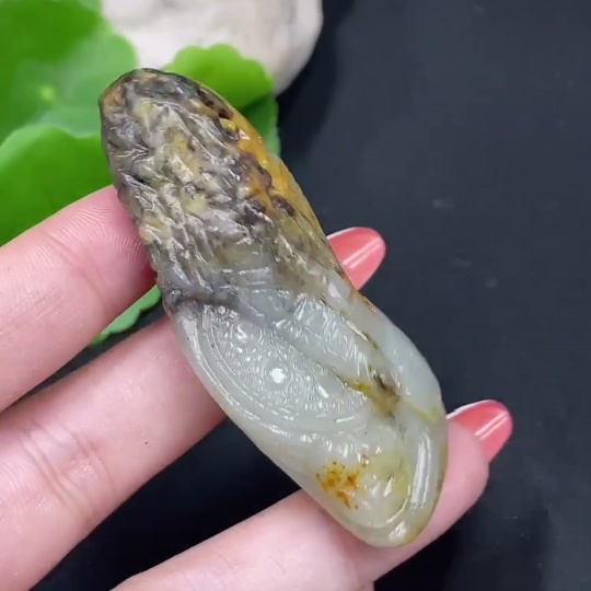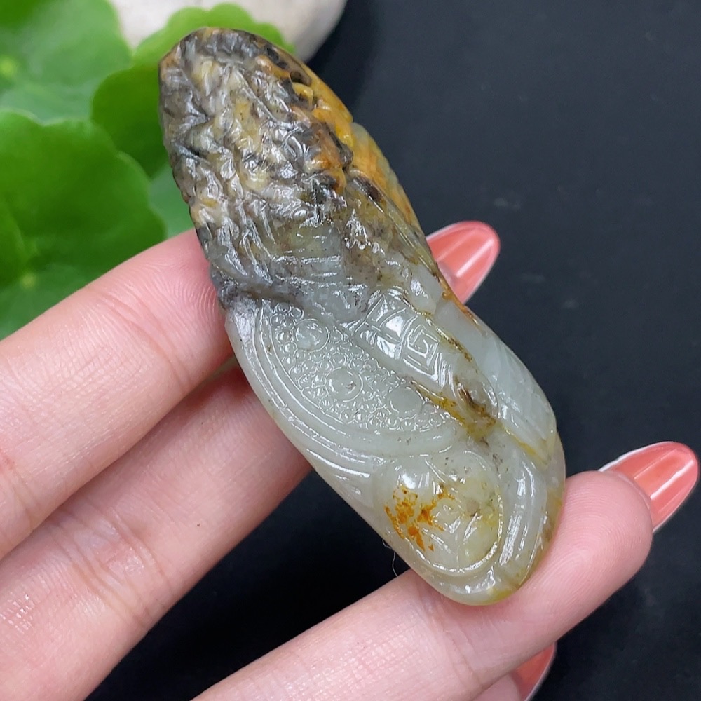Hetian Jade Seed Material Pendant, Antique-style Piece, Undetermined Skin Color Origin, Contains Other Mineral Components, Total Weight Approximately 44.1g