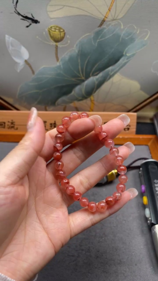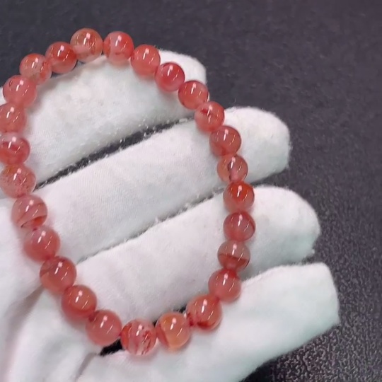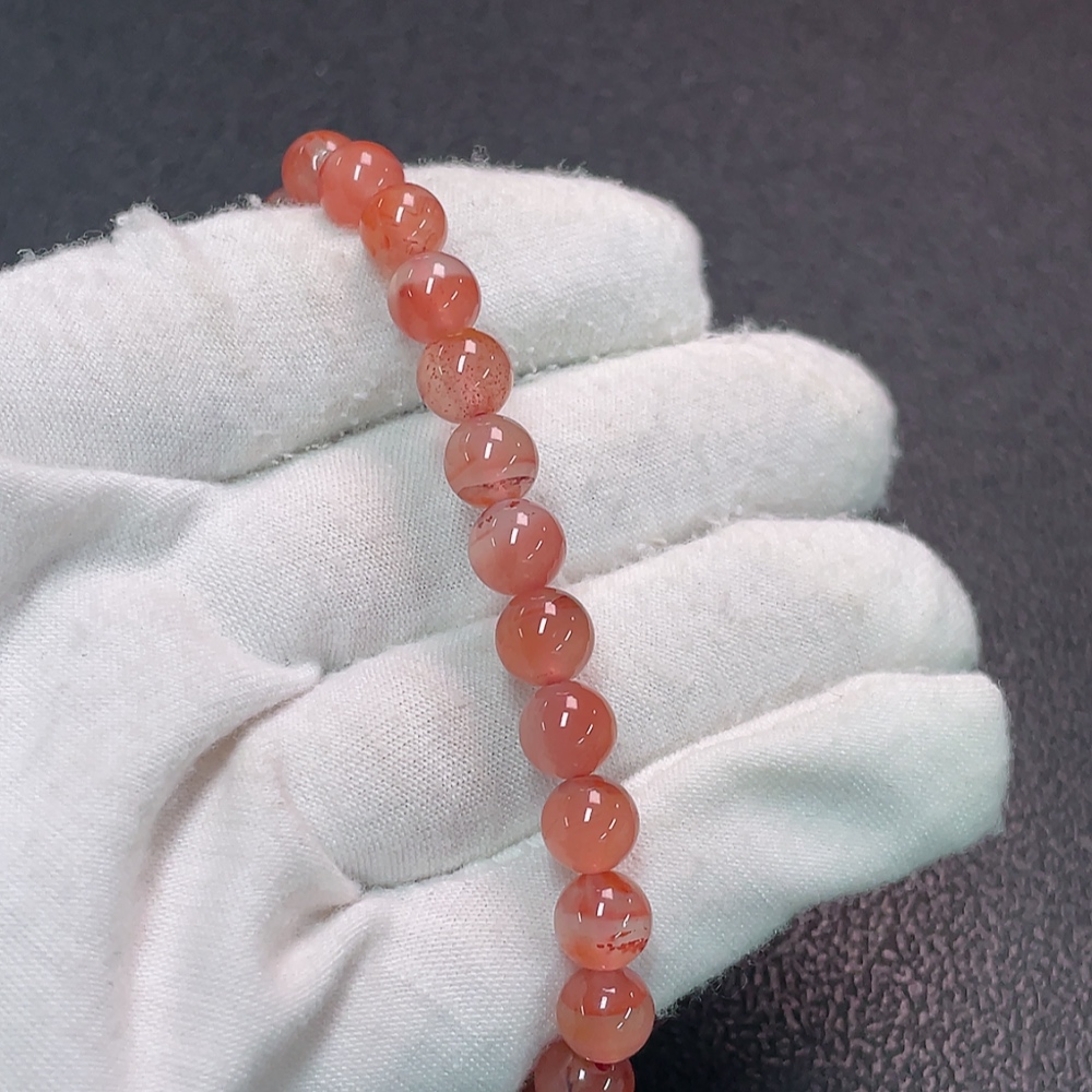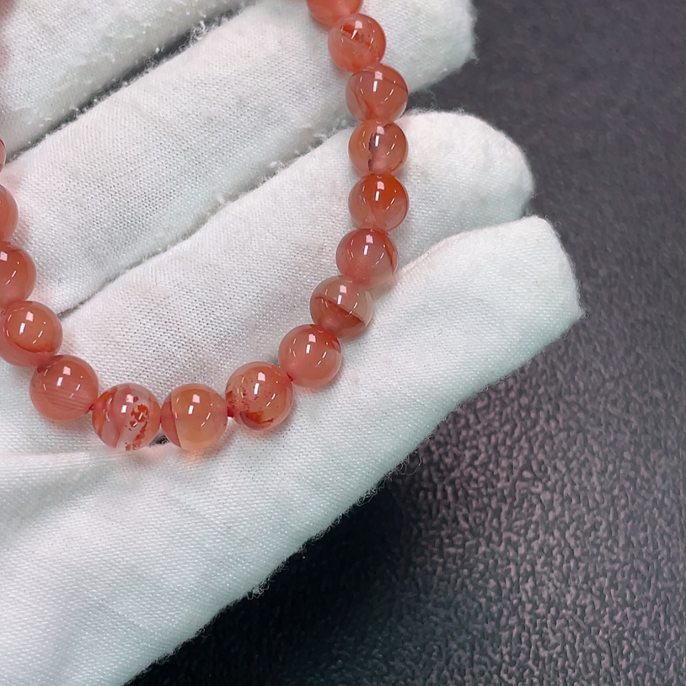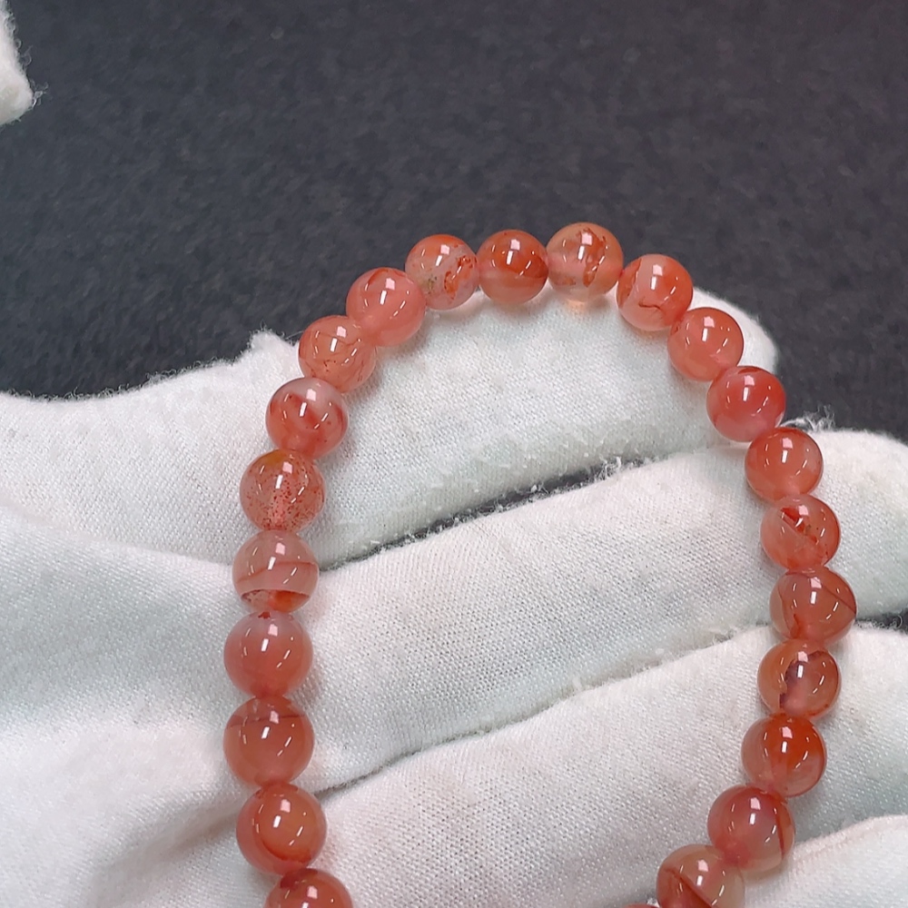 Red Agate Bracelet with Visible Organic Matter, Total Weight Approx. 12.81g, Size About 7.2mm