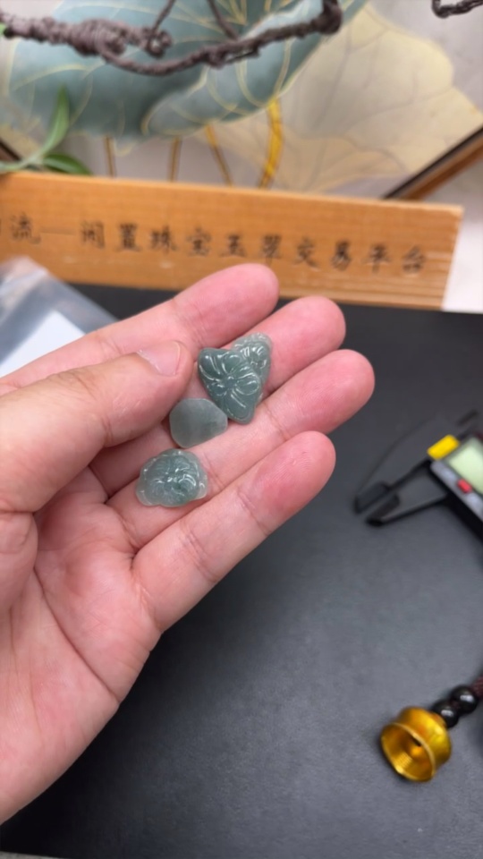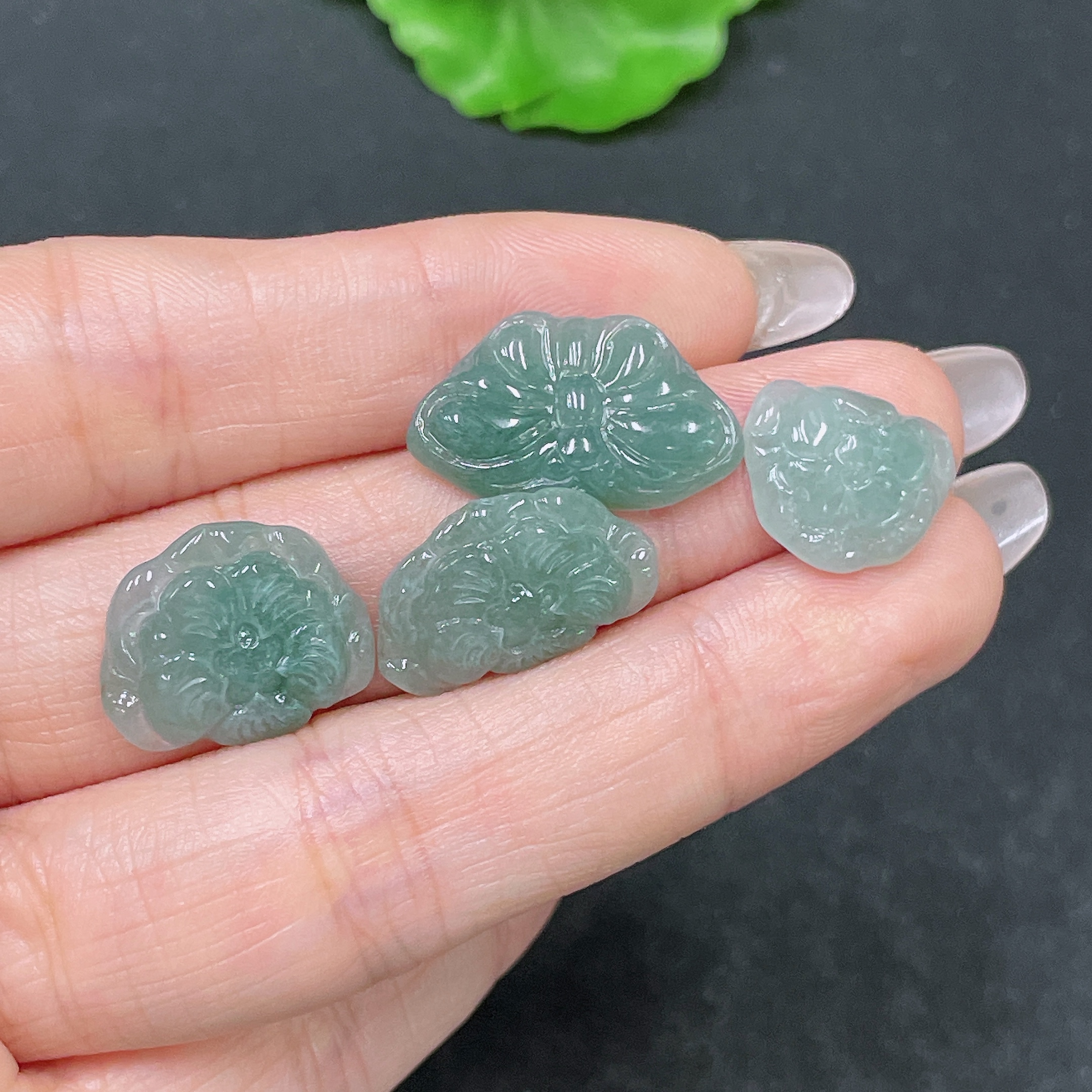Jadeite Lotus/Butterfly Inlaid Pieces Sell as a Lot