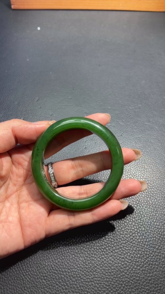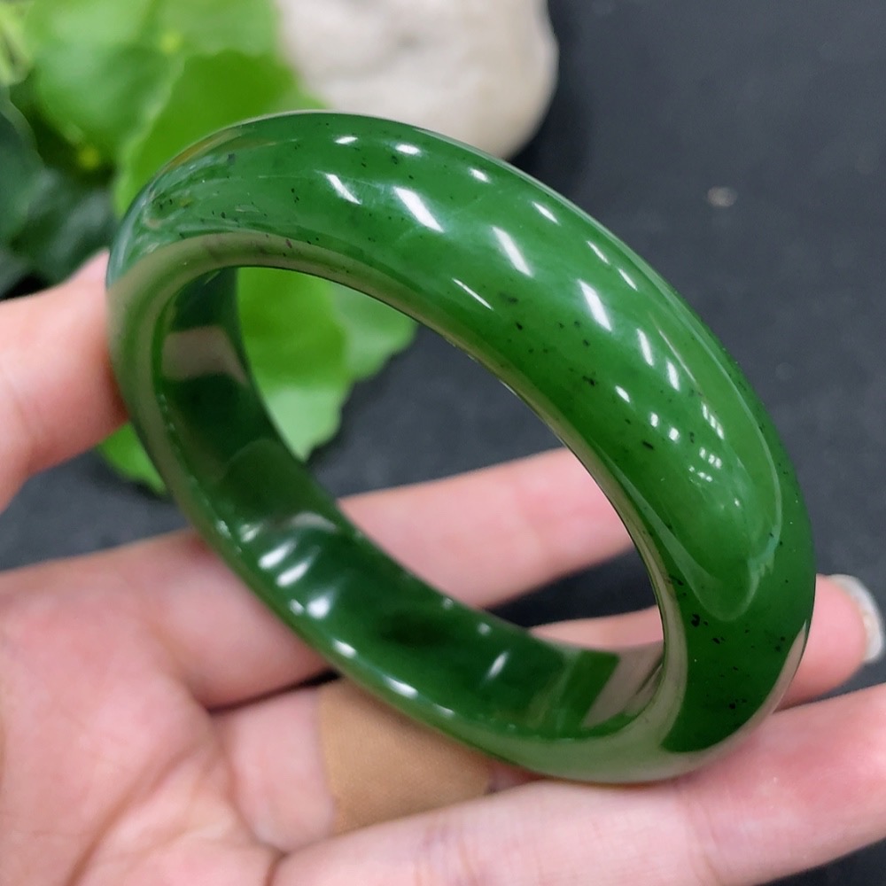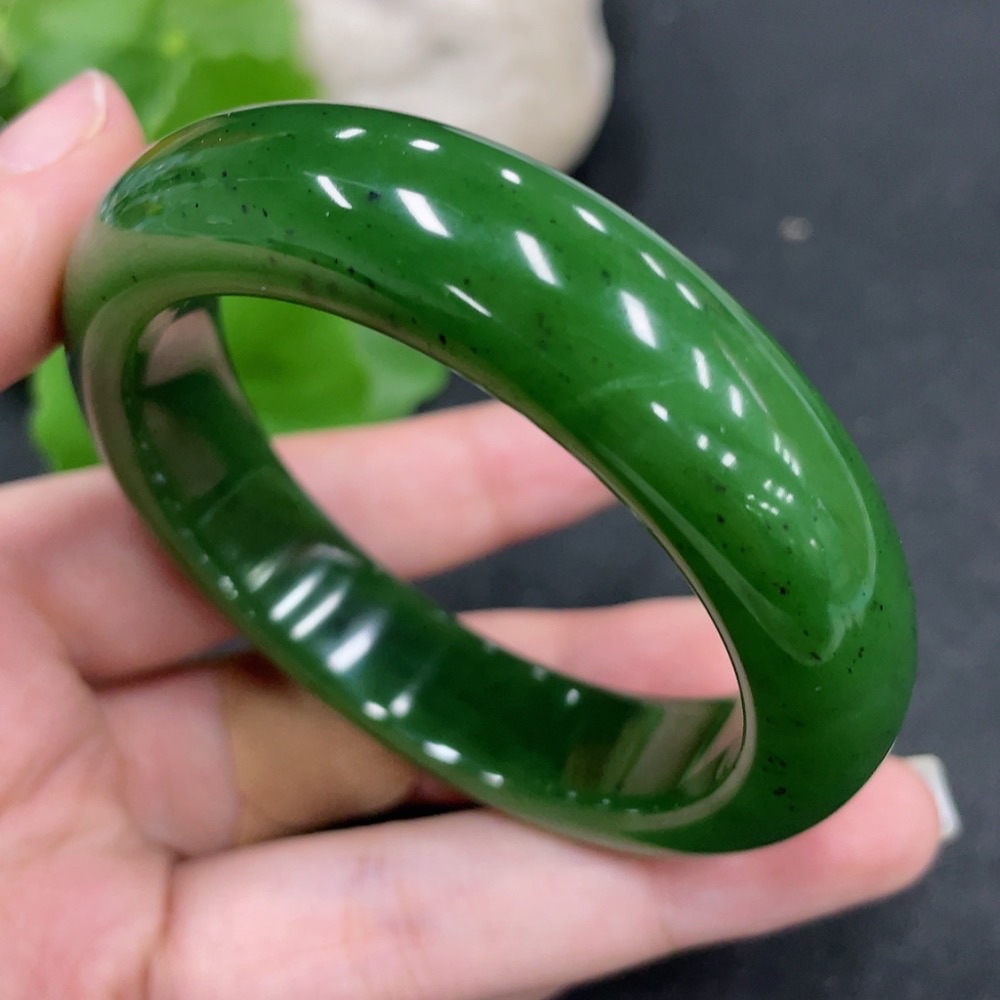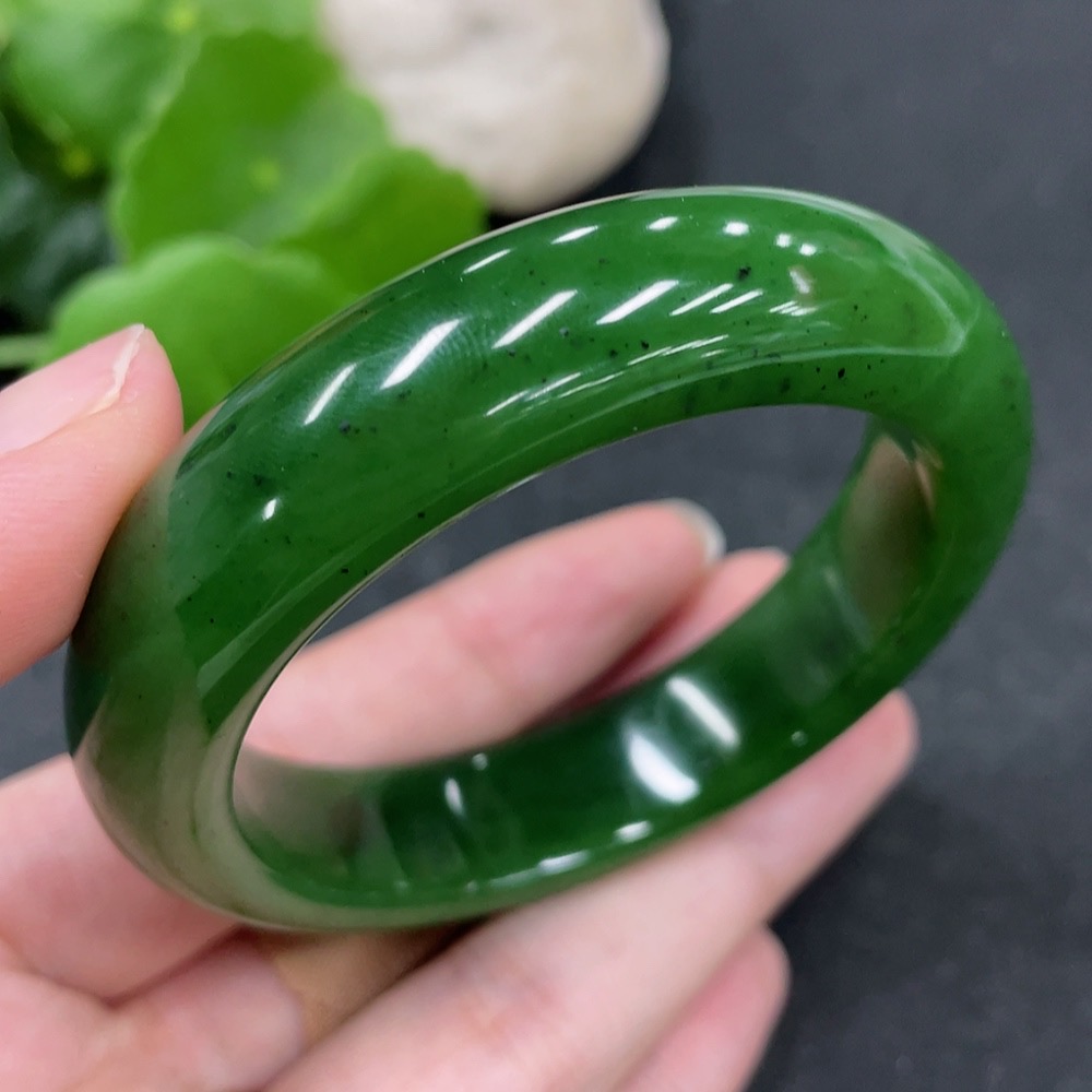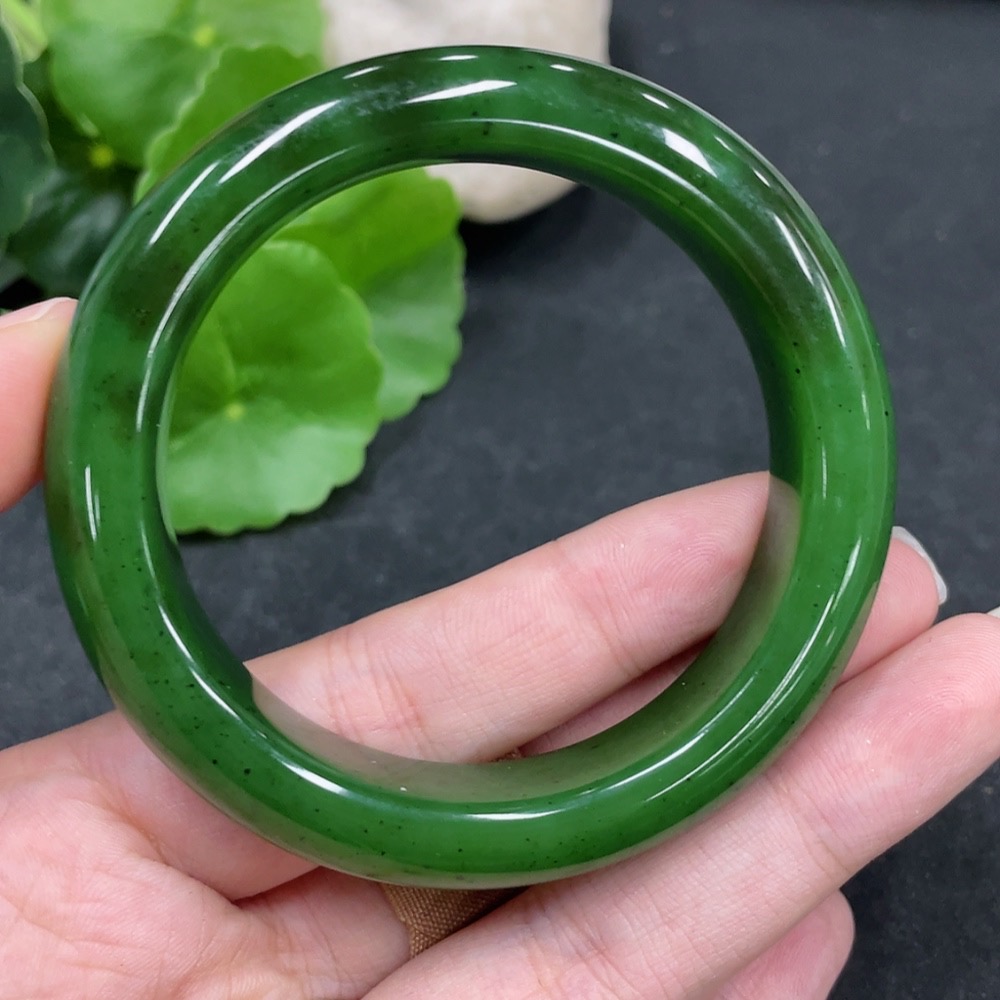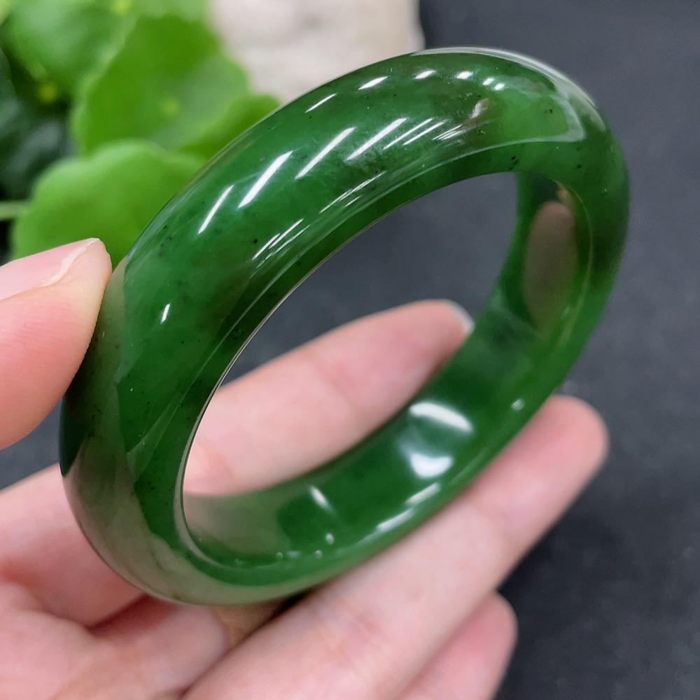 Hetian Jade Green Jade Round Bracelet Size 52.5 Total Weight Approx. 59.7g