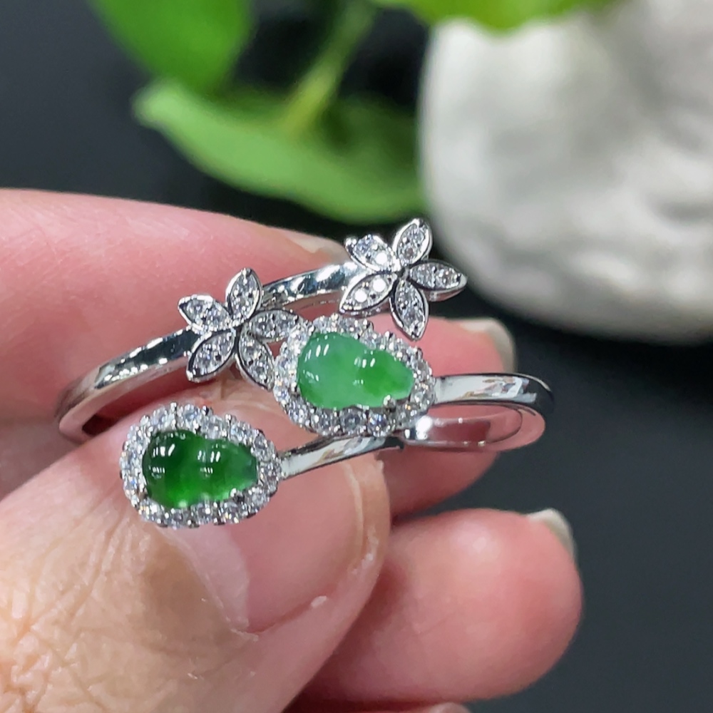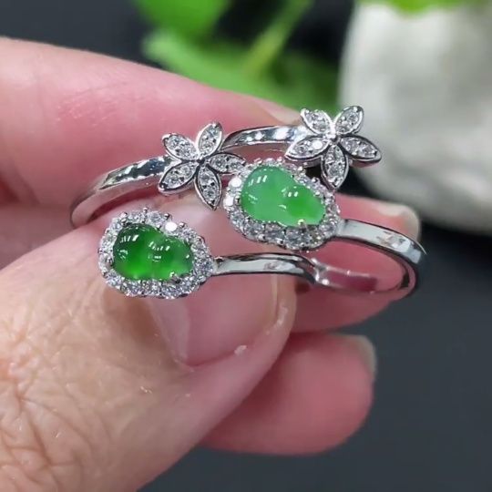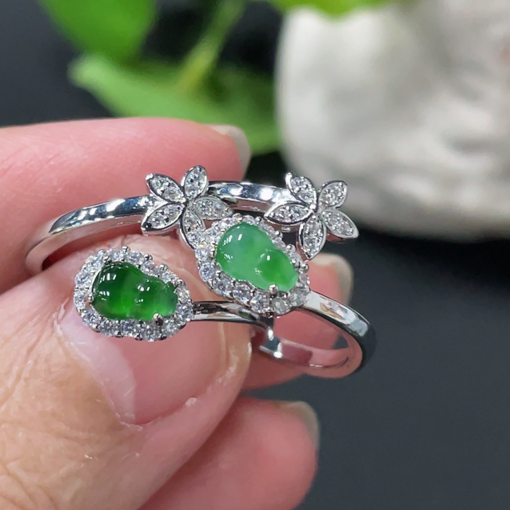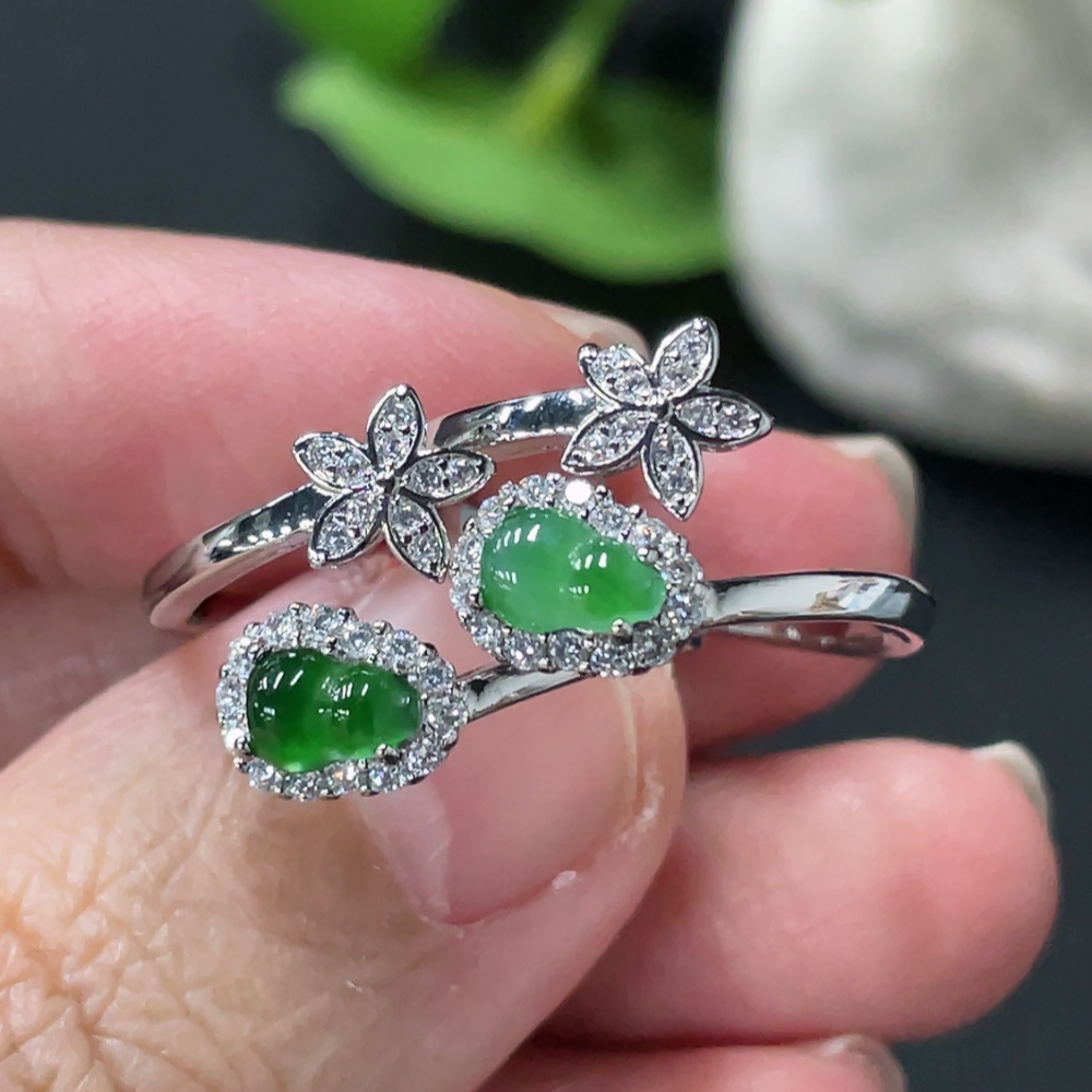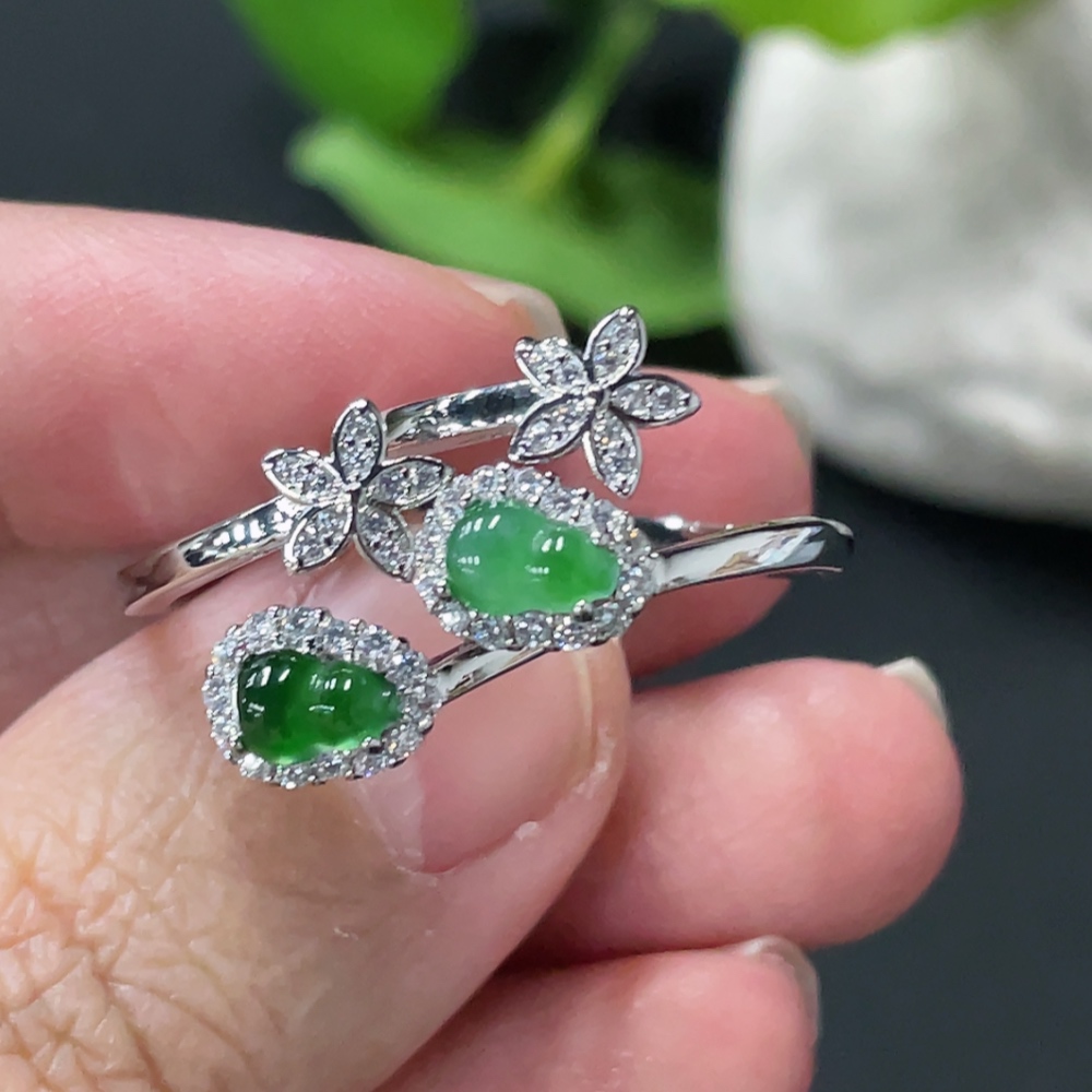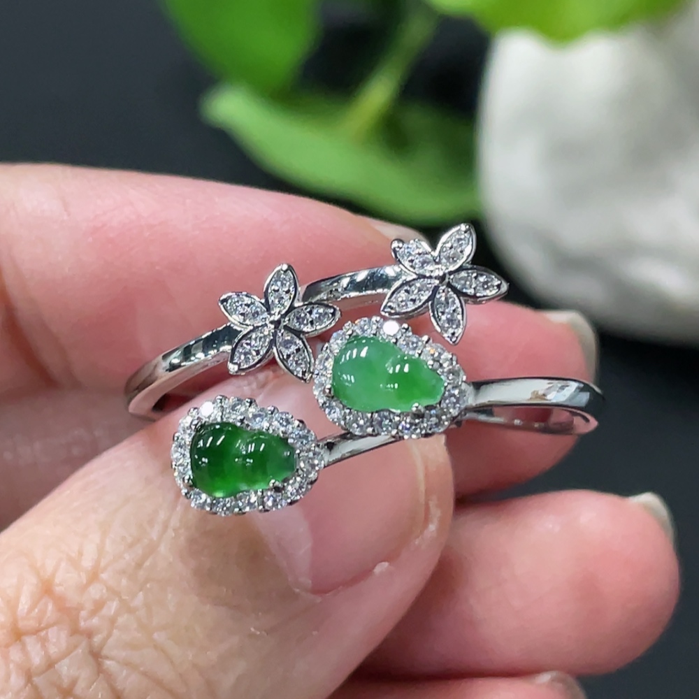 Jadeite Gourd Inlay Ring Non-Gold Inlay Size 15/14 Total Weight Approx. 3.86g