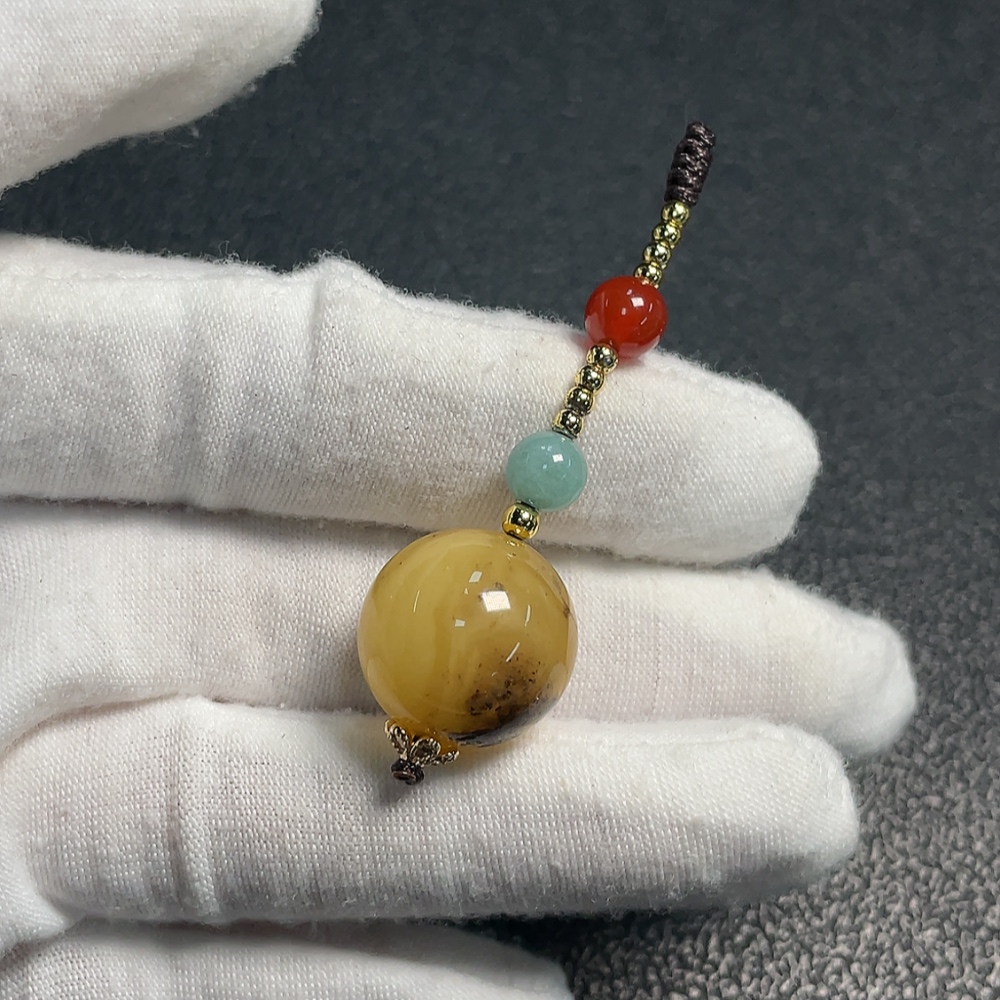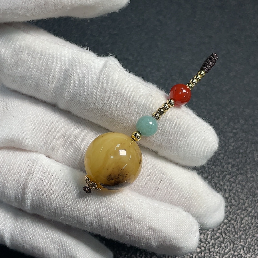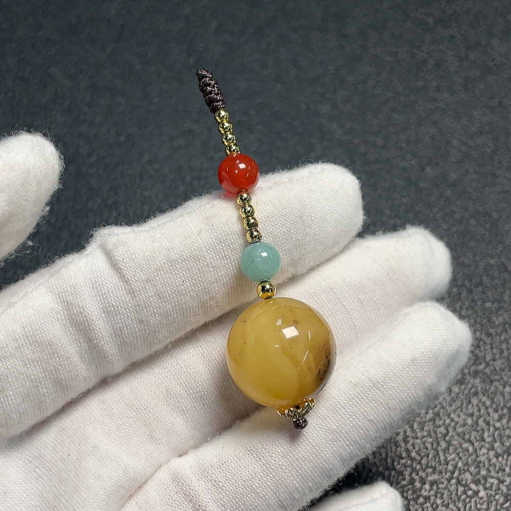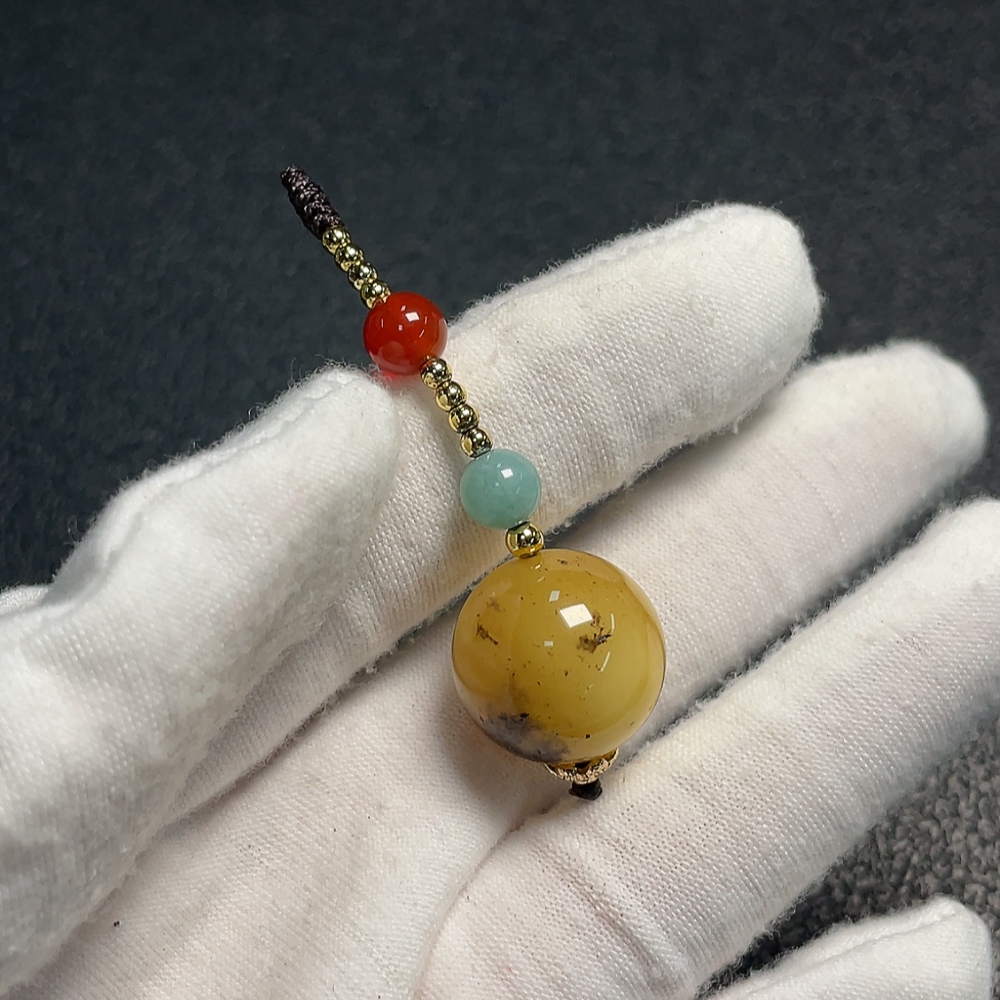 Amber Beeswax Pendant Non-Gold Total Weight Approx. 3.66g Including Cord Size About 16.4mm