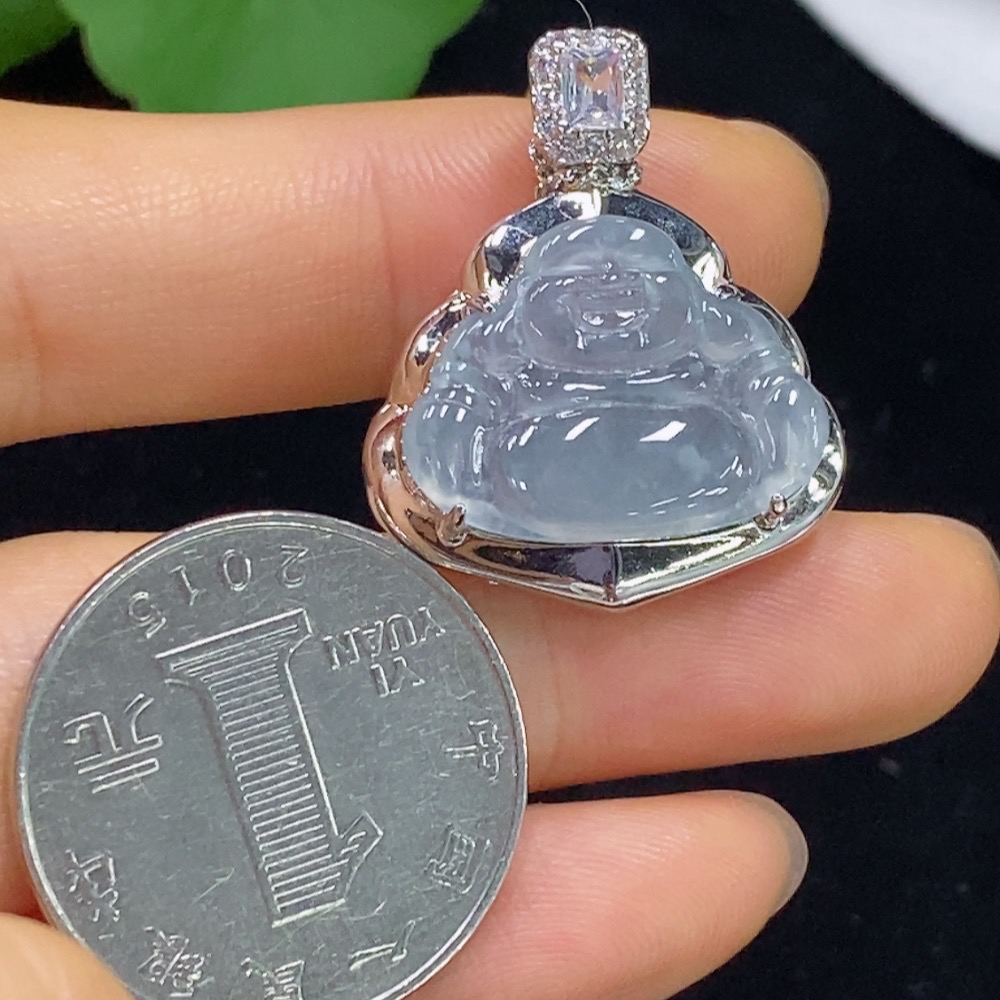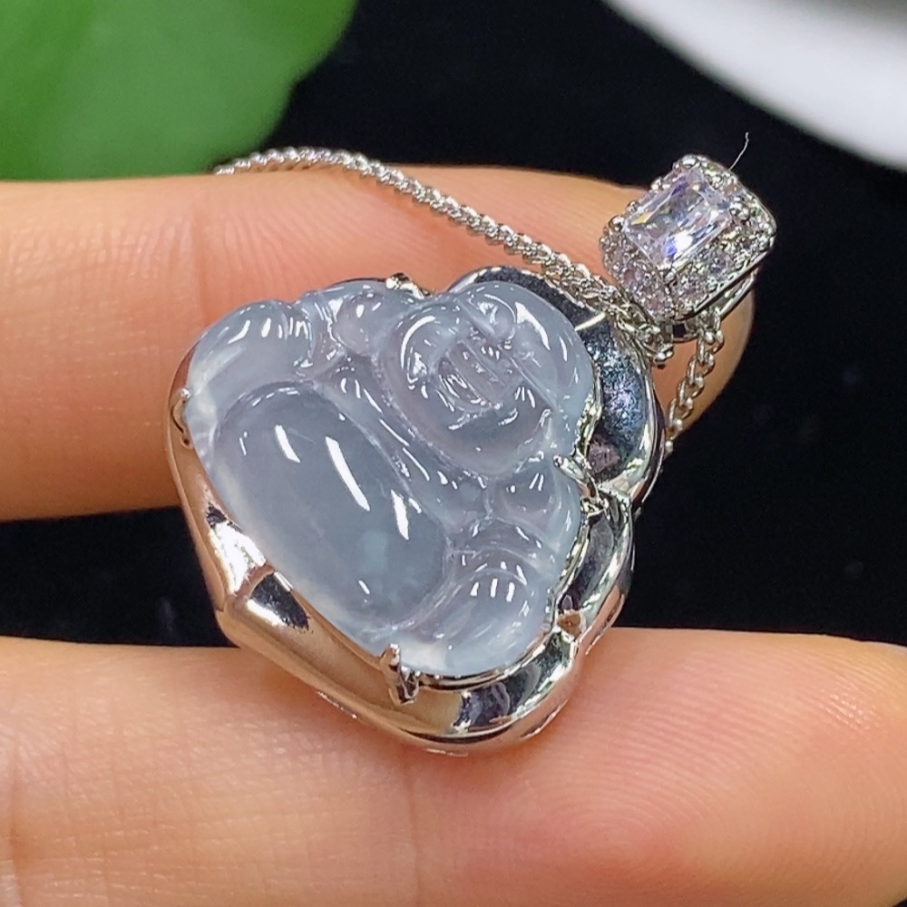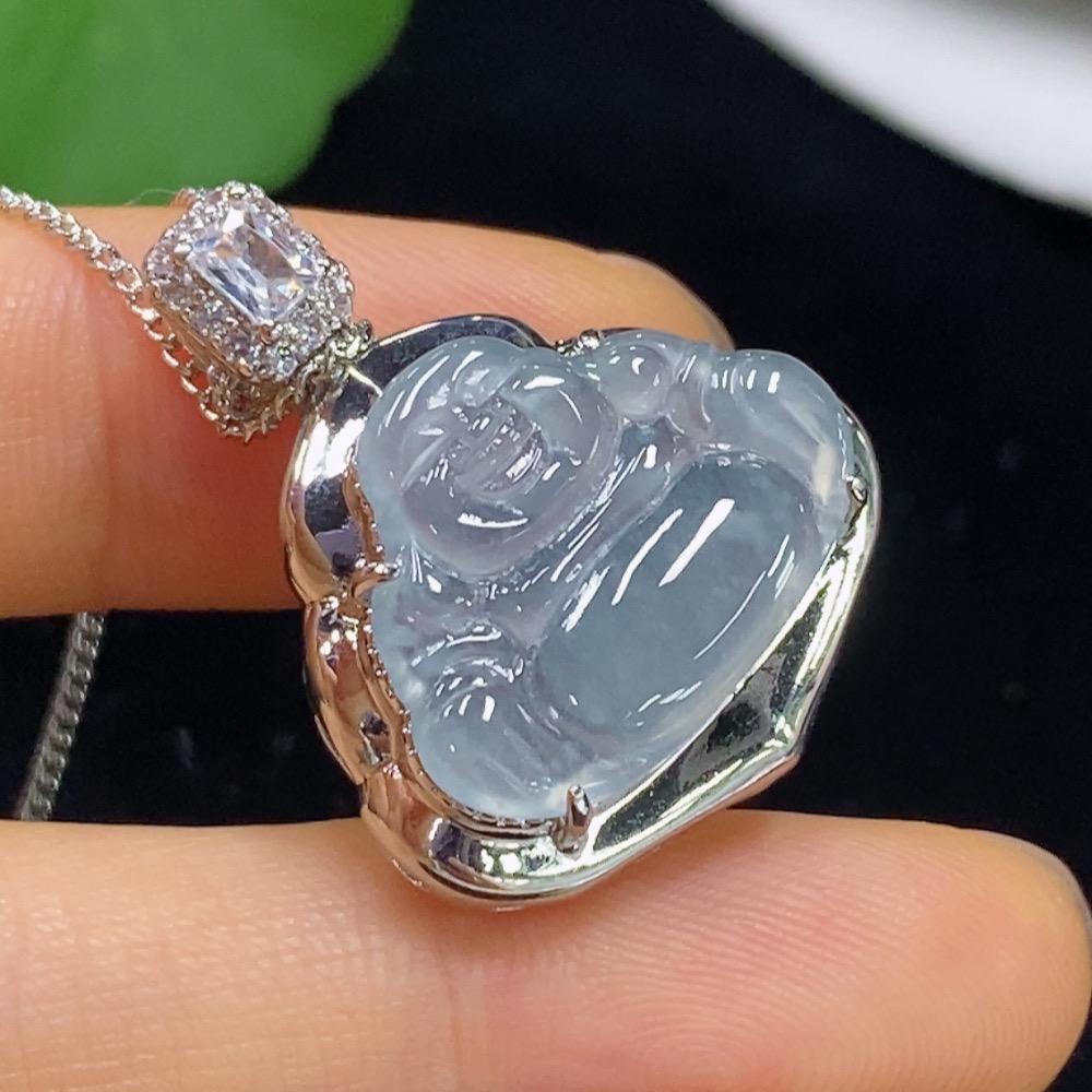Jadeite Buddha Inlaid Pendant Non-Gold Total Weight Approx. 6.93g (Including Chain)