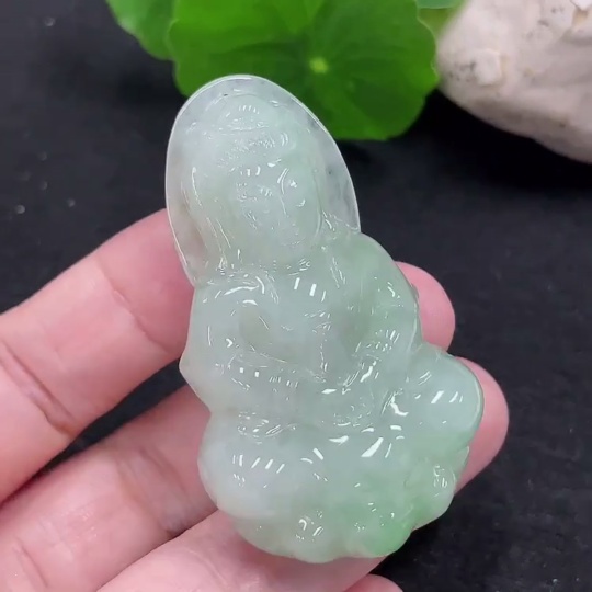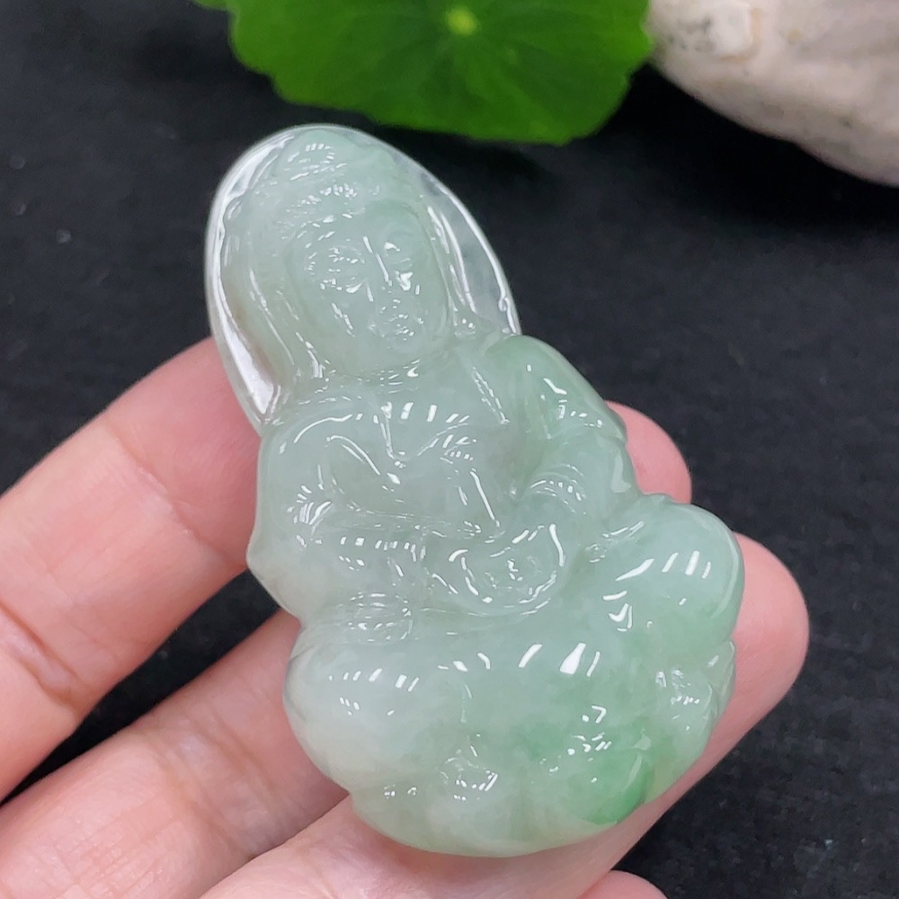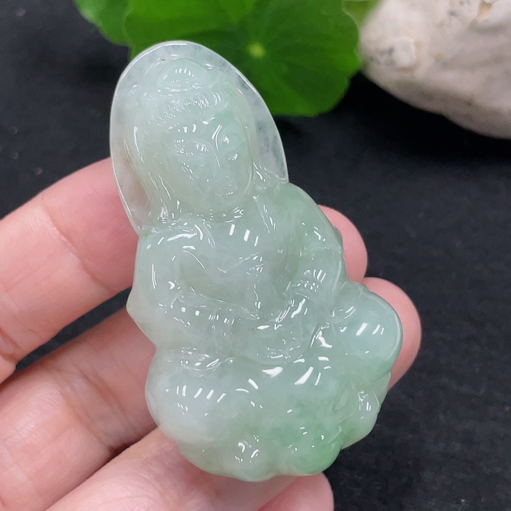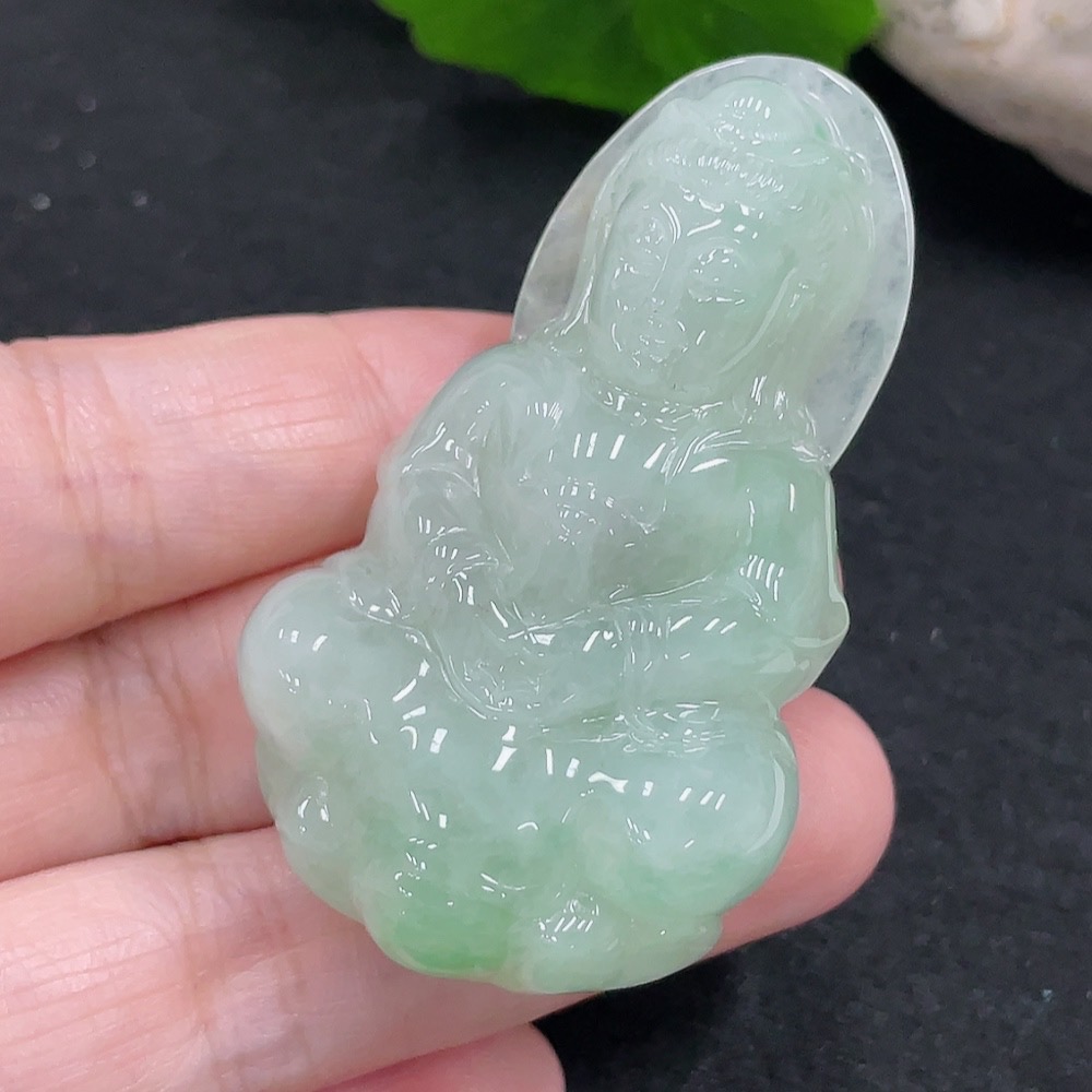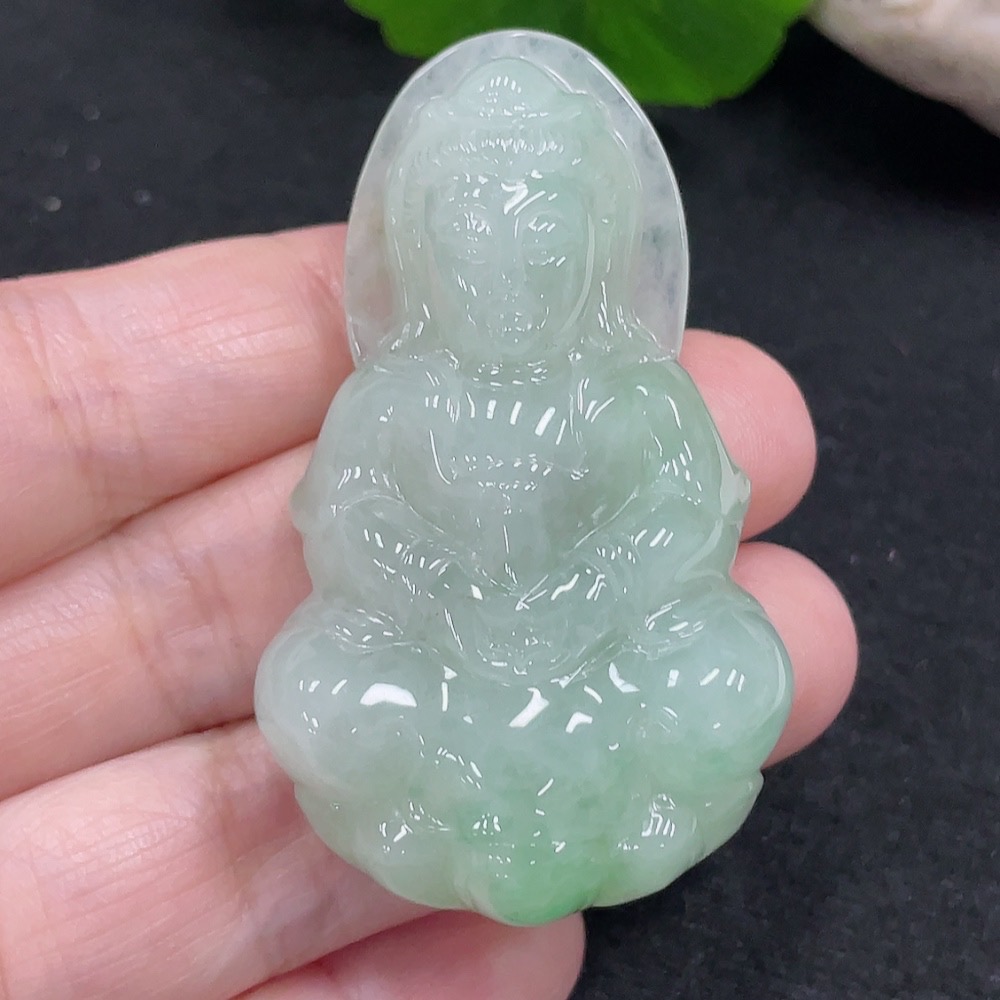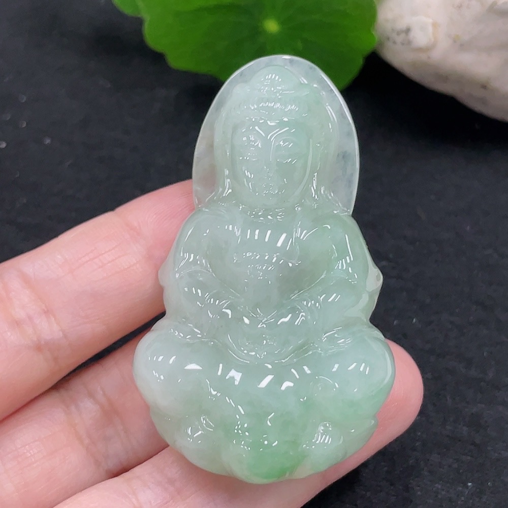 Jadeite Guanyin Pendant, Total Weight Approximately 33.8g